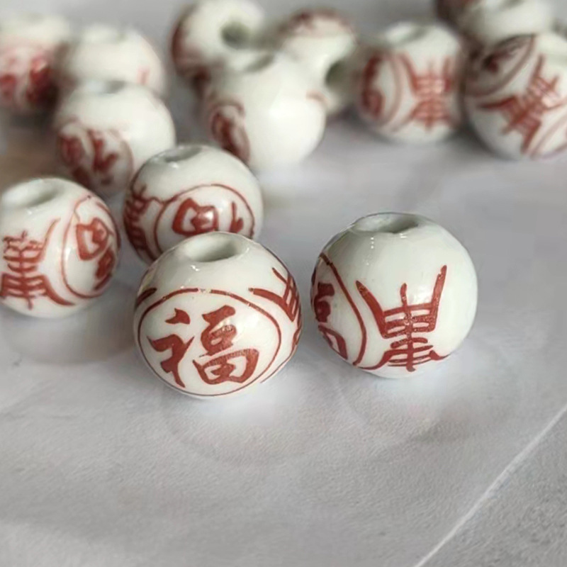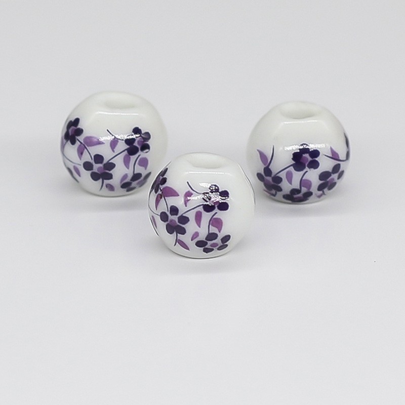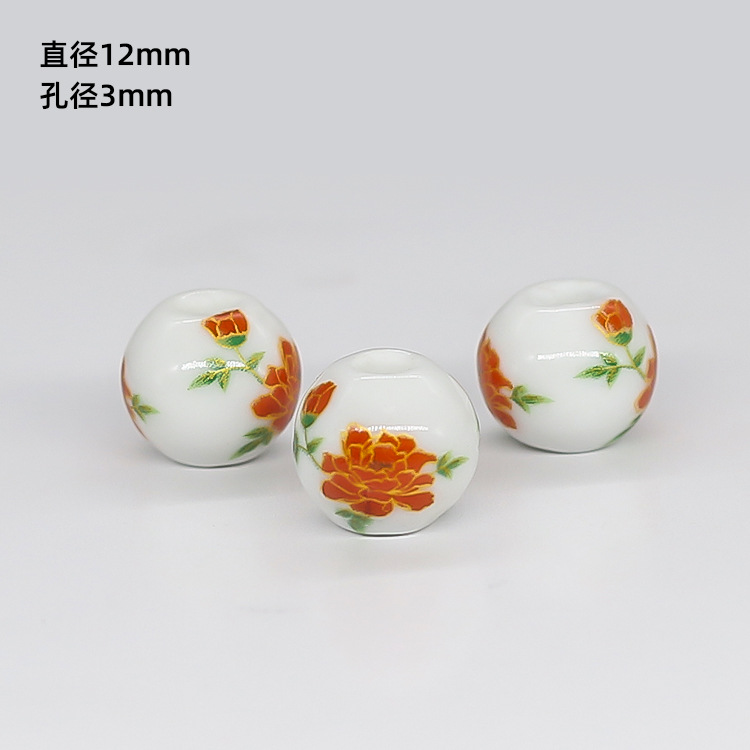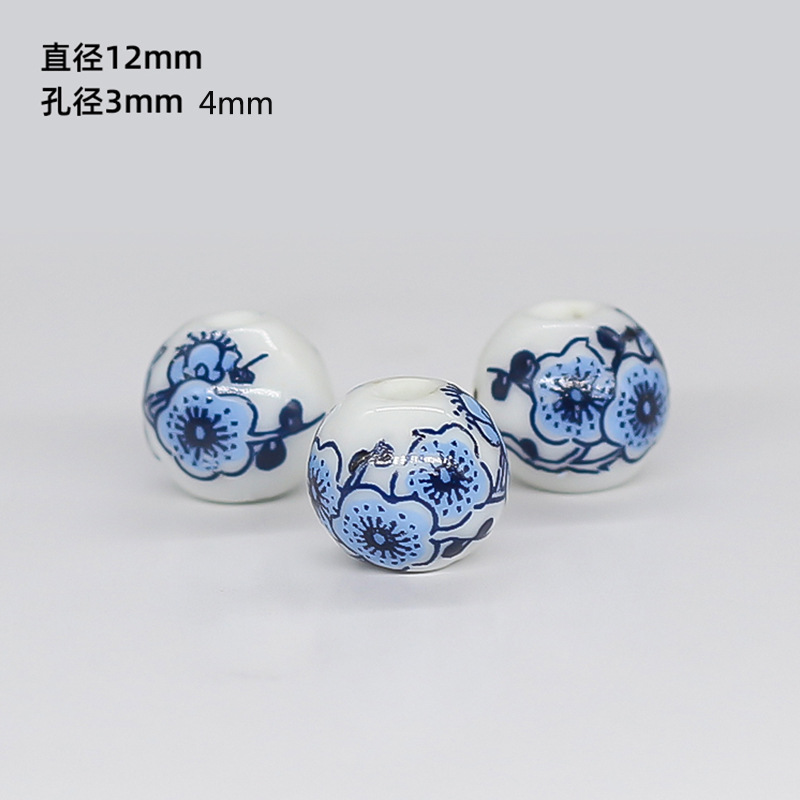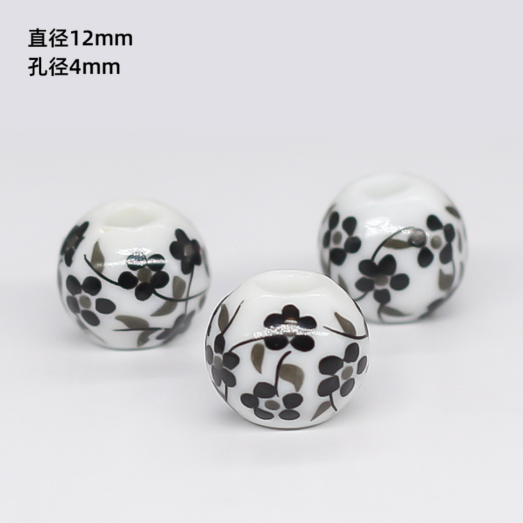 景德镇青花瓷器散珠子 中国结 大孔串珠diy 民族风配件 陶瓷珠