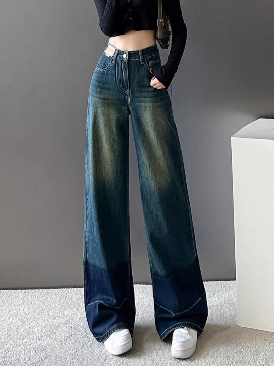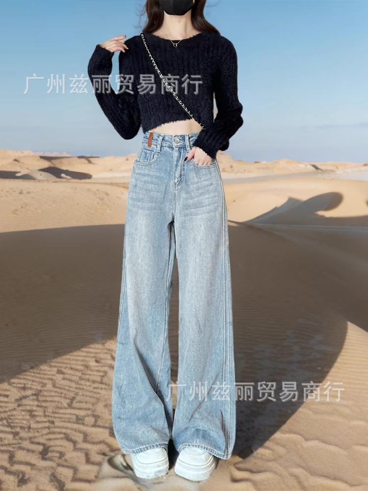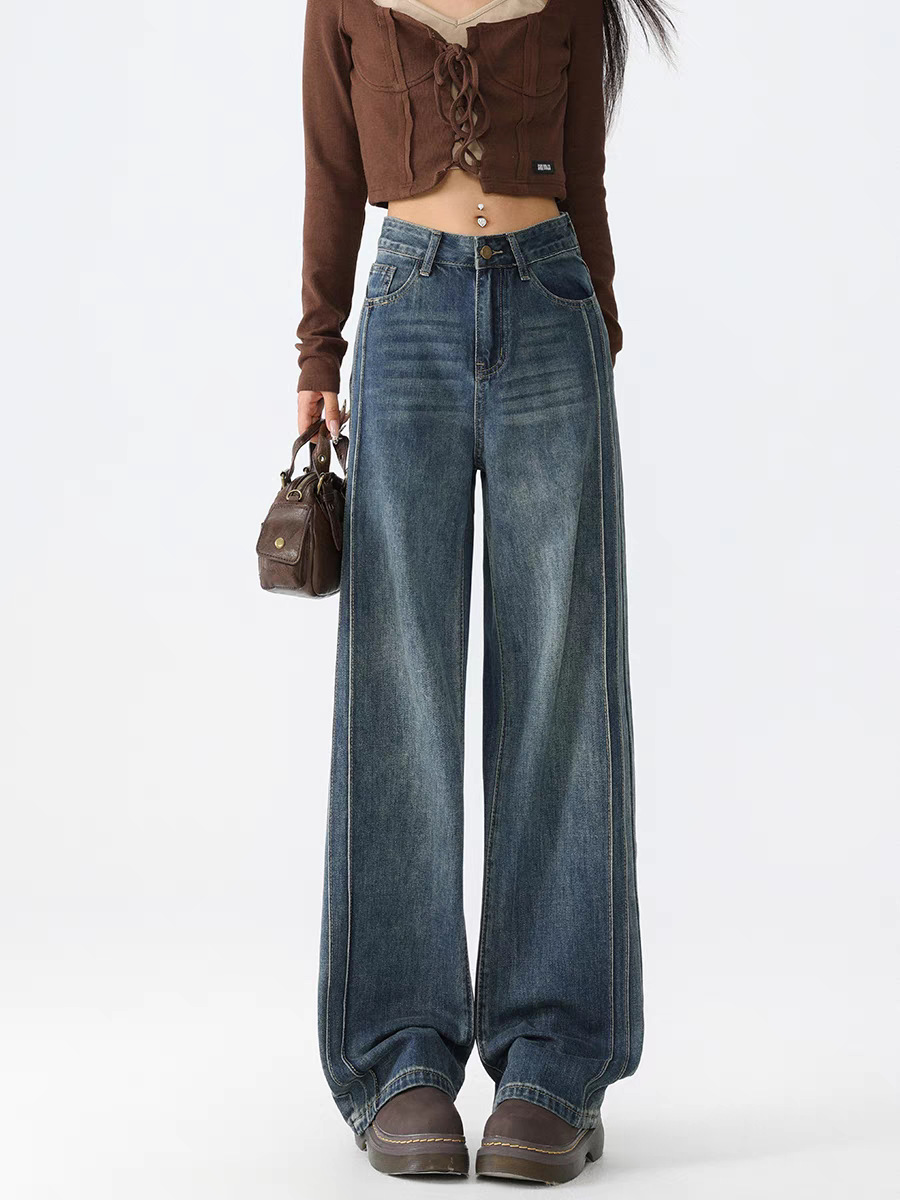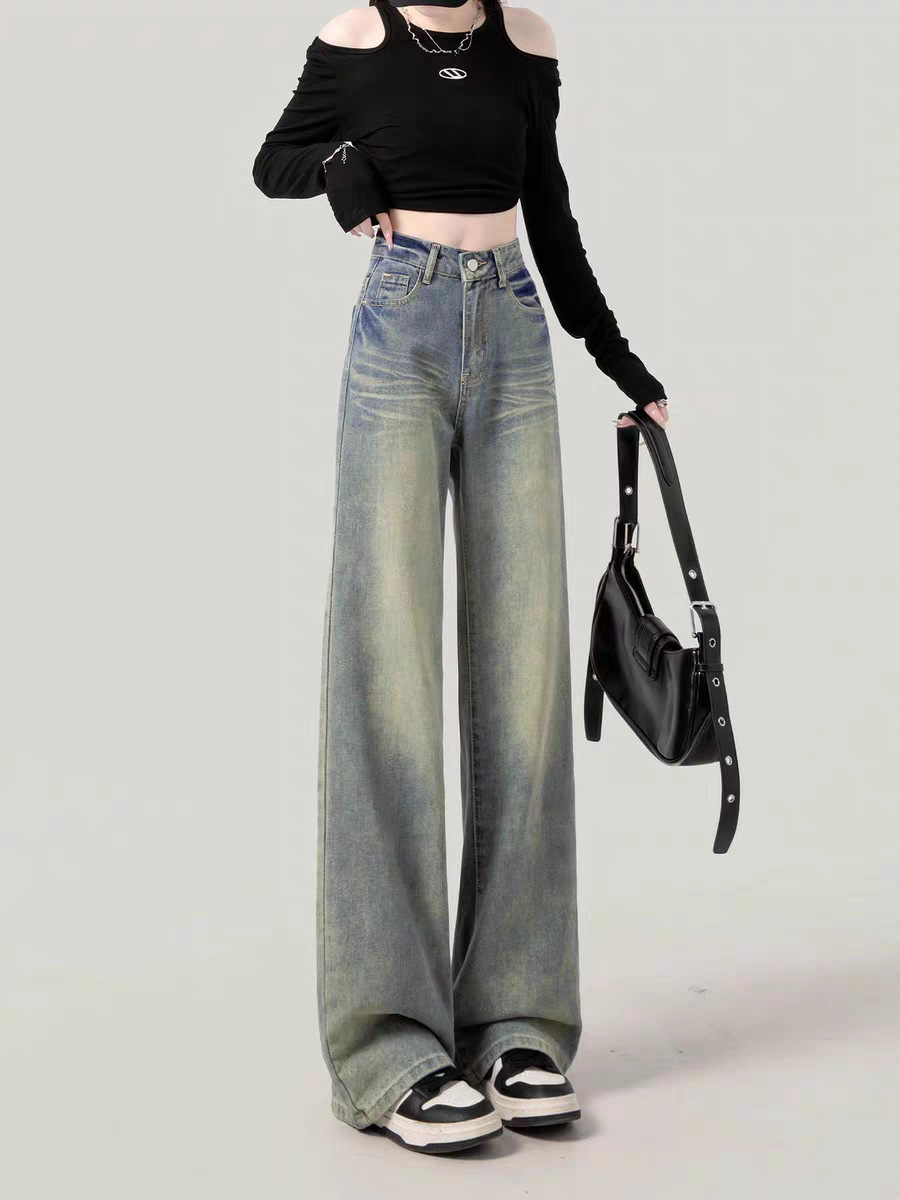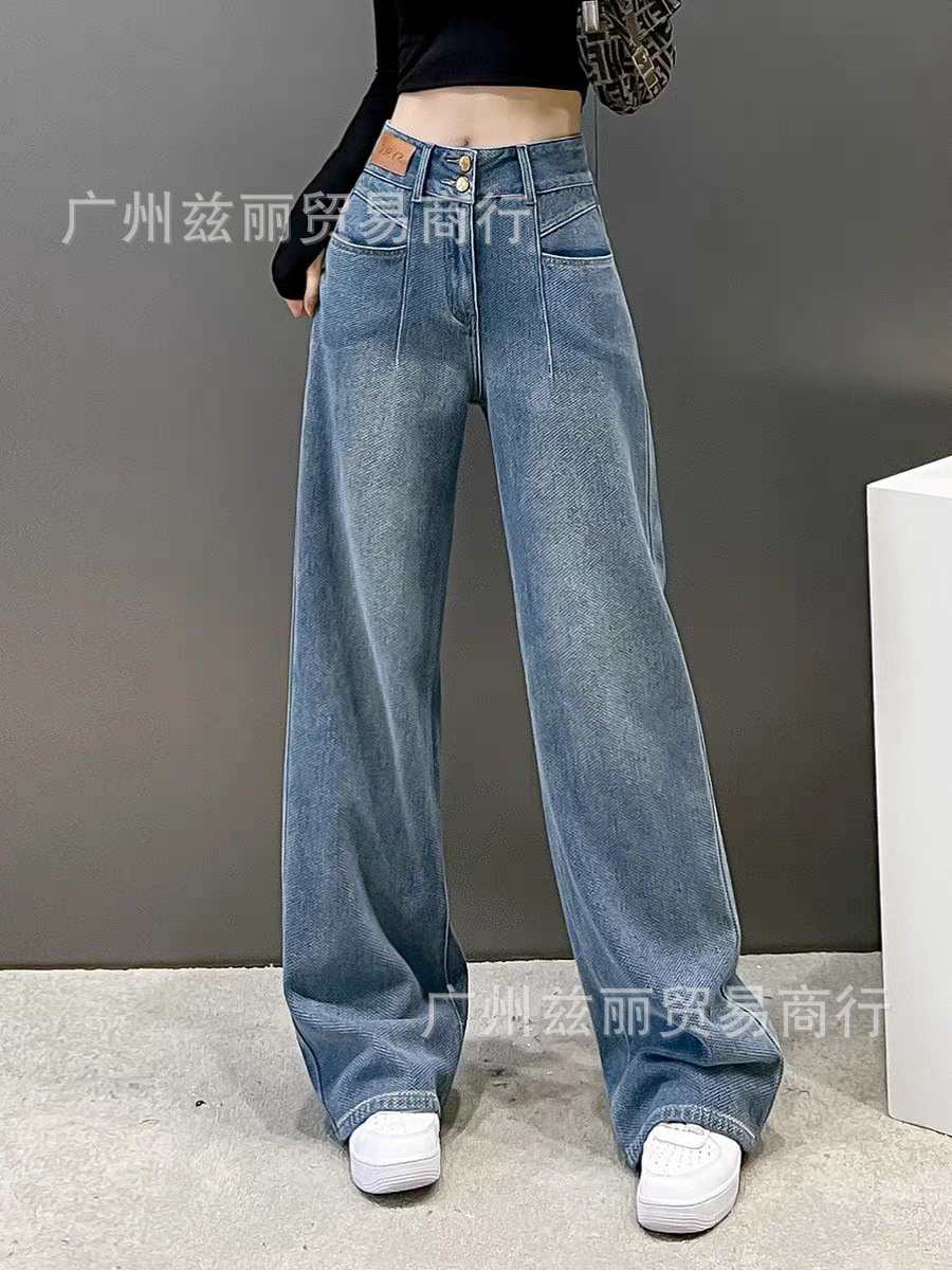 阔腿高腰显瘦直筒牛仔长裤女夏季新款2025年休闲垂感拖地牛仔长裤