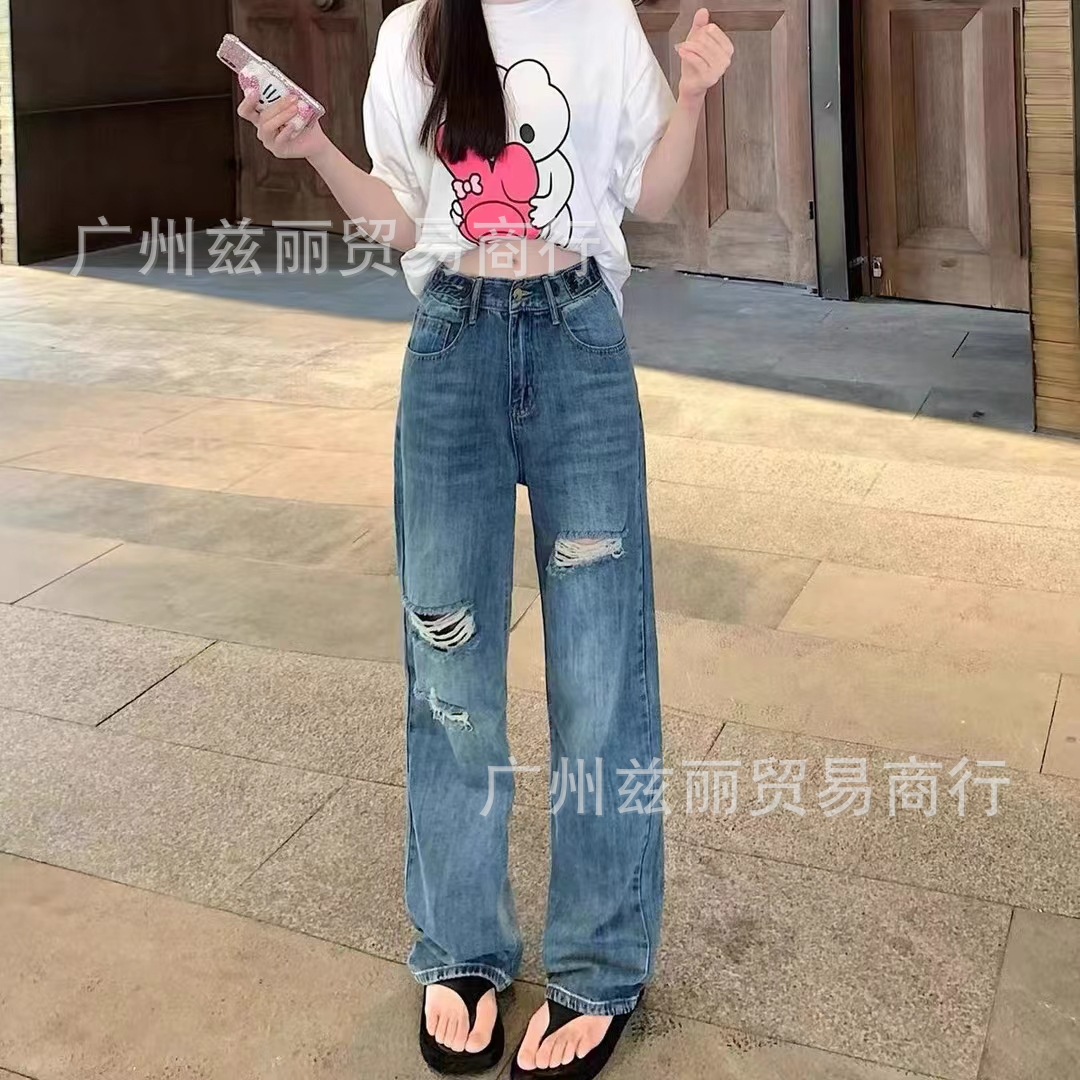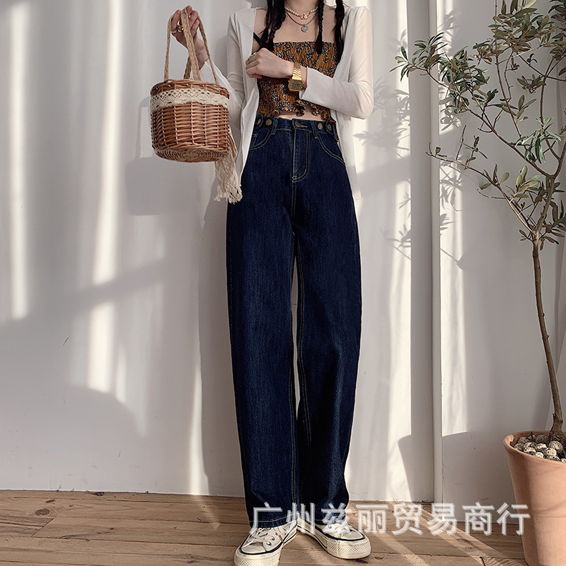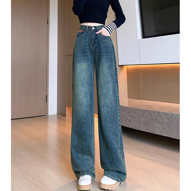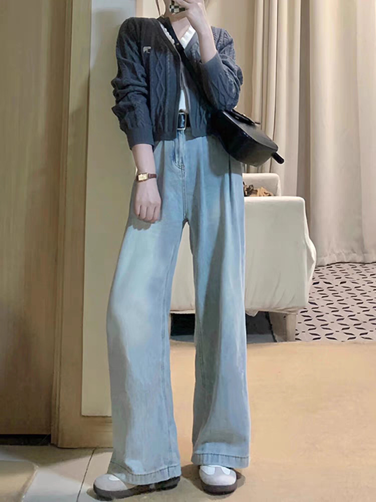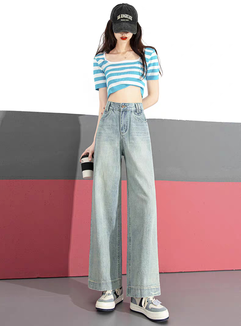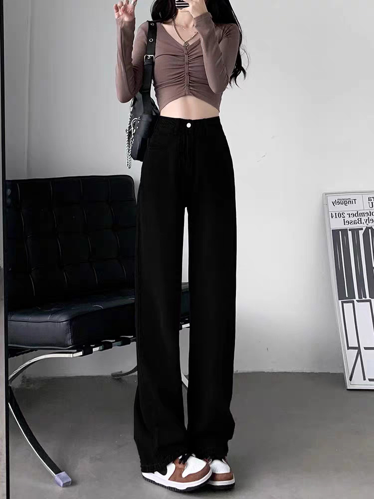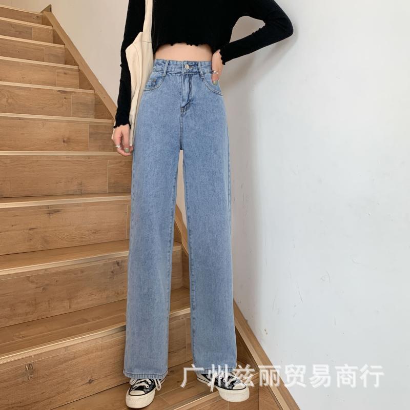 阔腿高腰显瘦直筒牛仔长裤女夏季新款2025年休闲垂感拖地牛仔长裤