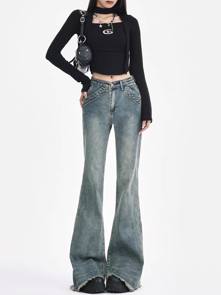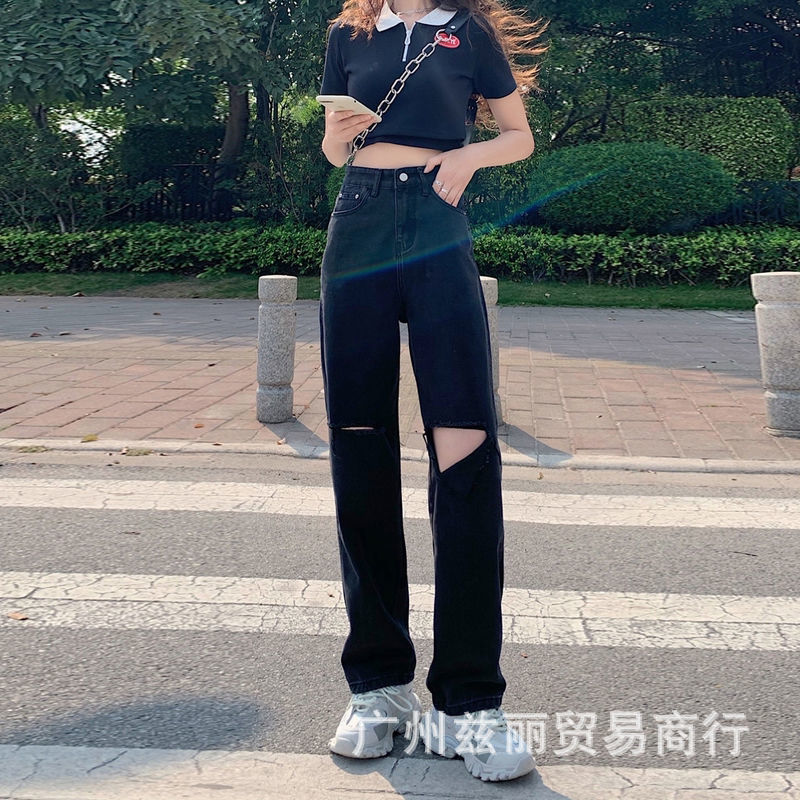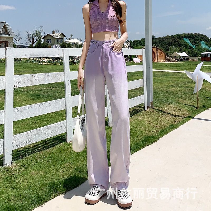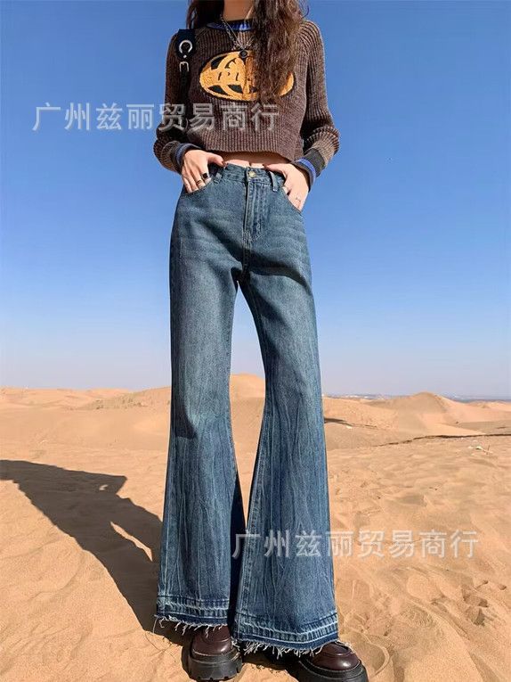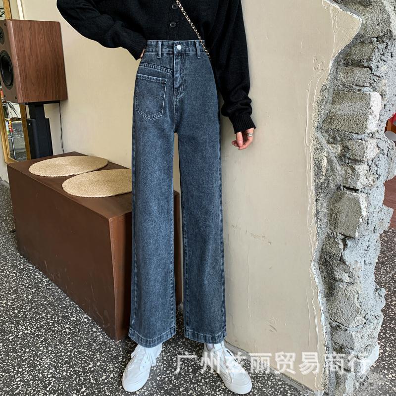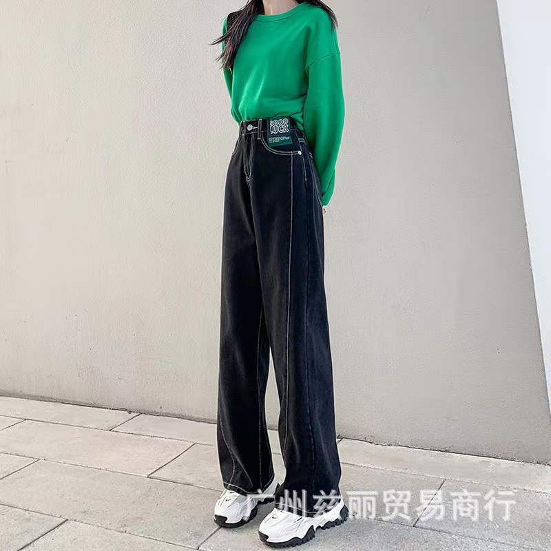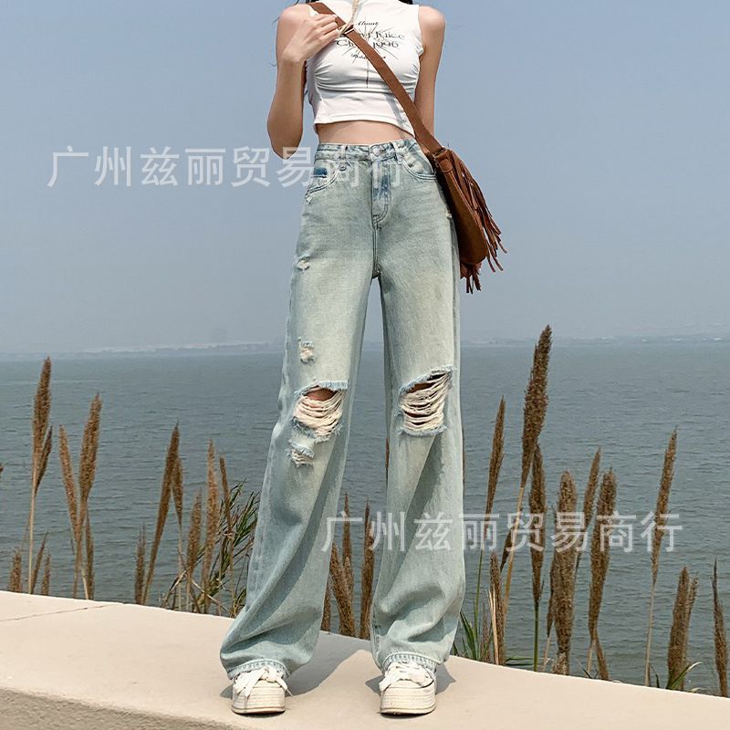 阔腿高腰显瘦直筒牛仔长裤女夏季新款2025年休闲垂感拖地牛仔长裤