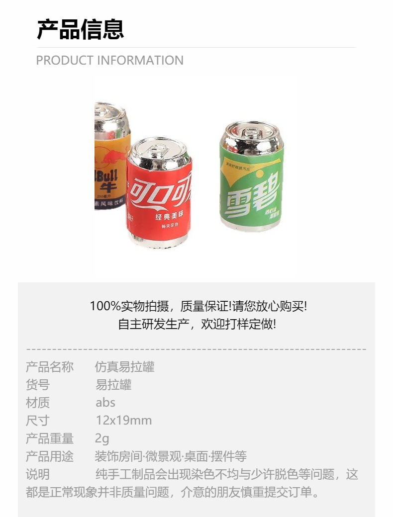 树脂仿真迷你易拉罐饰品摆件diy手机壳停车牌材料小瓶子便利店
