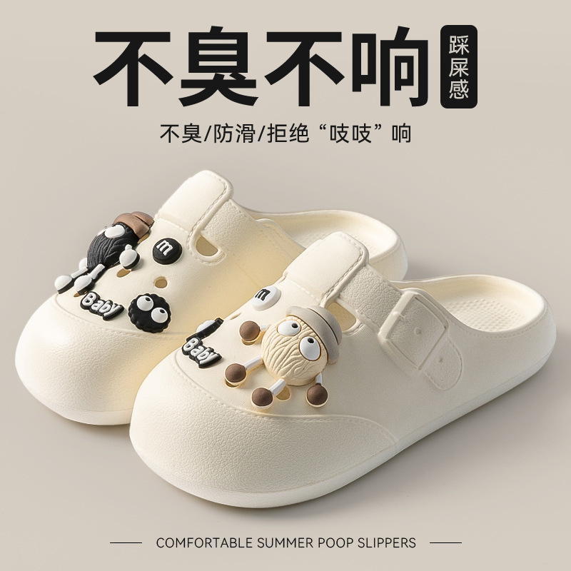 博肯洞洞鞋女款2025新款外穿办公室防滑厚底懒人鞋包头半拖鞋女士