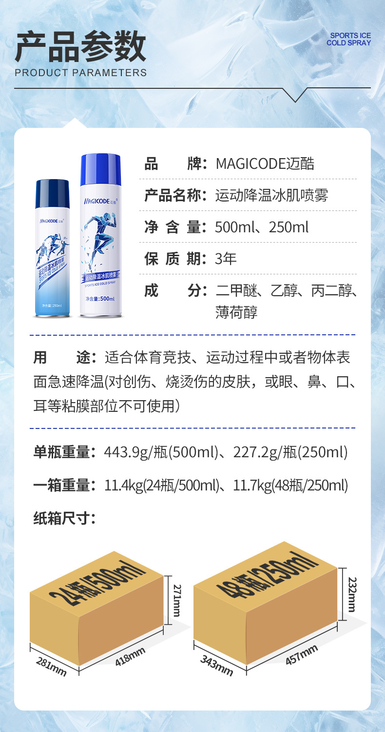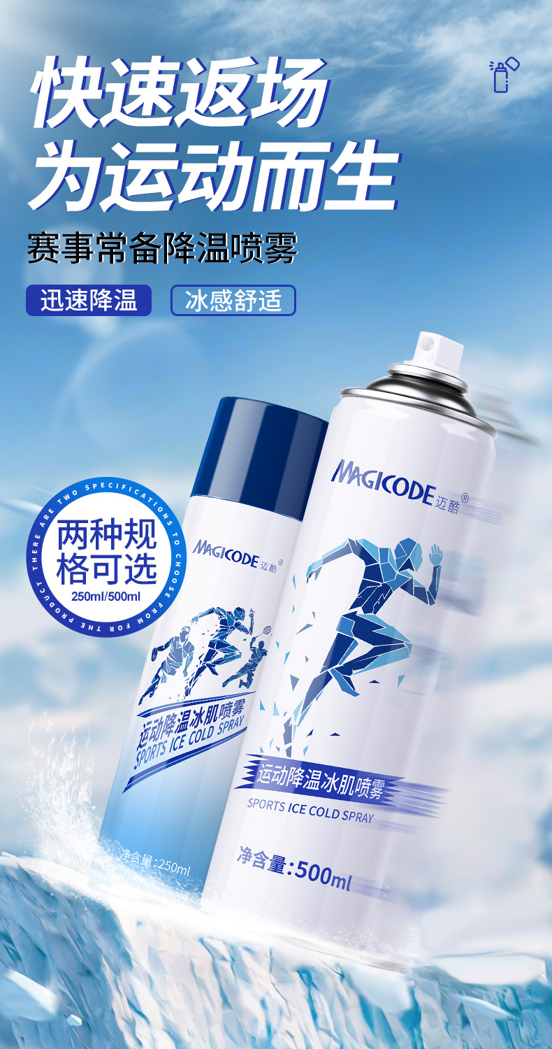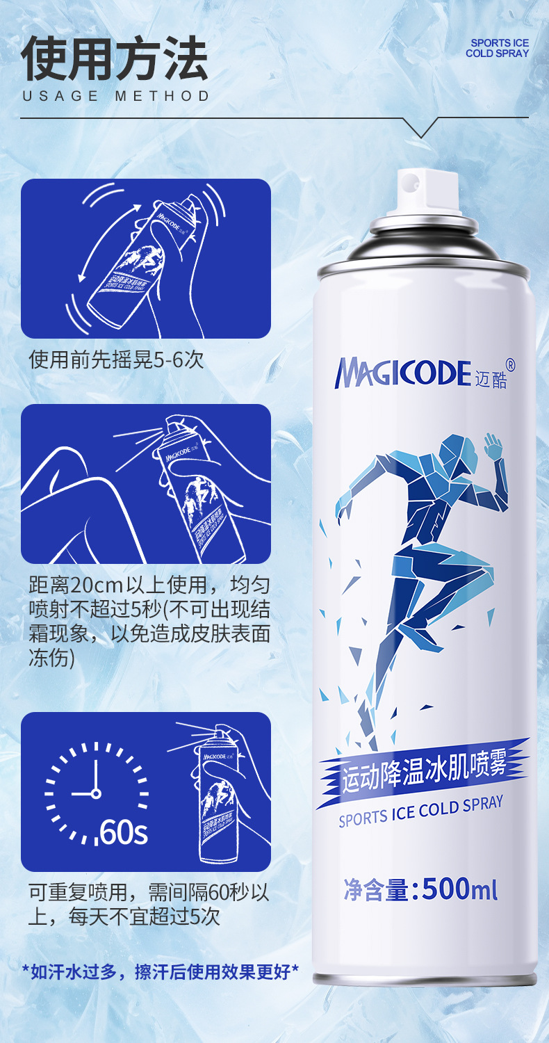运动冰肌降温喷雾快速降温制冷清凉衣物车内降温剂冷冻剂代发批发