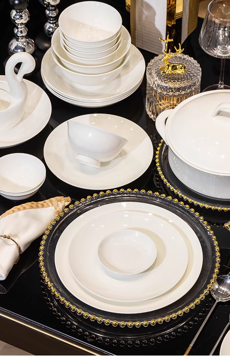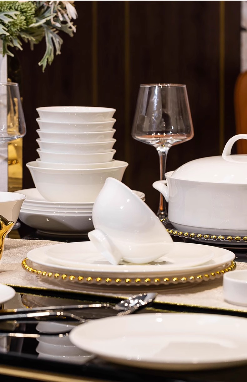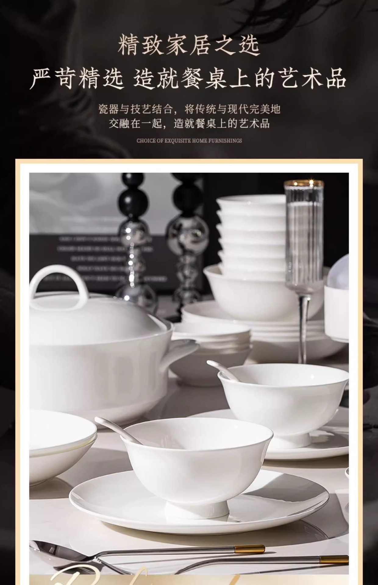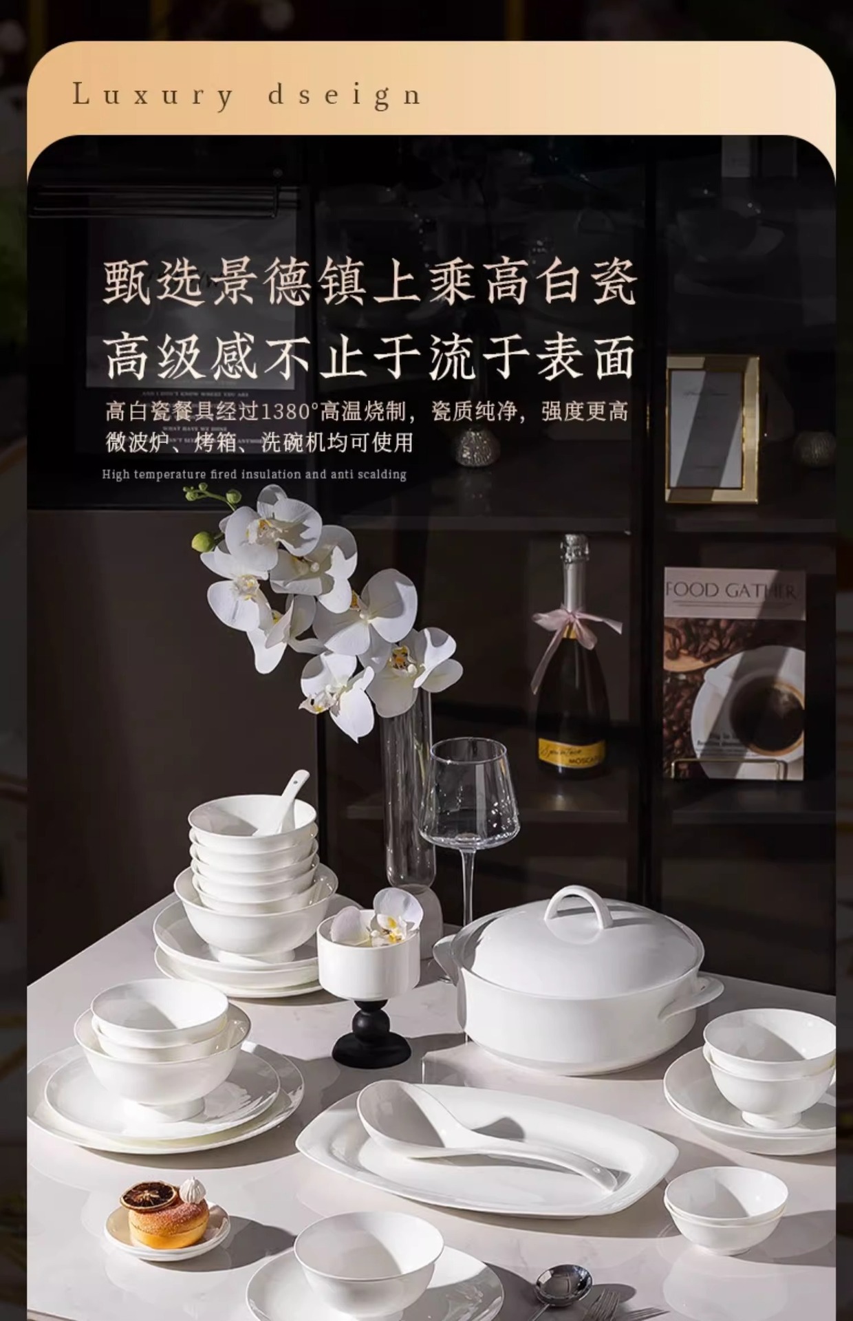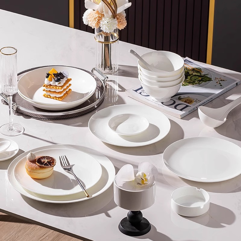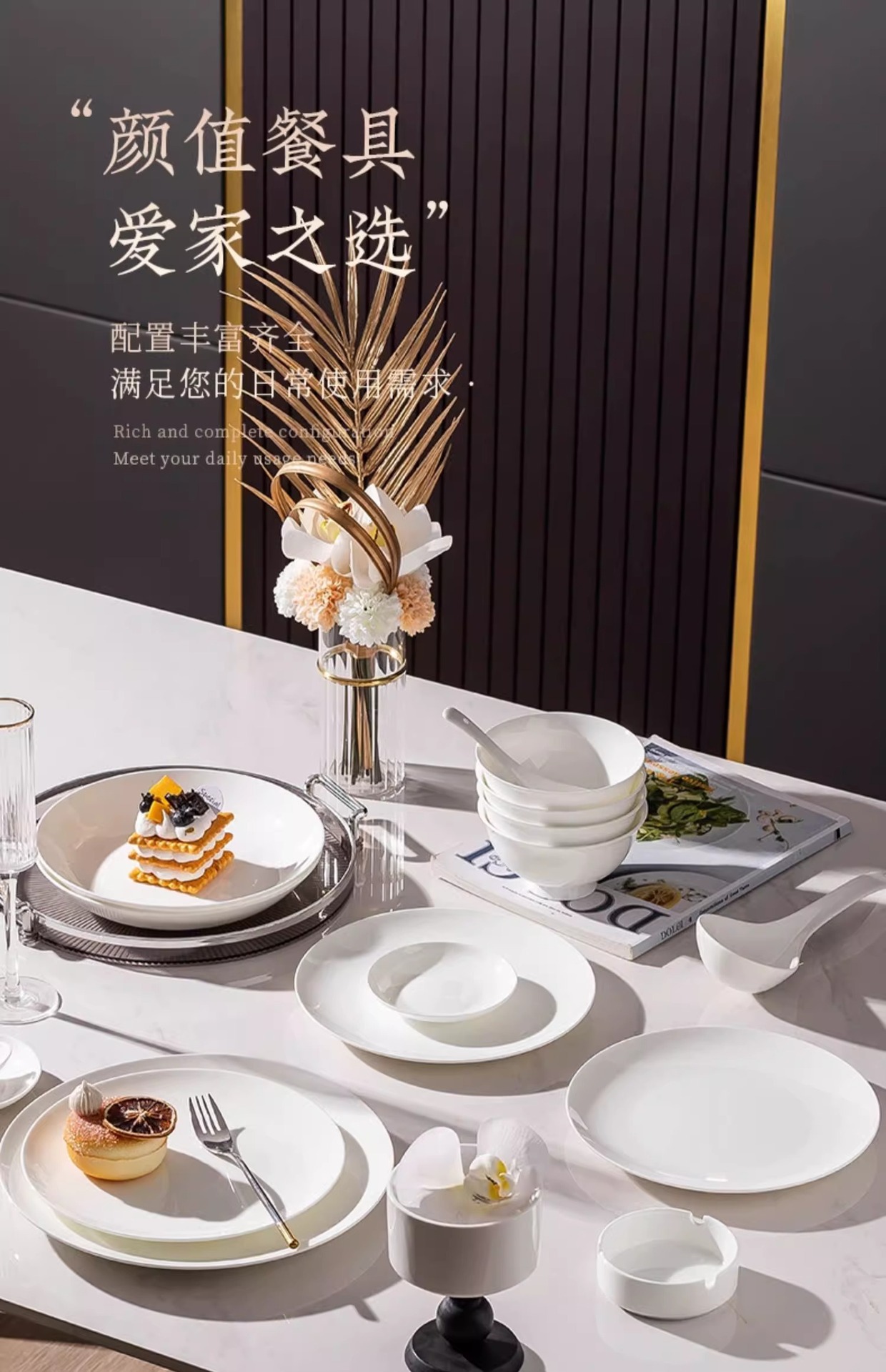 纯白高温简约风饭碗菜盘子家用景德镇餐具酒店摆台批发瓷碗礼品