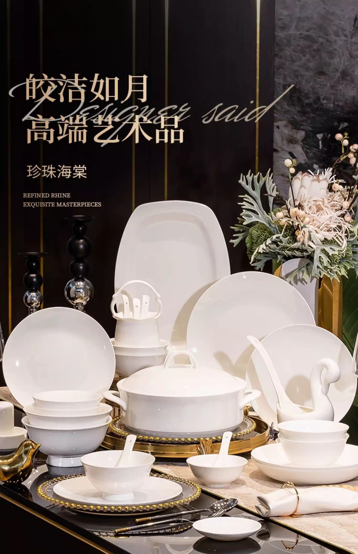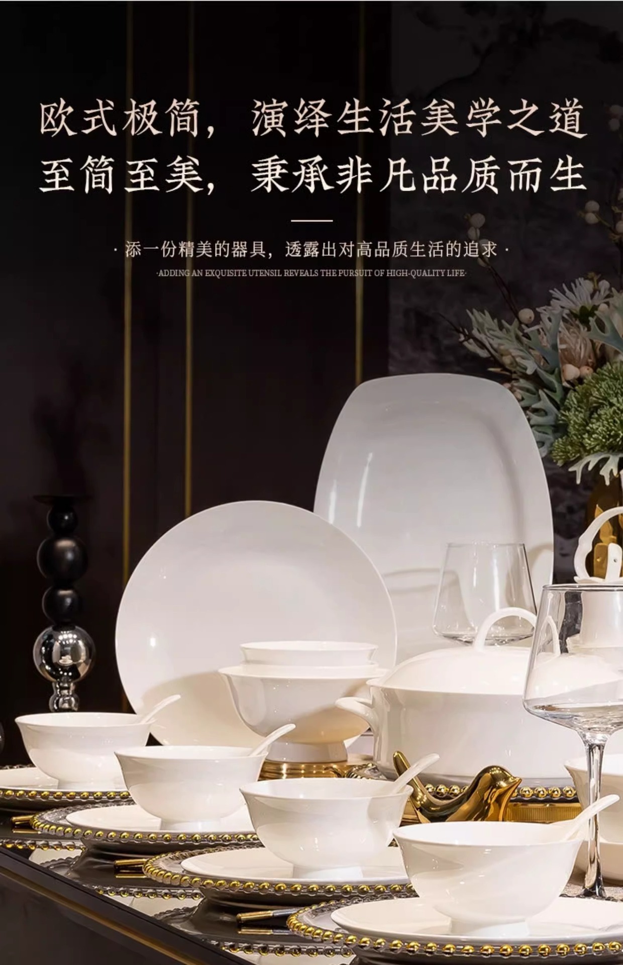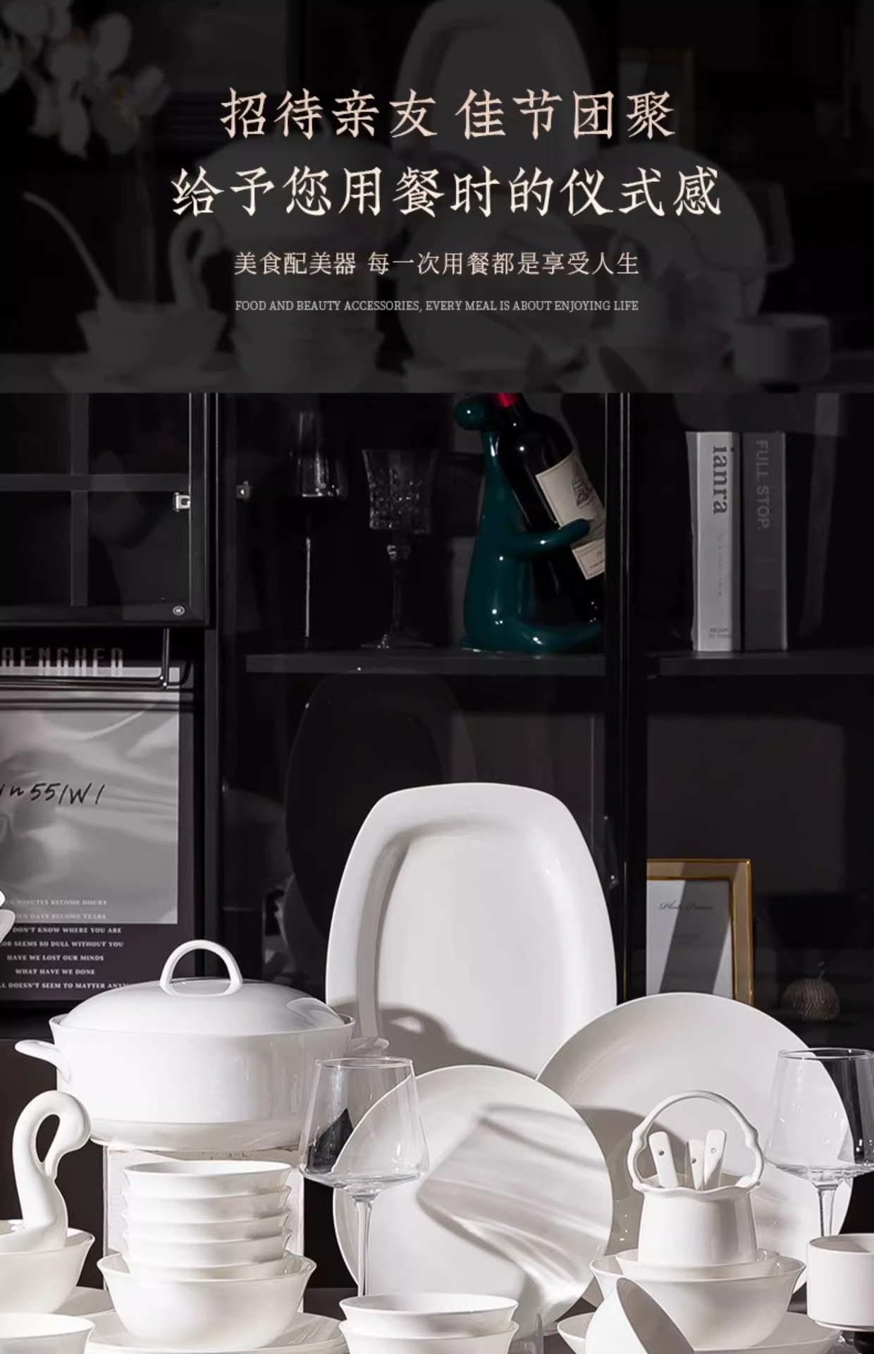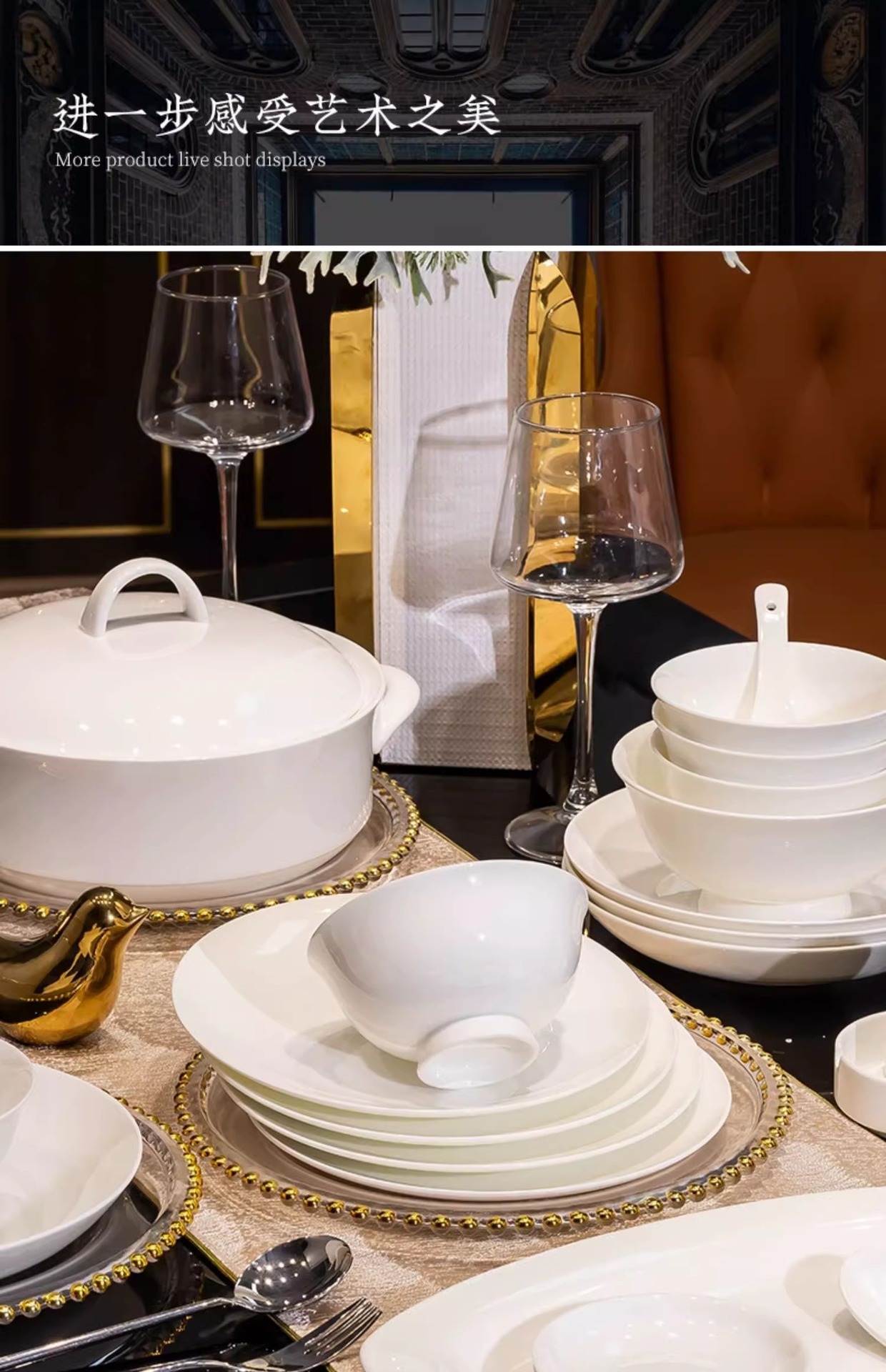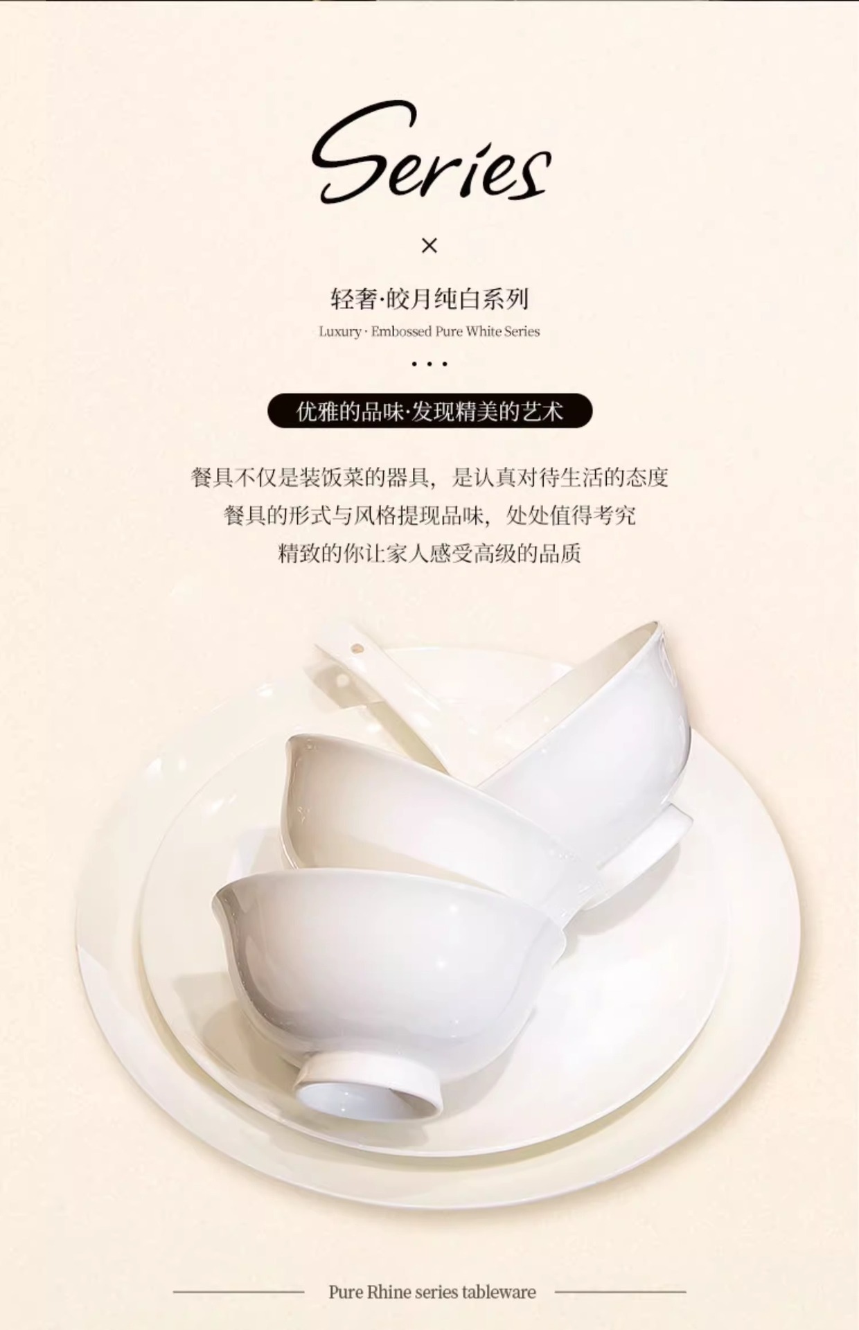 纯白高温简约风饭碗菜盘子家用景德镇餐具酒店摆台批发瓷碗礼品