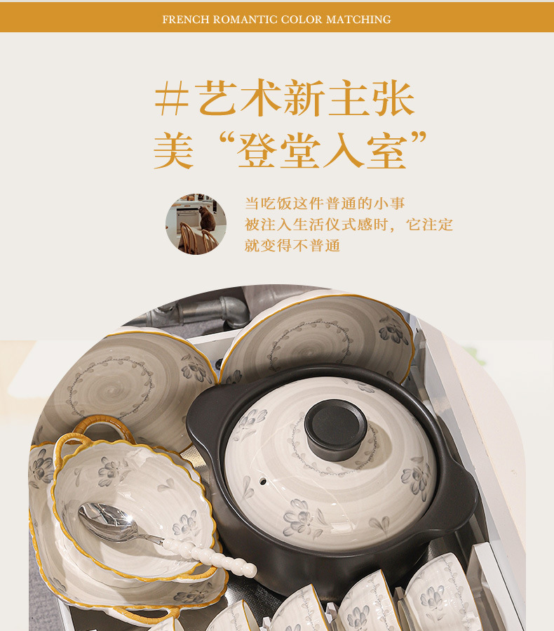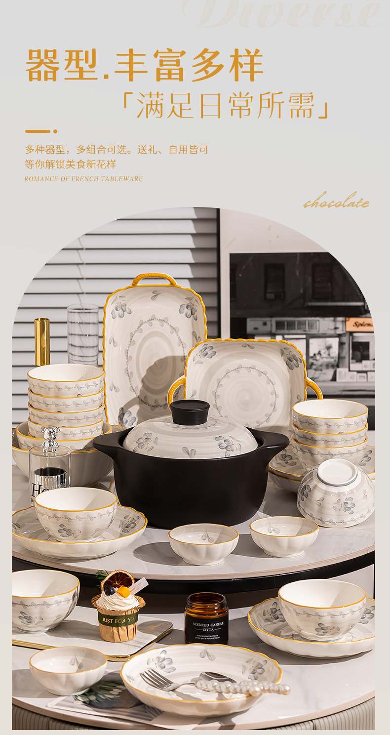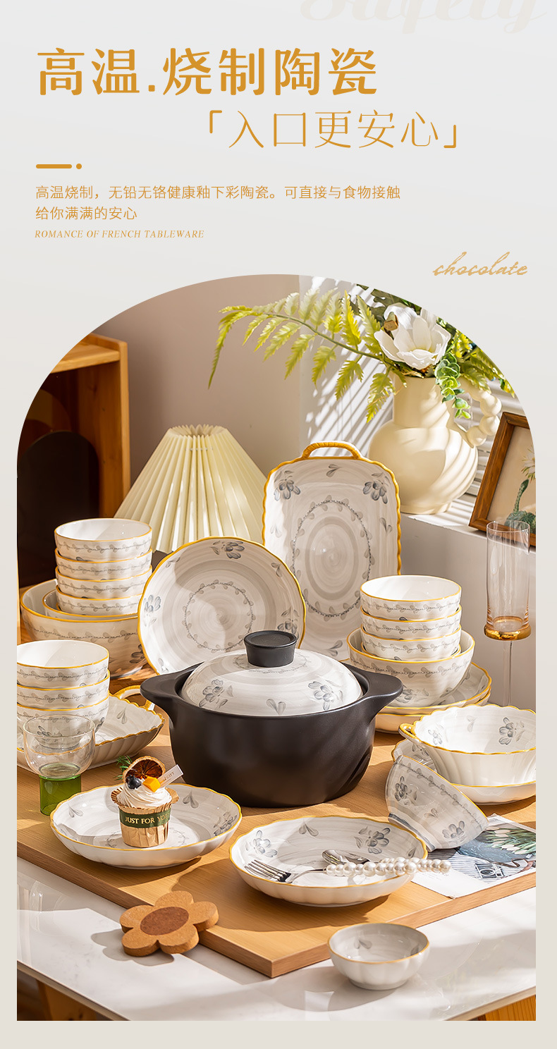 日式风高颜值厨具盘子碗全套碗碟餐具套装家用陶瓷乔迁新居单品