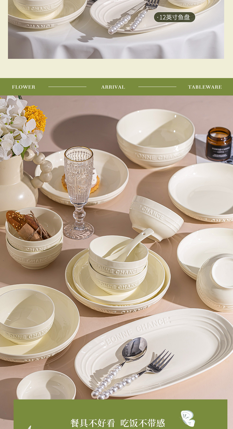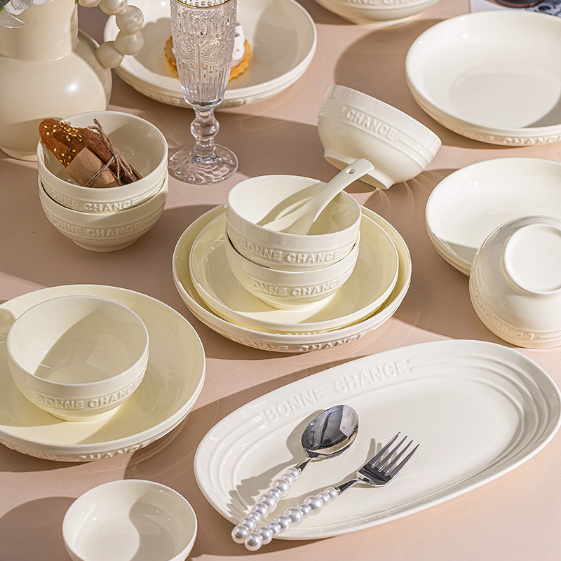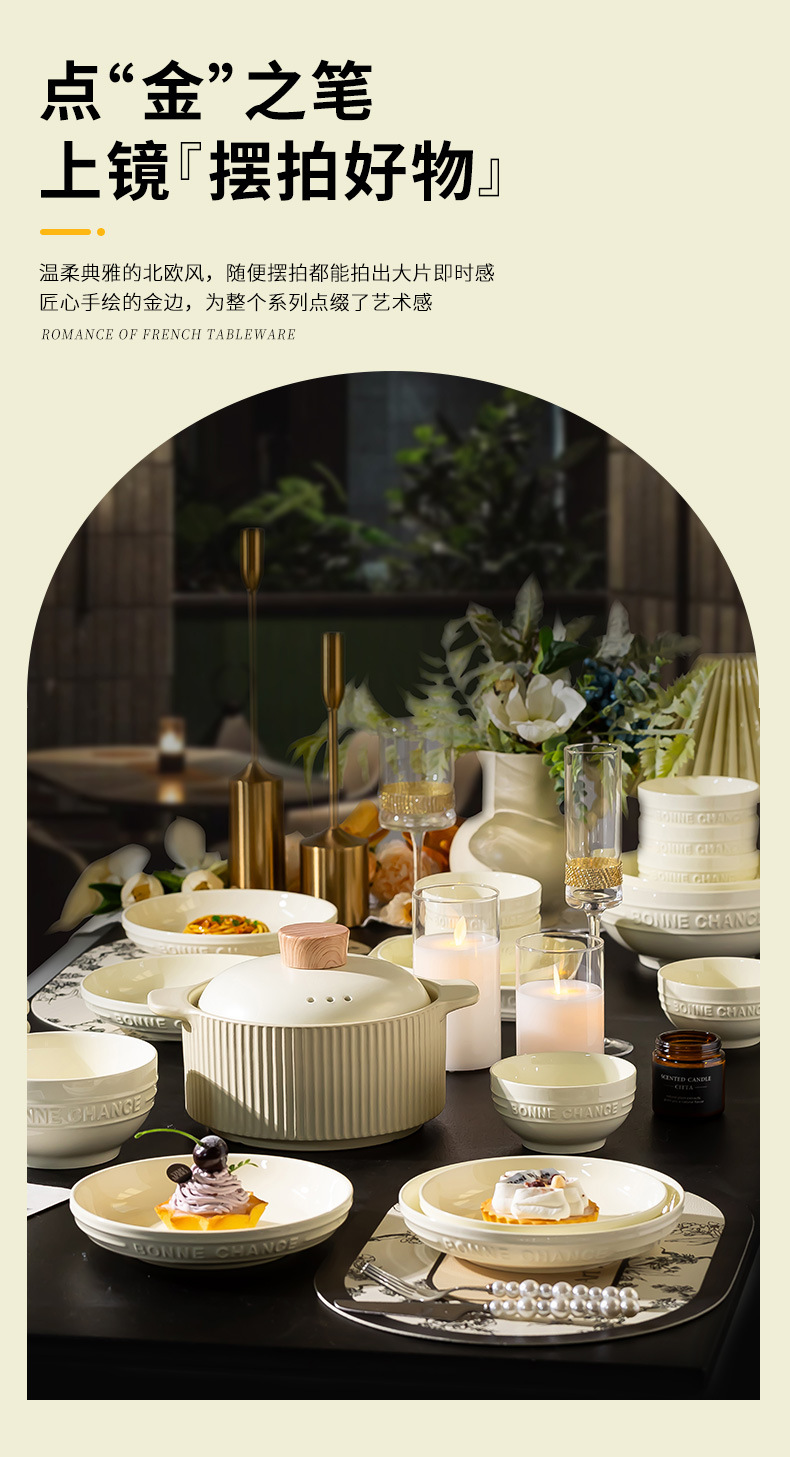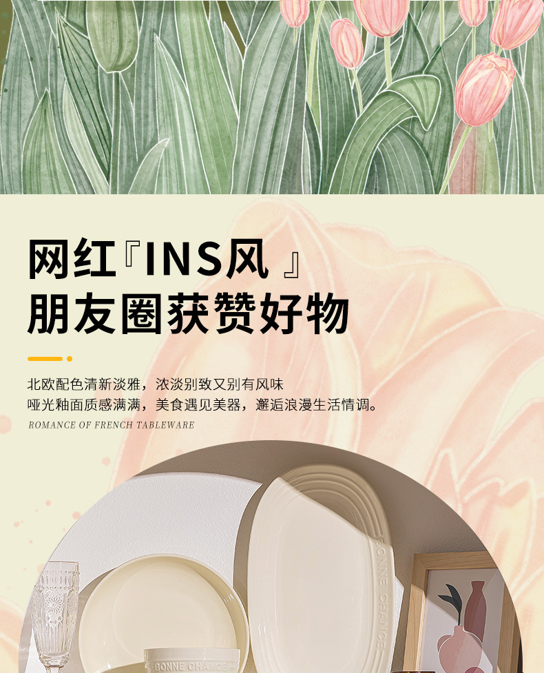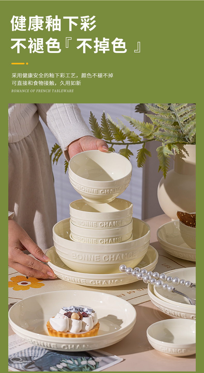 釉下彩法式餐具碗盘高颜值碗碟套装家用加厚碗盘筷汤碗盘子diy