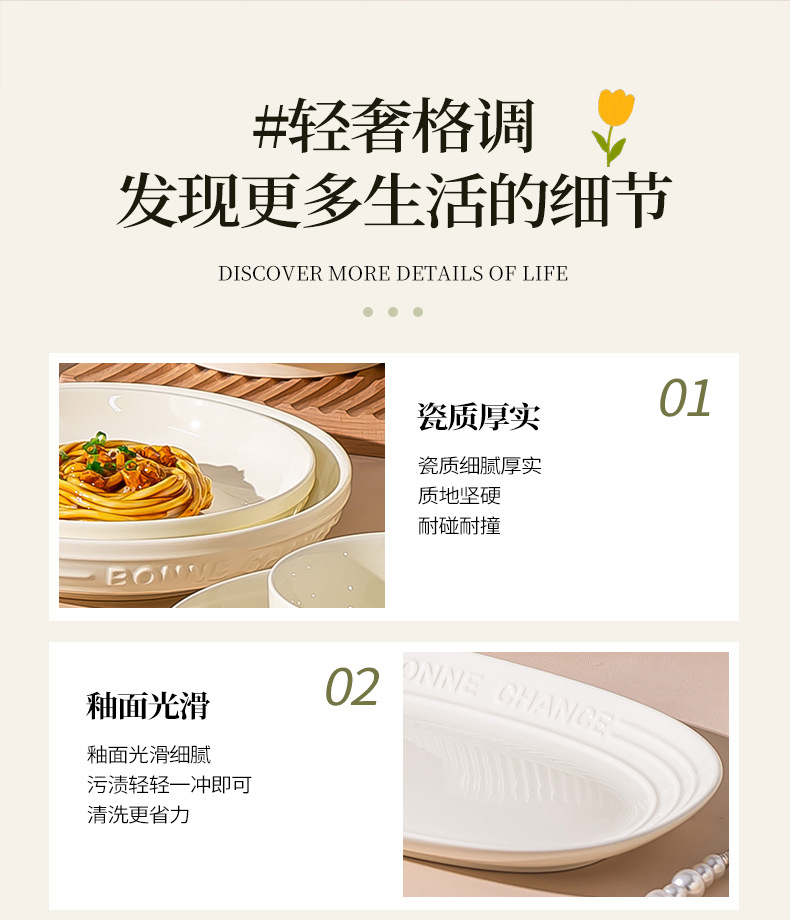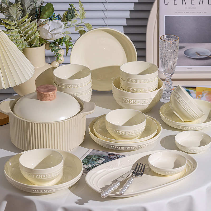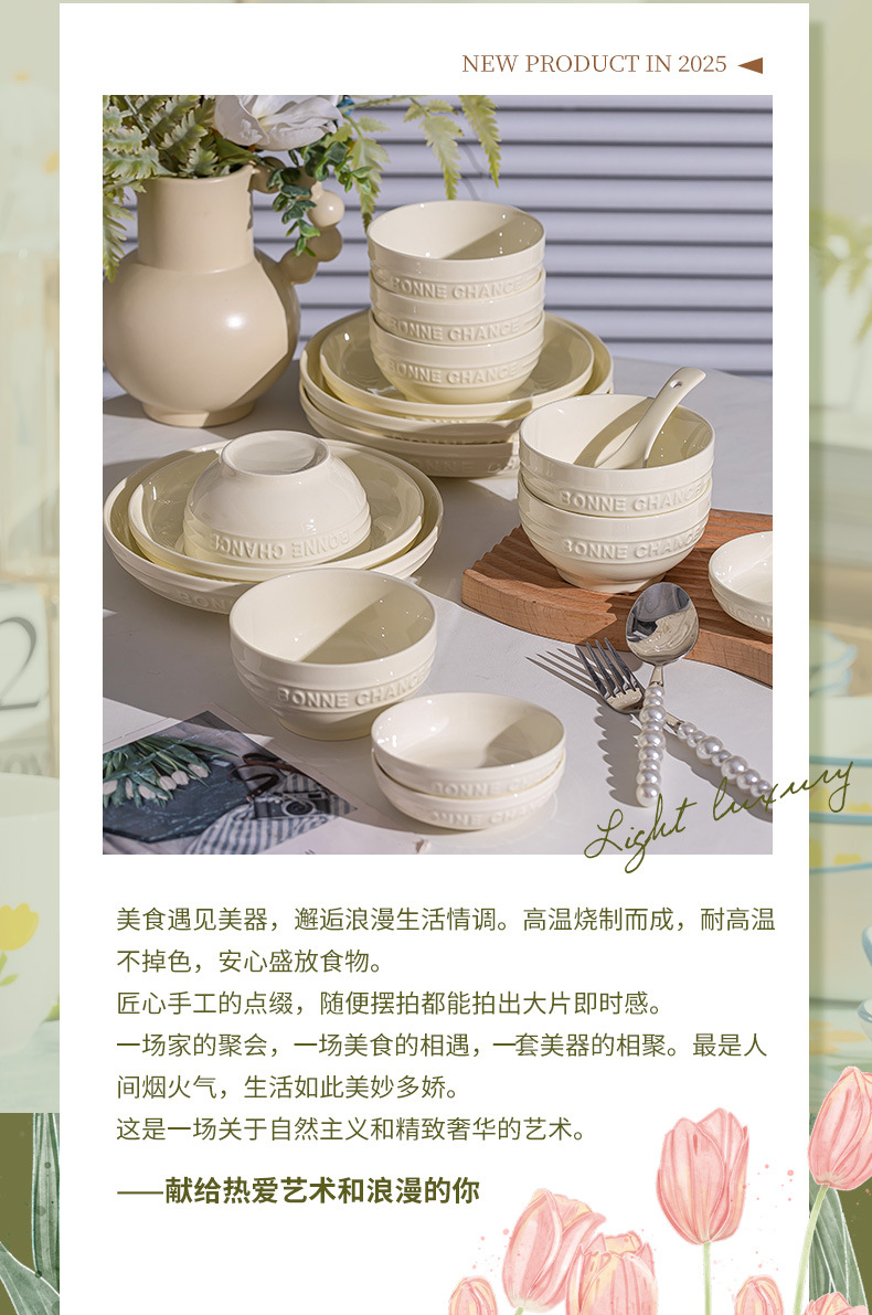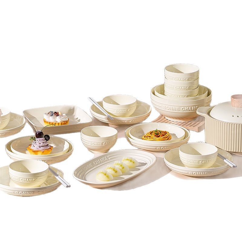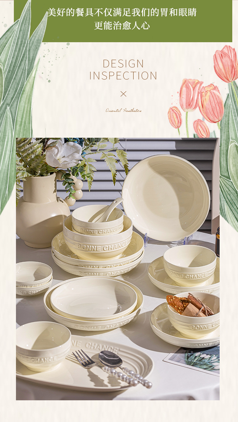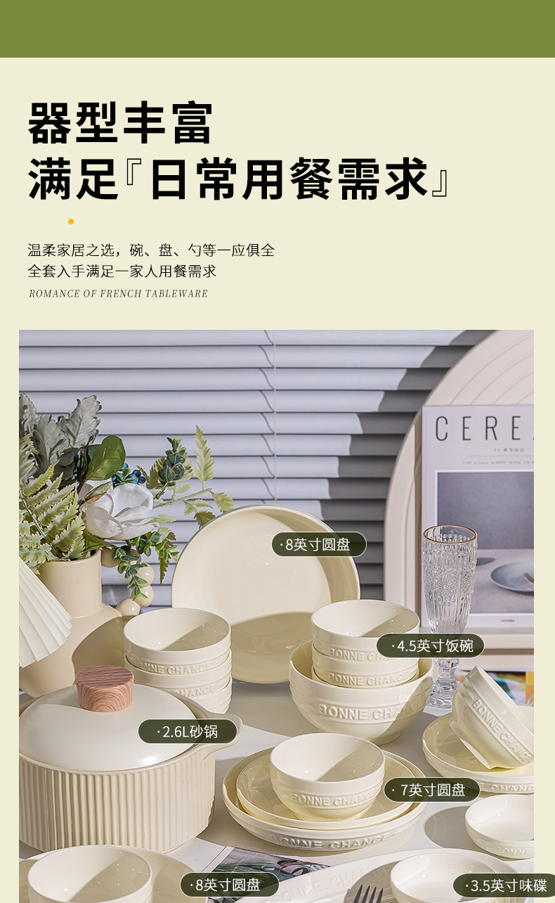 釉下彩法式餐具碗盘高颜值碗碟套装家用加厚碗盘筷汤碗盘子diy