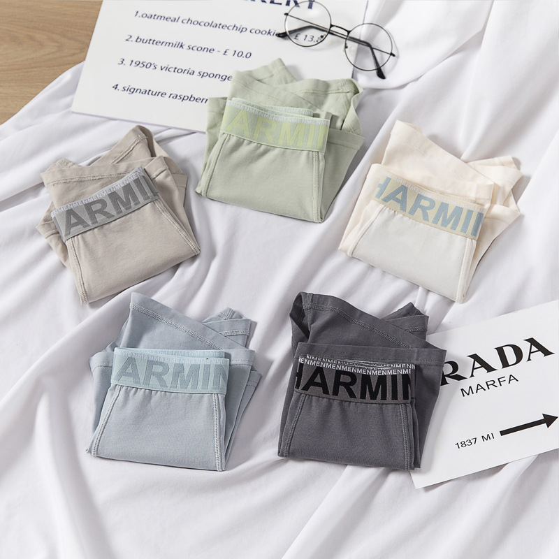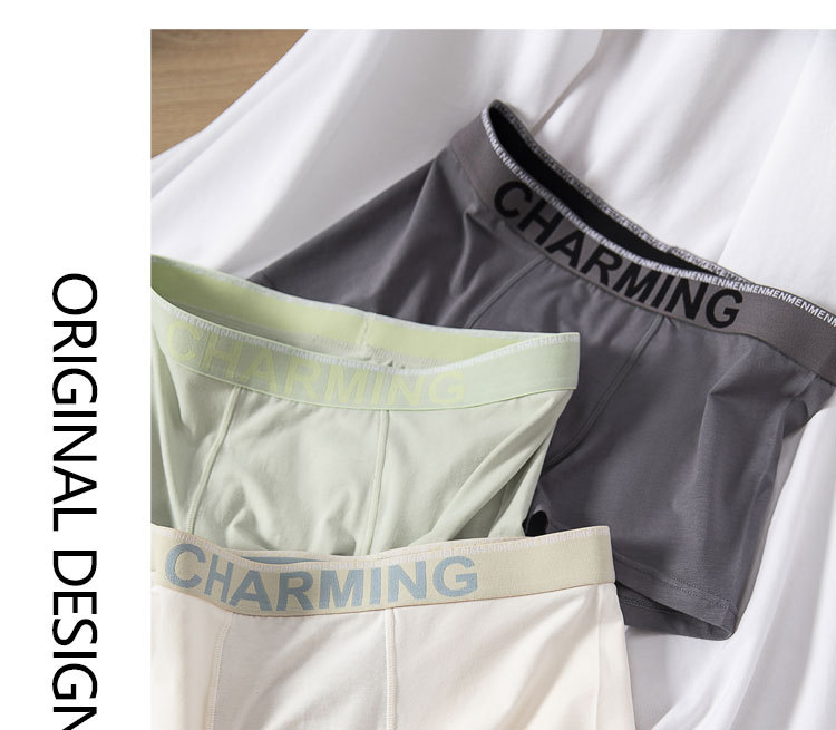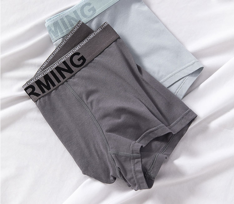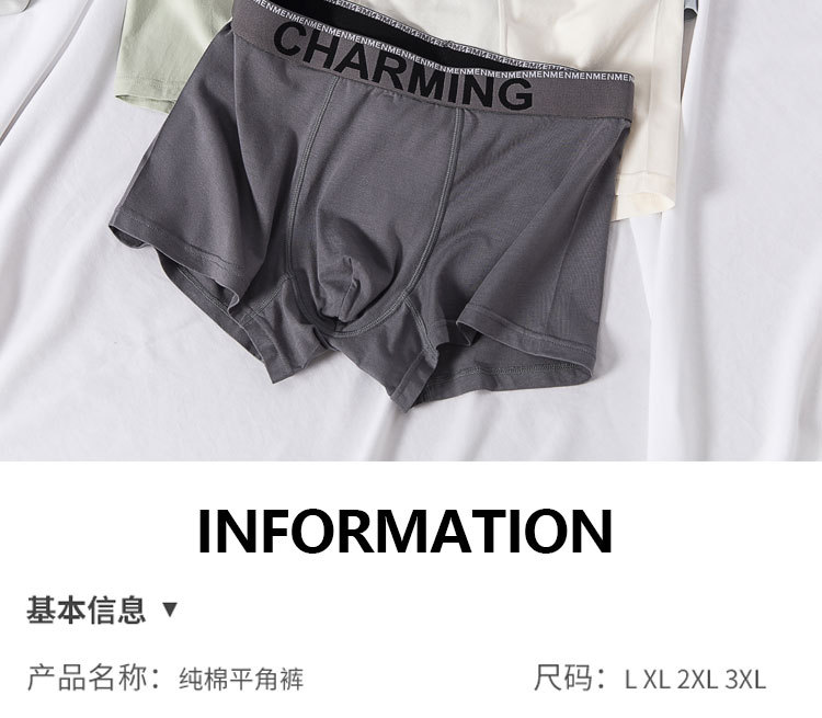 简约风格男士棉质内裤青少年平角裤四角短裤舒适透气宽松平角裤男