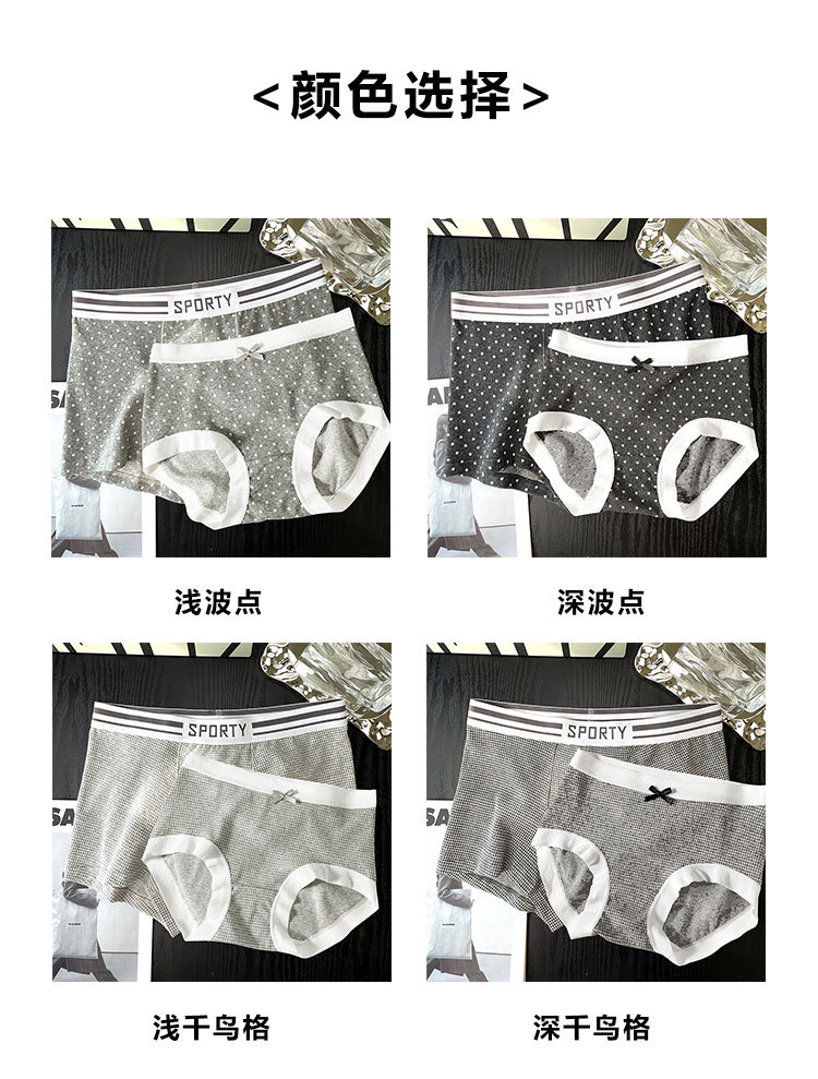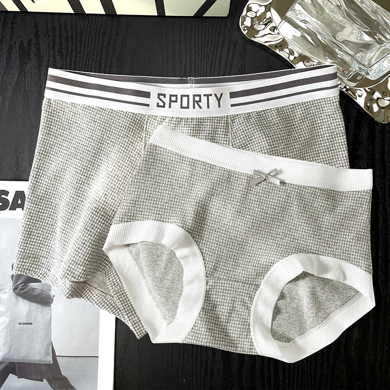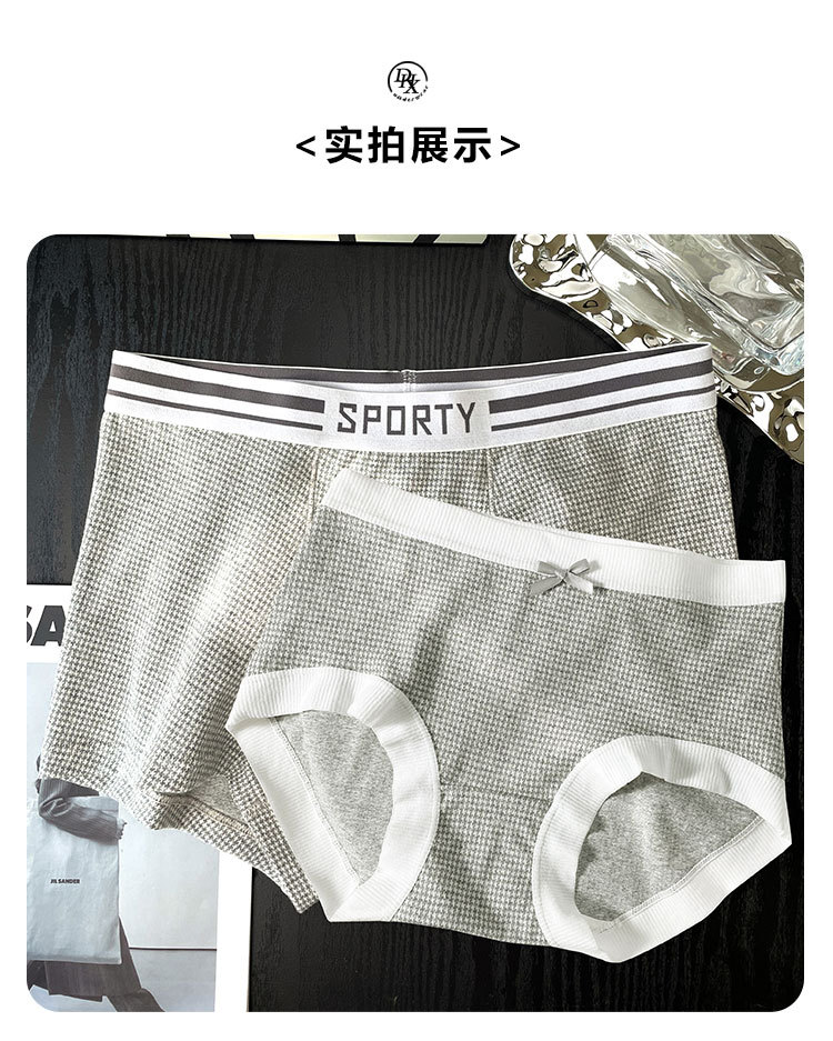 千鸟格情侣款纯棉内裤一男一女中腰男士内裤夫妻内衣套装舒适透气