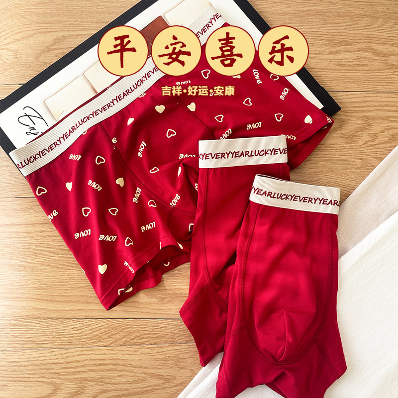 男士大码莫代尔棉本命年红内裤宽松四角裤短裤结婚礼物男生平角裤