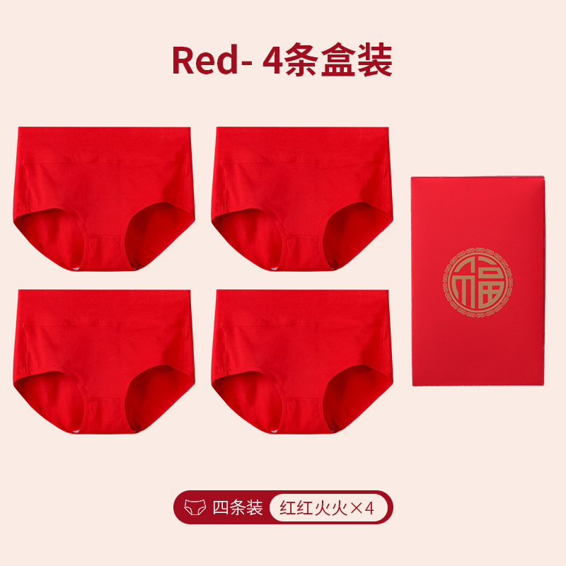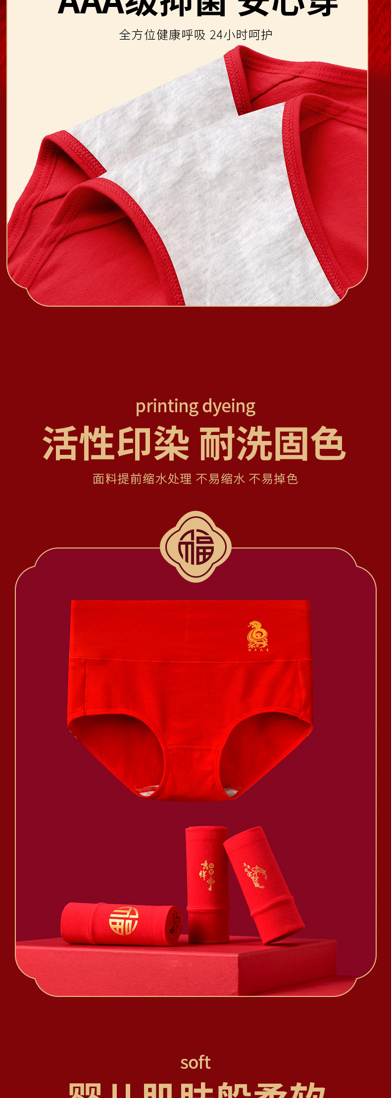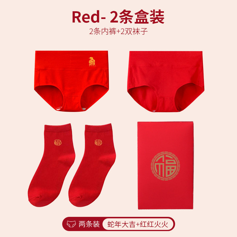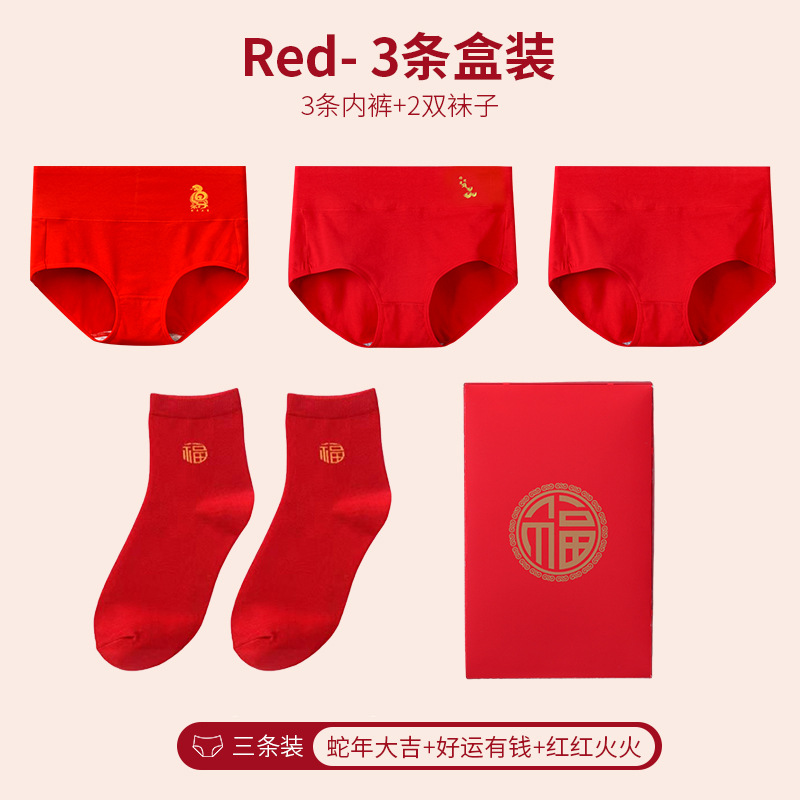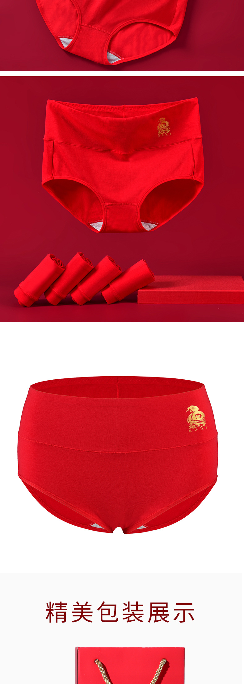 蛇年红色内裤女结婚内裤女士无痕本命年三角裤秋冬高腰红内裤纯棉
