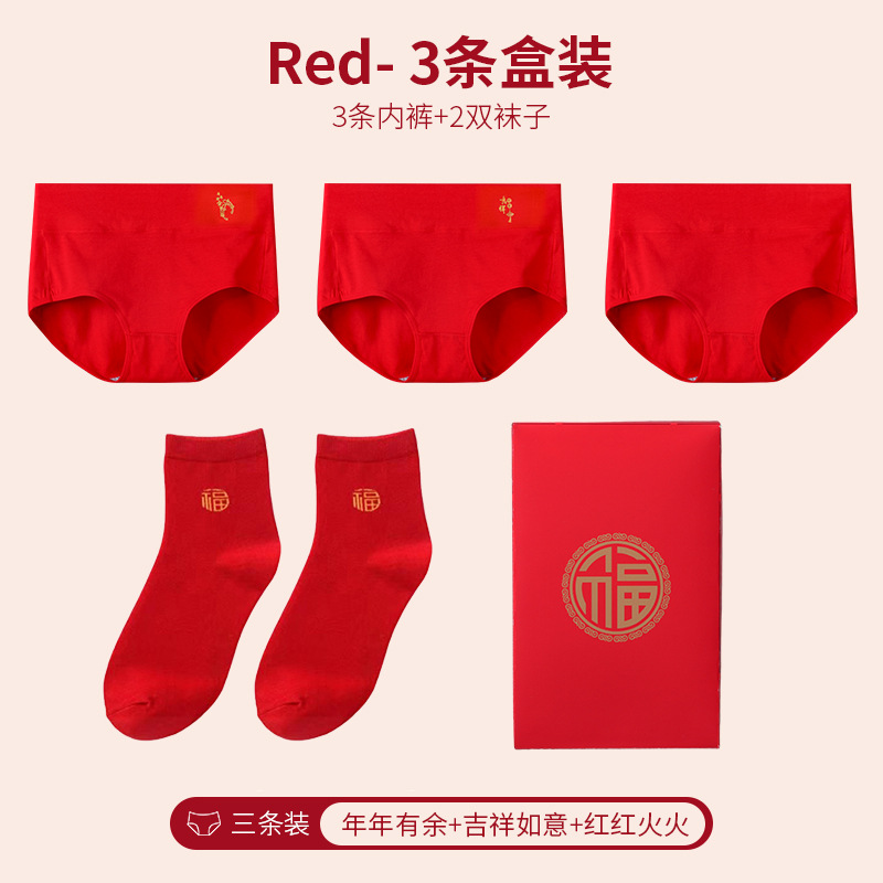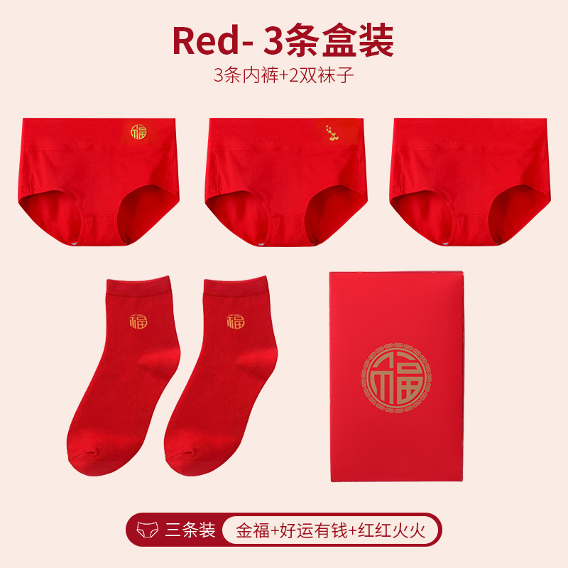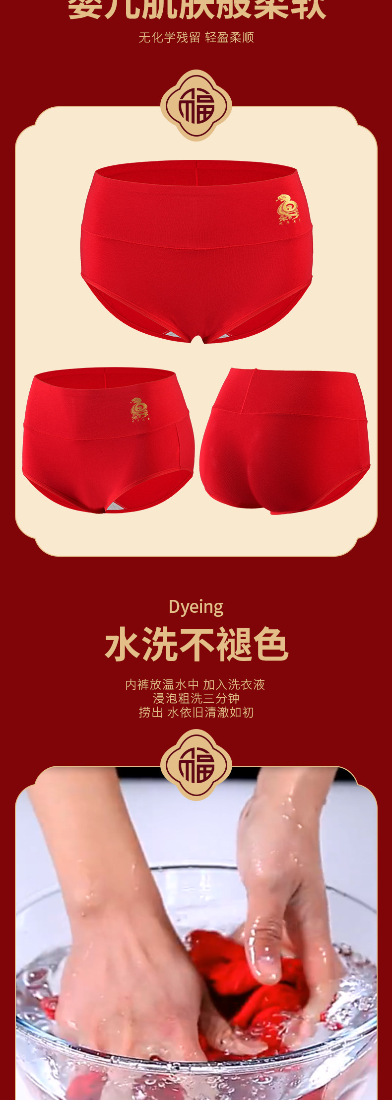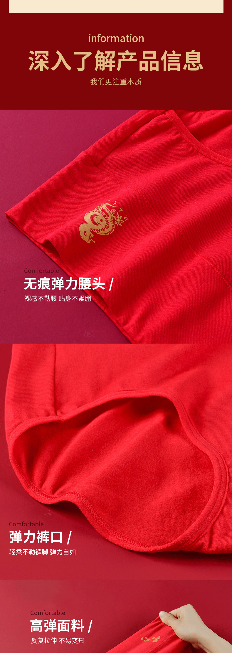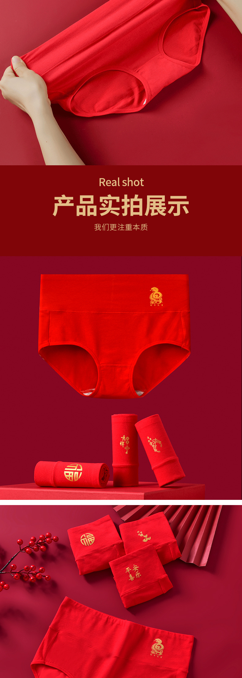 蛇年红色内裤女结婚内裤女士无痕本命年三角裤秋冬高腰红内裤纯棉