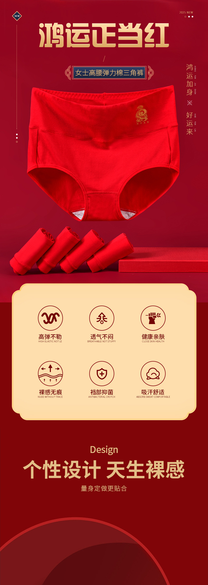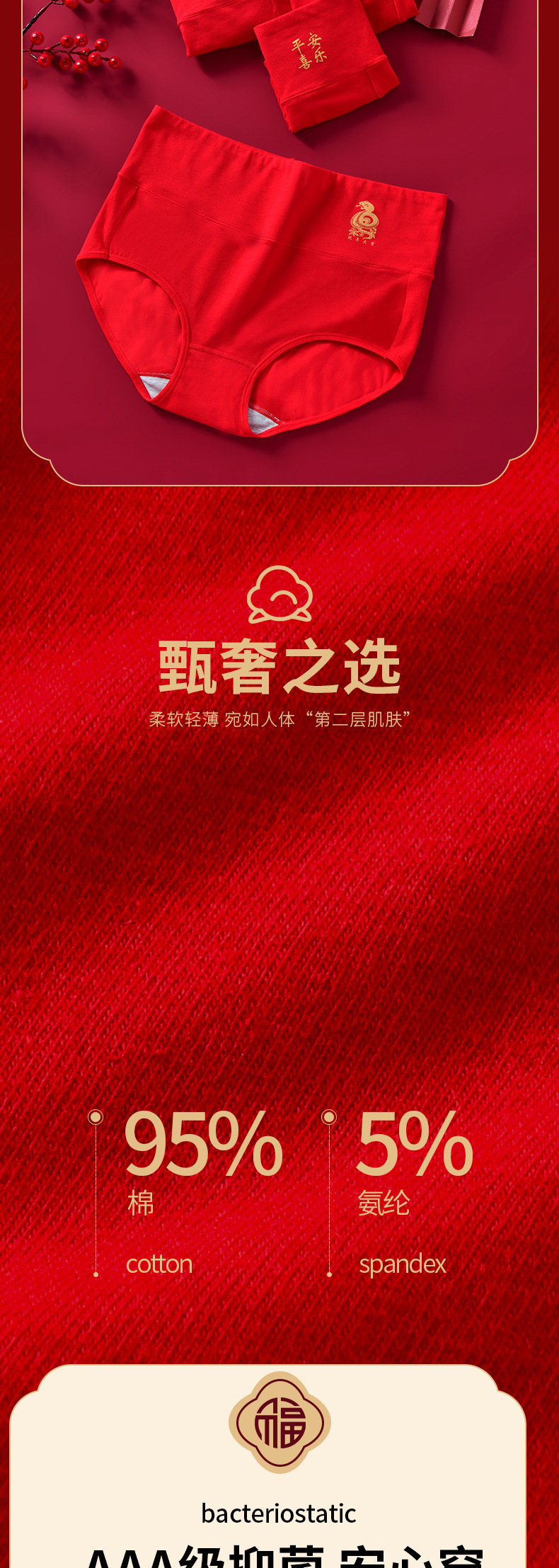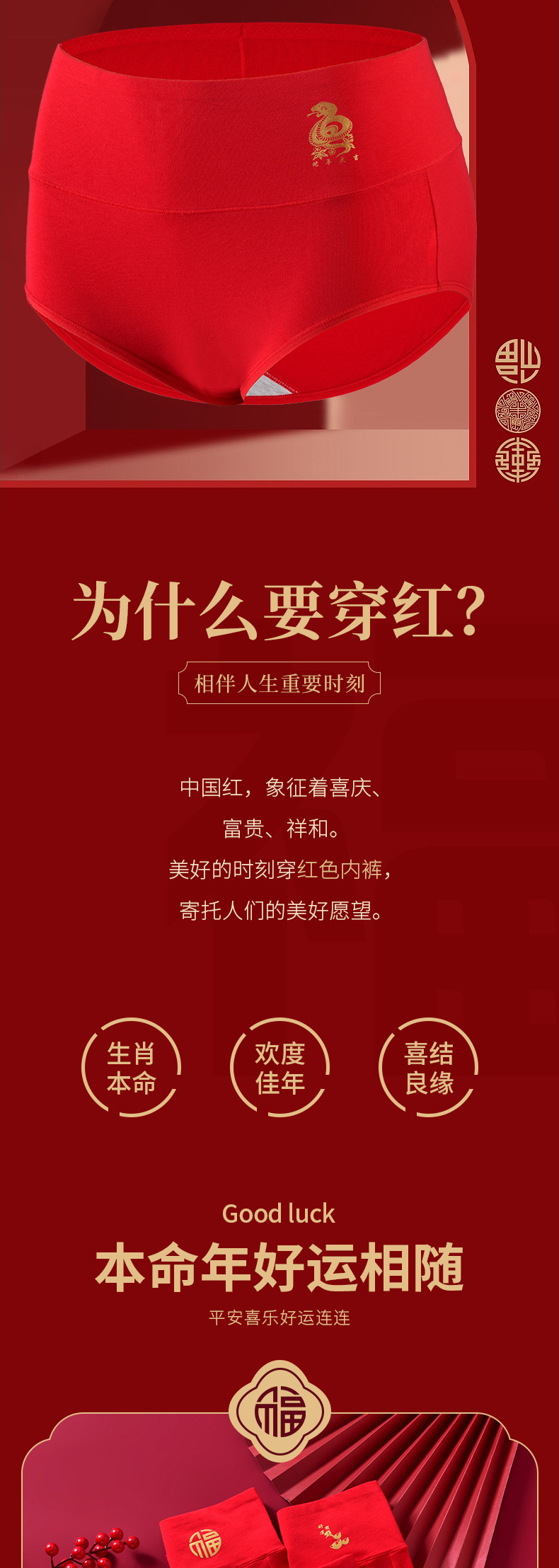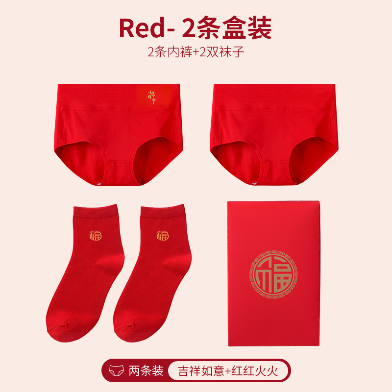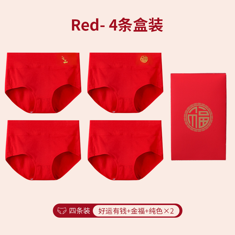 蛇年红色内裤女结婚内裤女士无痕本命年三角裤秋冬高腰红内裤纯棉