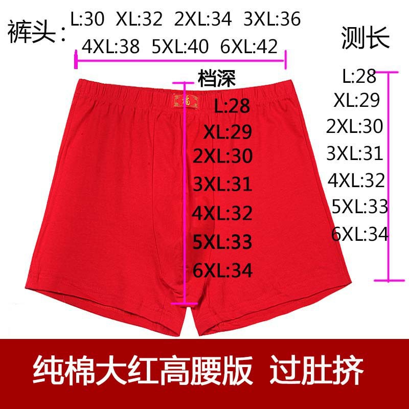 中老年高腰内裤男大码大红色平角裤棉男士本命年红内裤男内裤纯棉