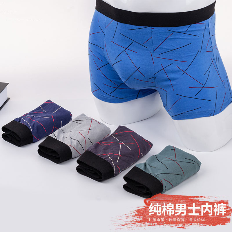 男士内裤印花条纹棉质U凸设计不压迫吸汗透气时尚青年四角裤头