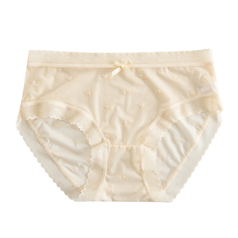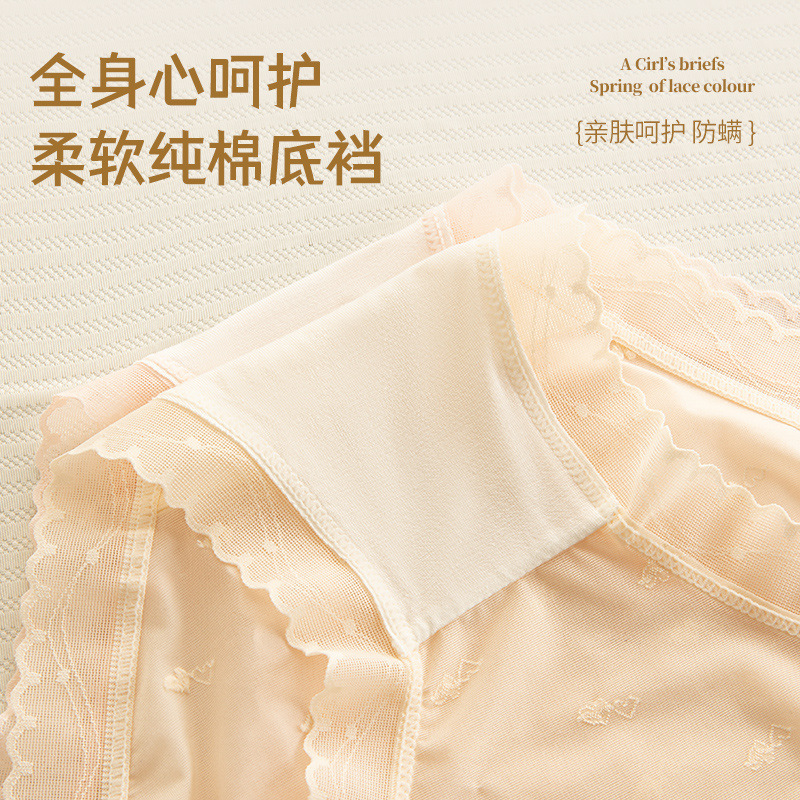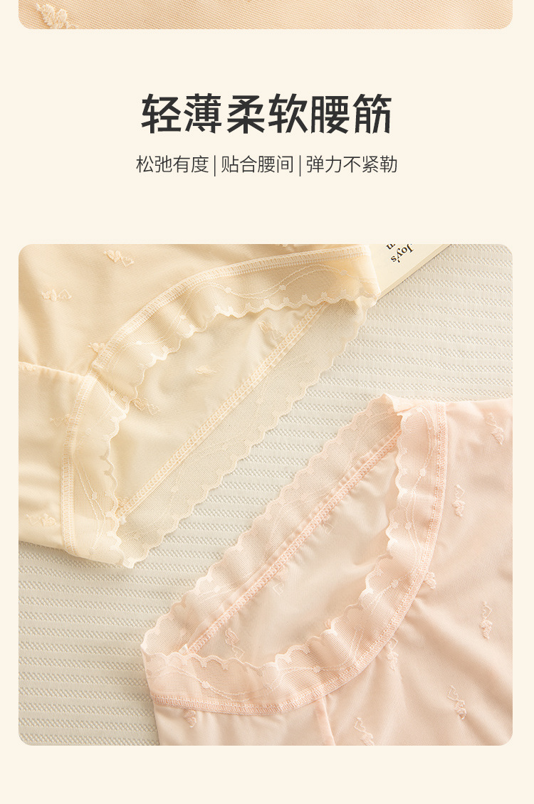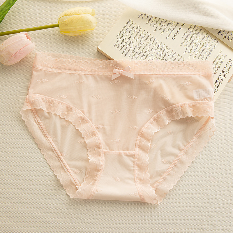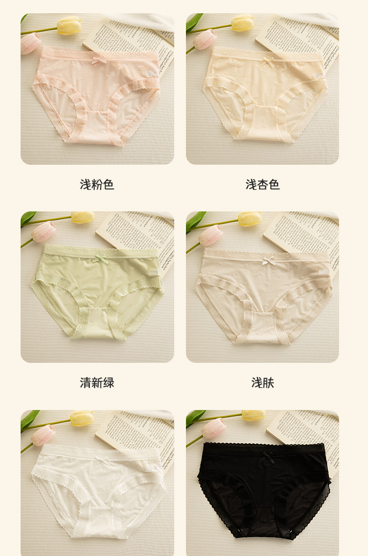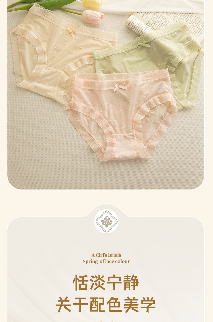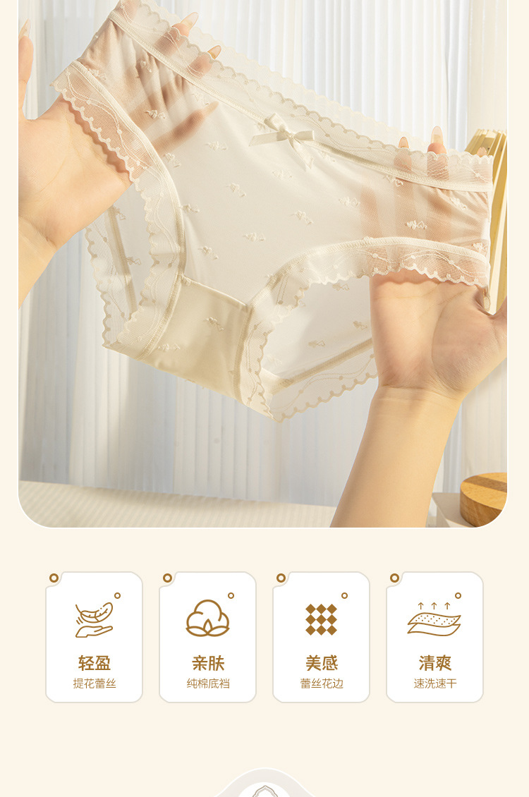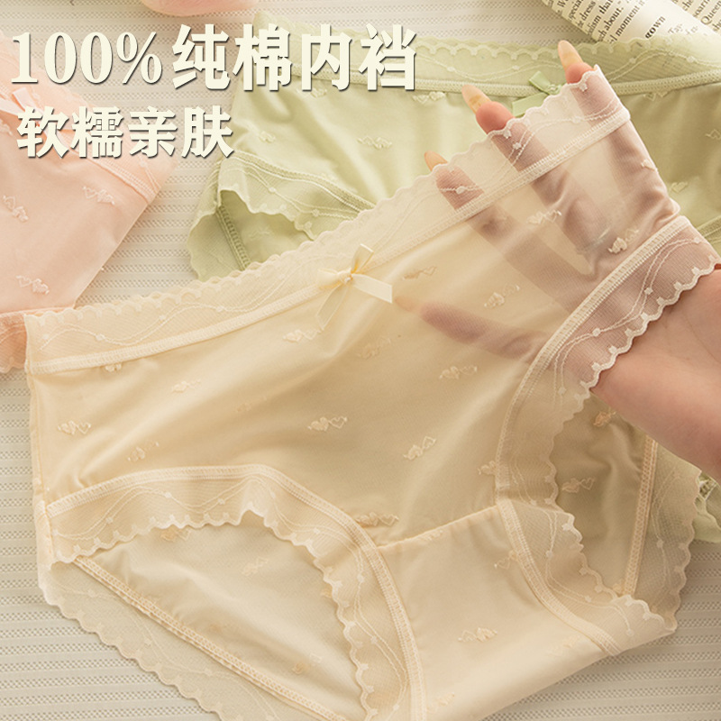 夏季薄款少女中腰内裤纯欲蕾丝网纱亲肤透气纯棉内裆不夹臀三角裤