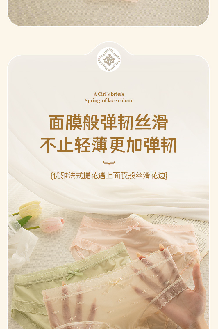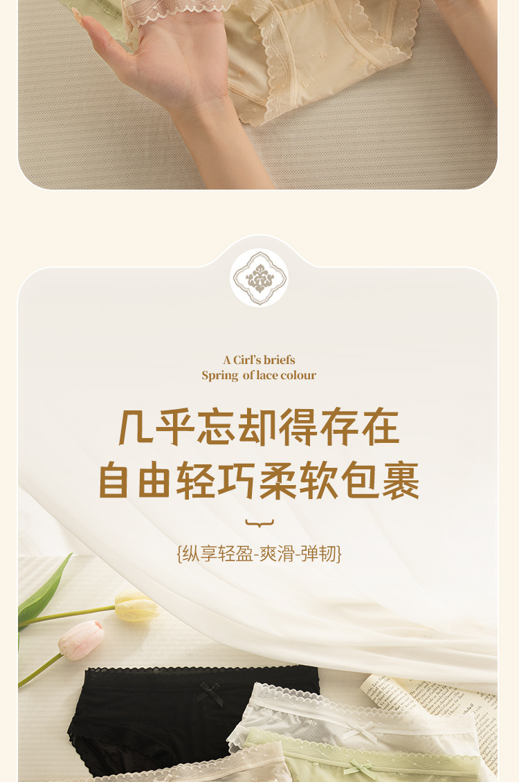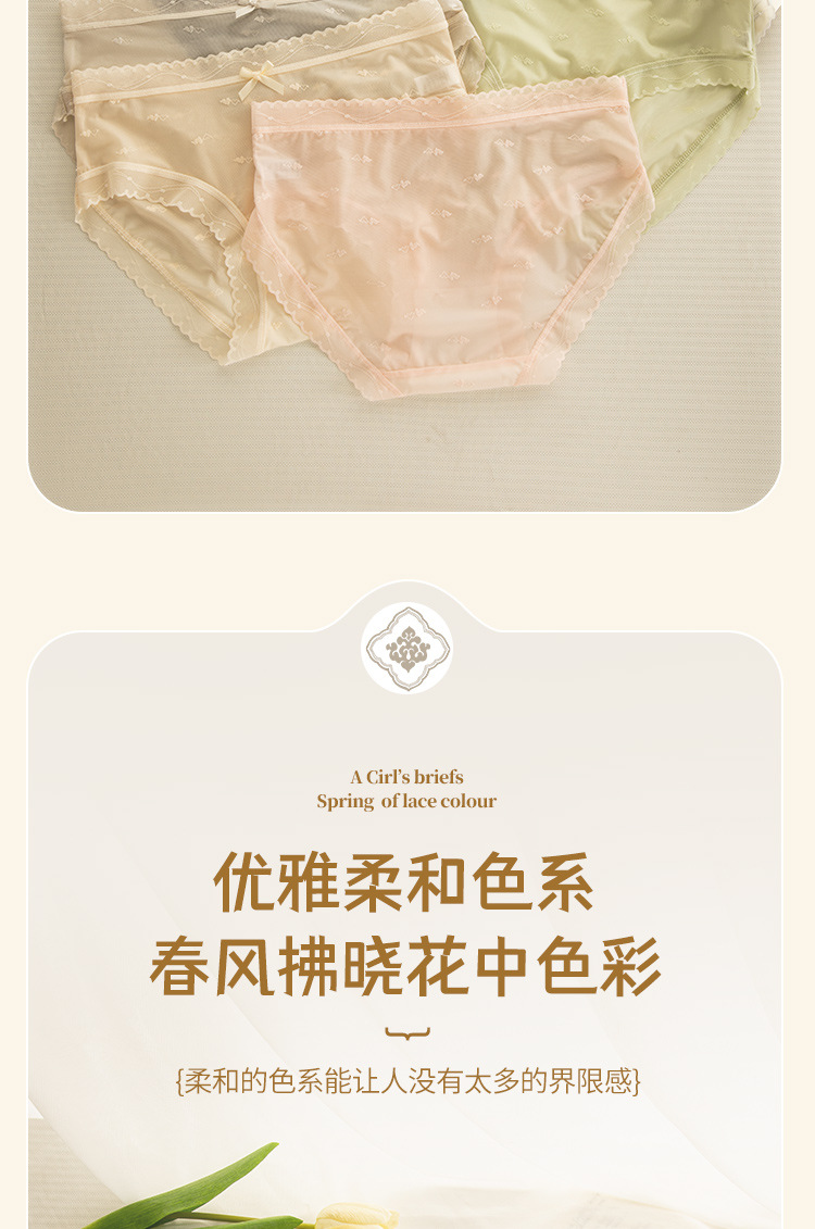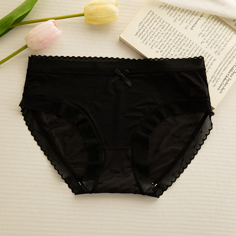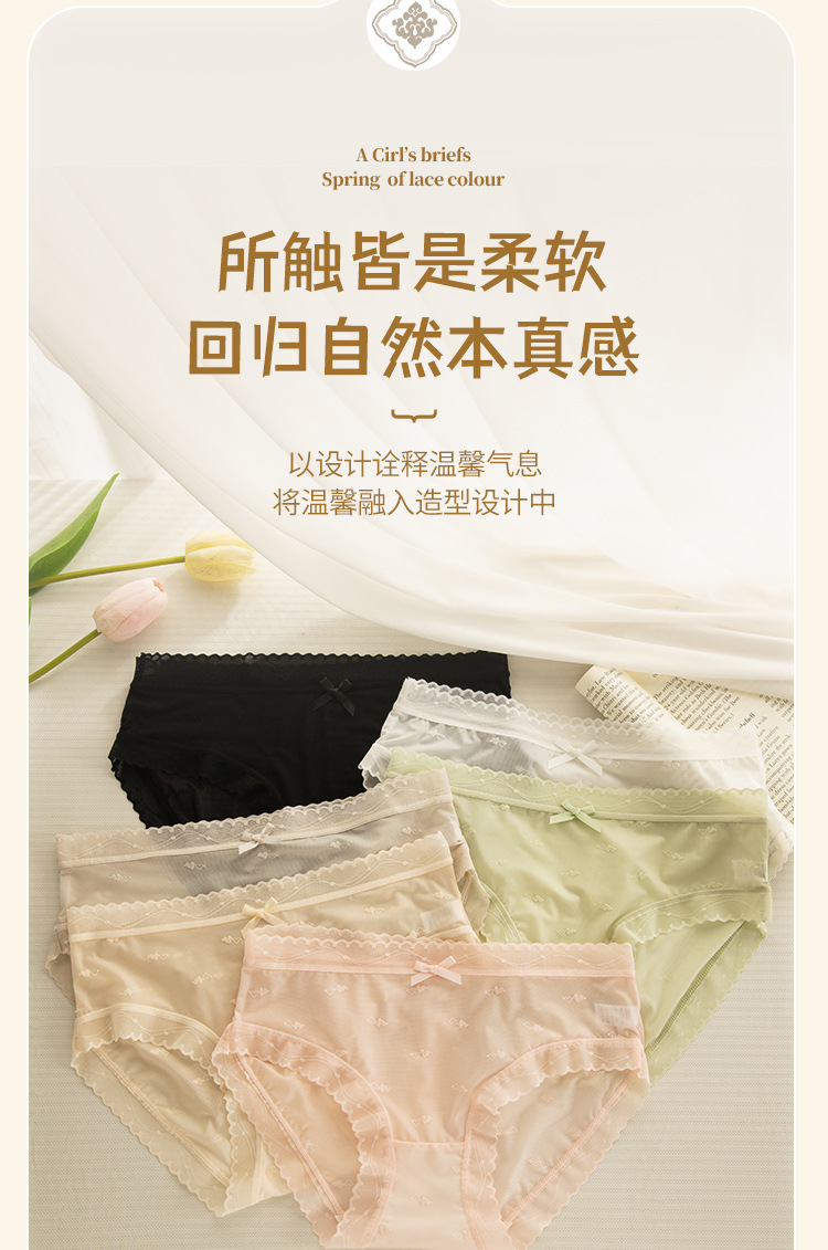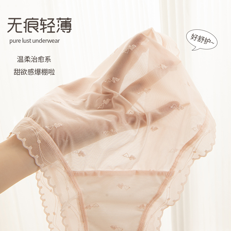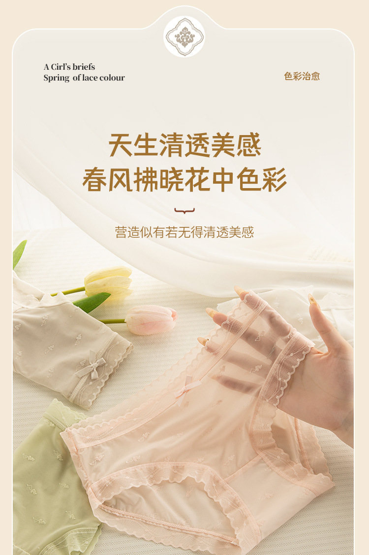 夏季薄款少女中腰内裤纯欲蕾丝网纱亲肤透气纯棉内裆不夹臀三角裤