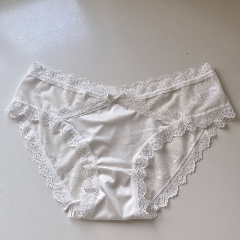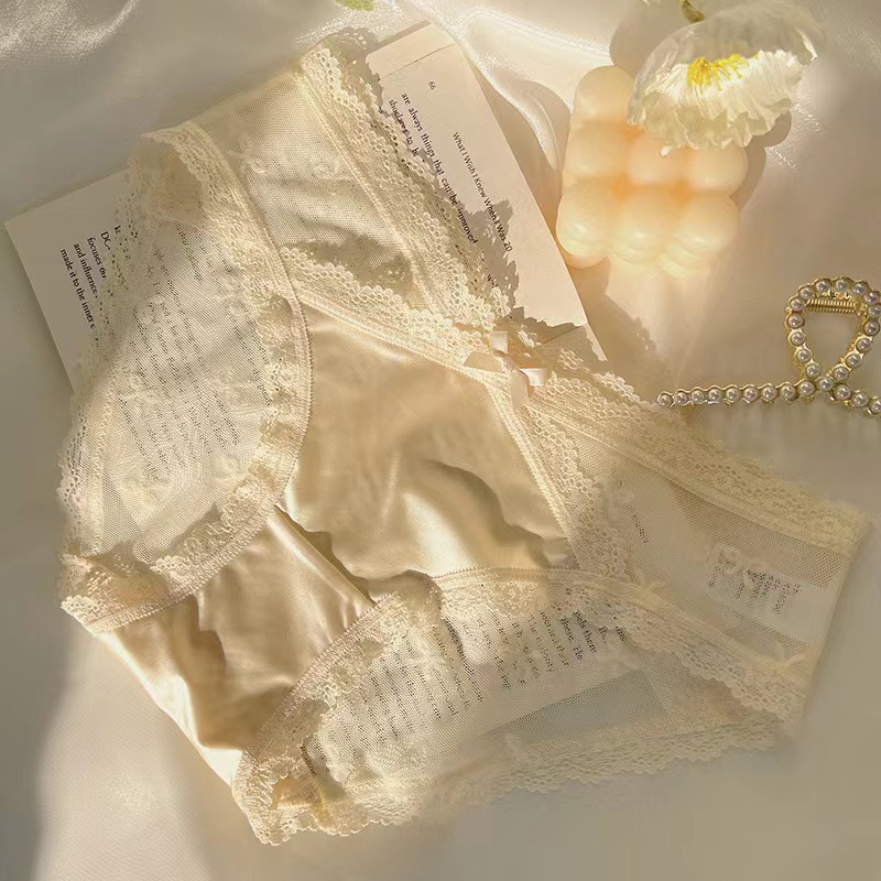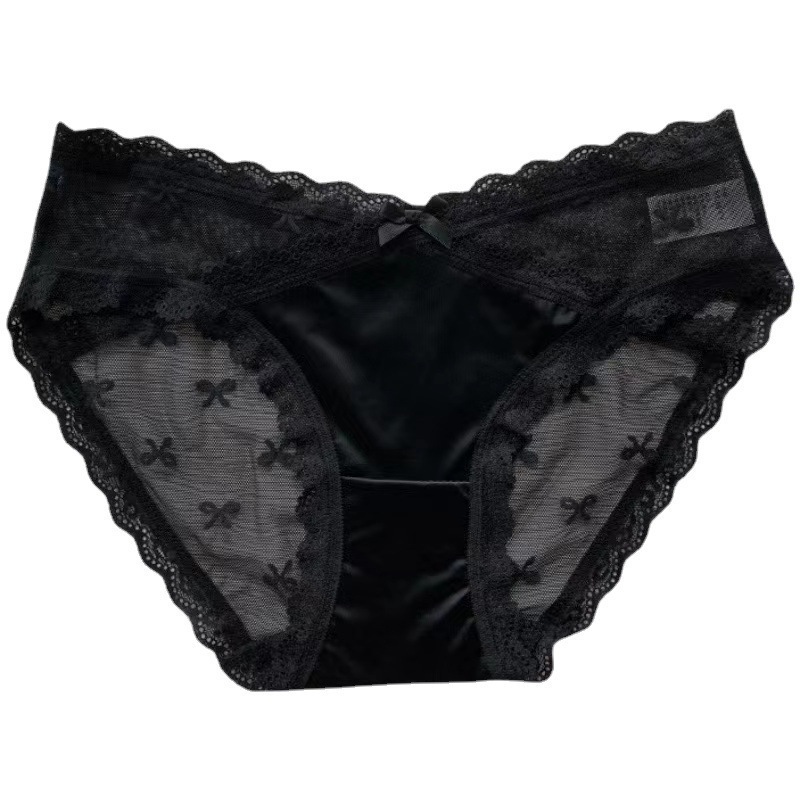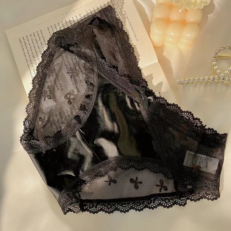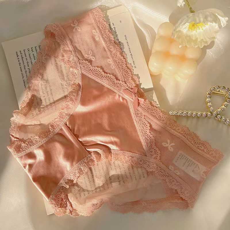 法式交叉性感缎面内裤女士柔软蕾丝纯欲风低腰三角裤女纯欲蝴蝶结