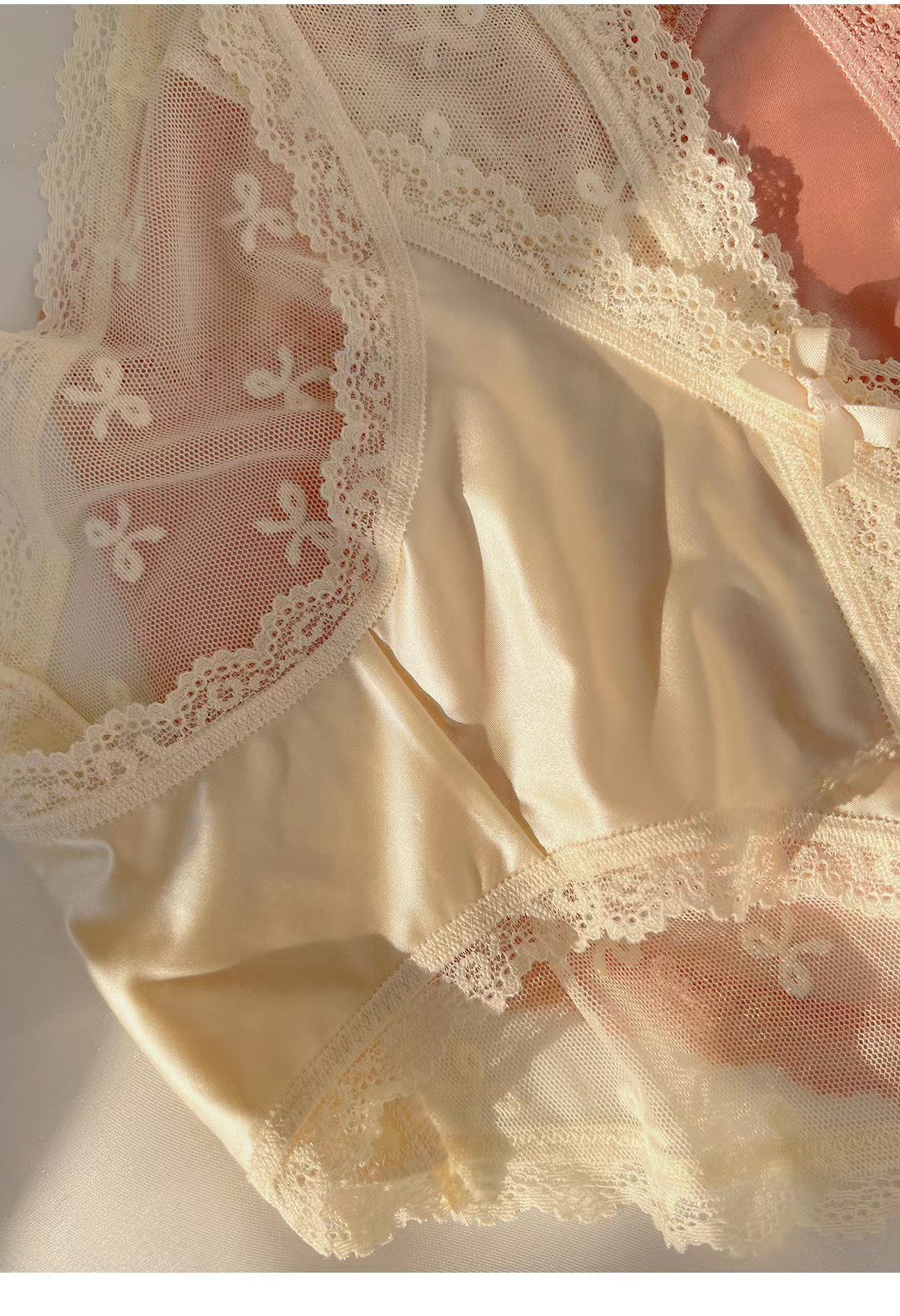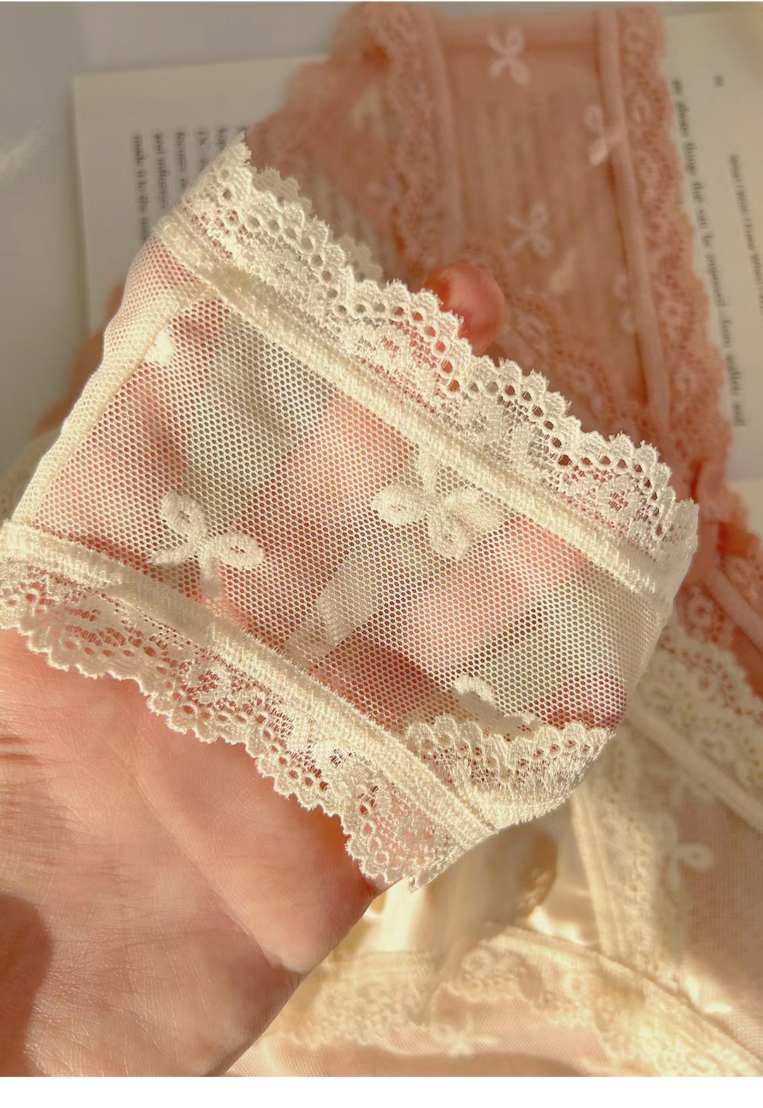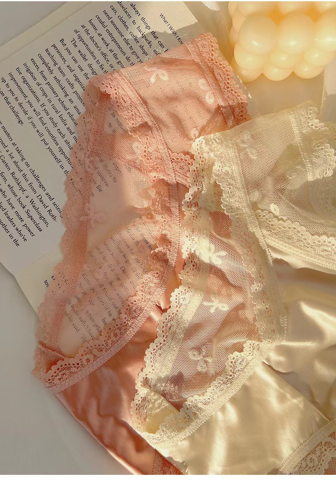 法式交叉性感缎面内裤女士柔软蕾丝纯欲风低腰三角裤女纯欲蝴蝶结