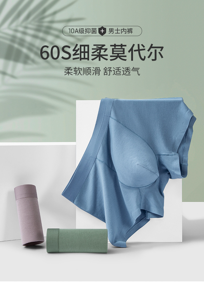 60支兰精莫代尔男士内裤纯色无痕透气舒适男生平角裤中山小榄批发