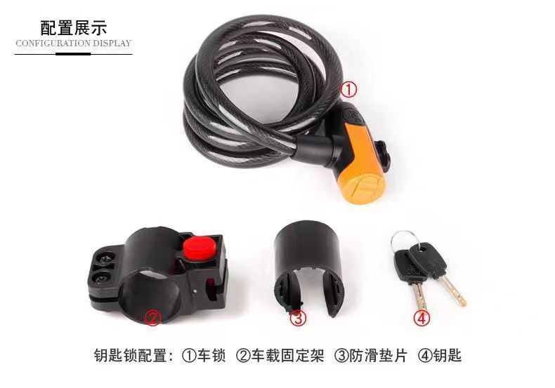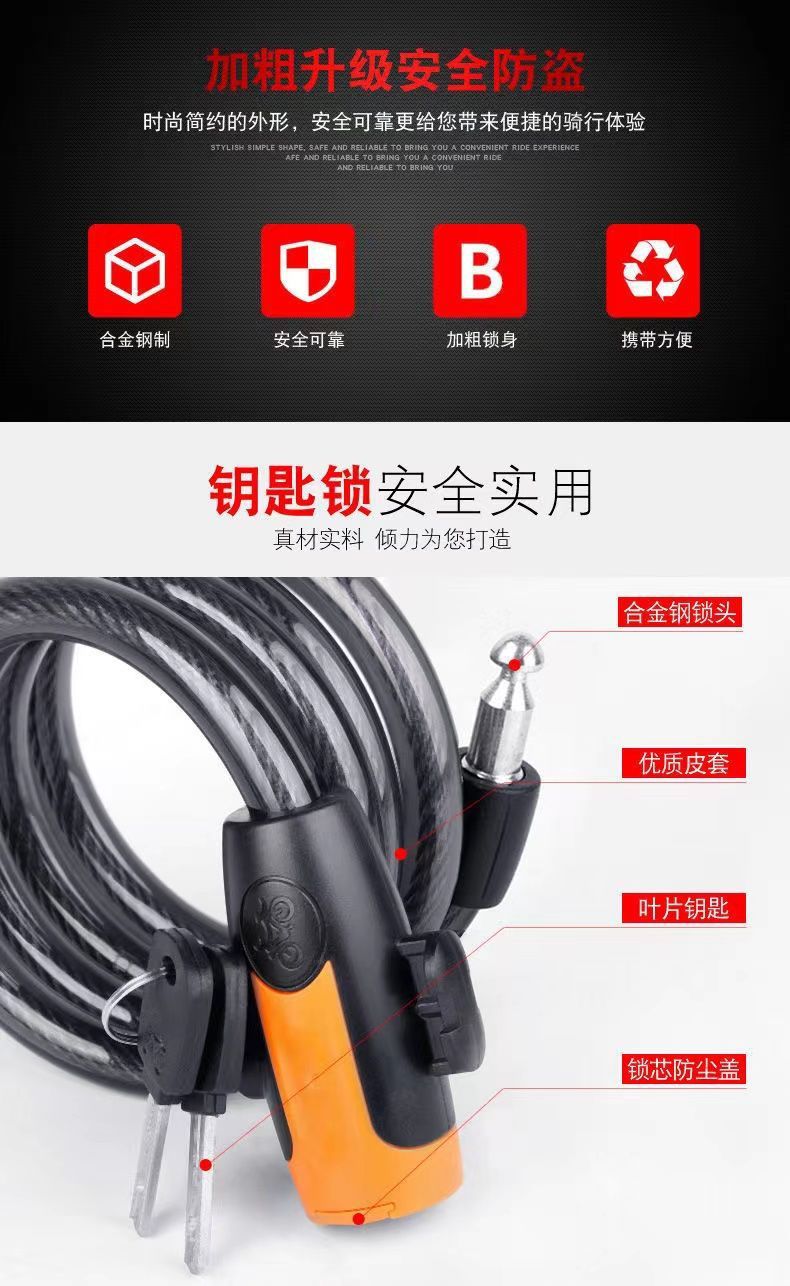 山地自行车折叠锁固定便携式钢缆锁电动电瓶车防盗防撬通用钢丝锁