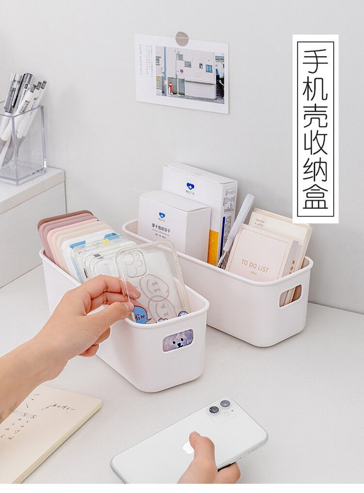 手机壳收纳盒学生宿舍桌面化妆品长方形杂物文具置物架手提收纳筐