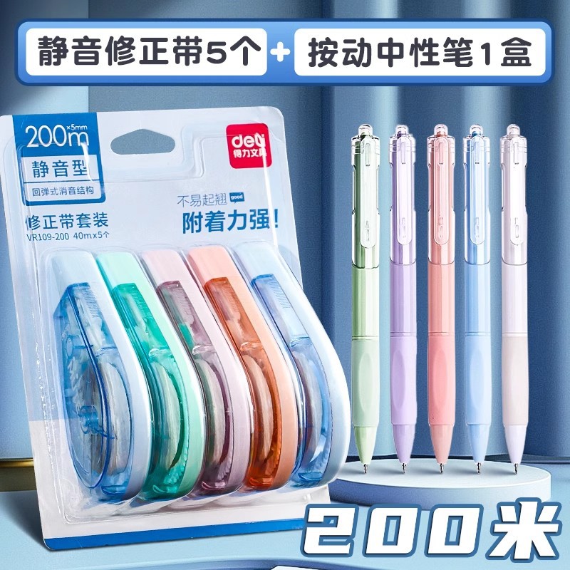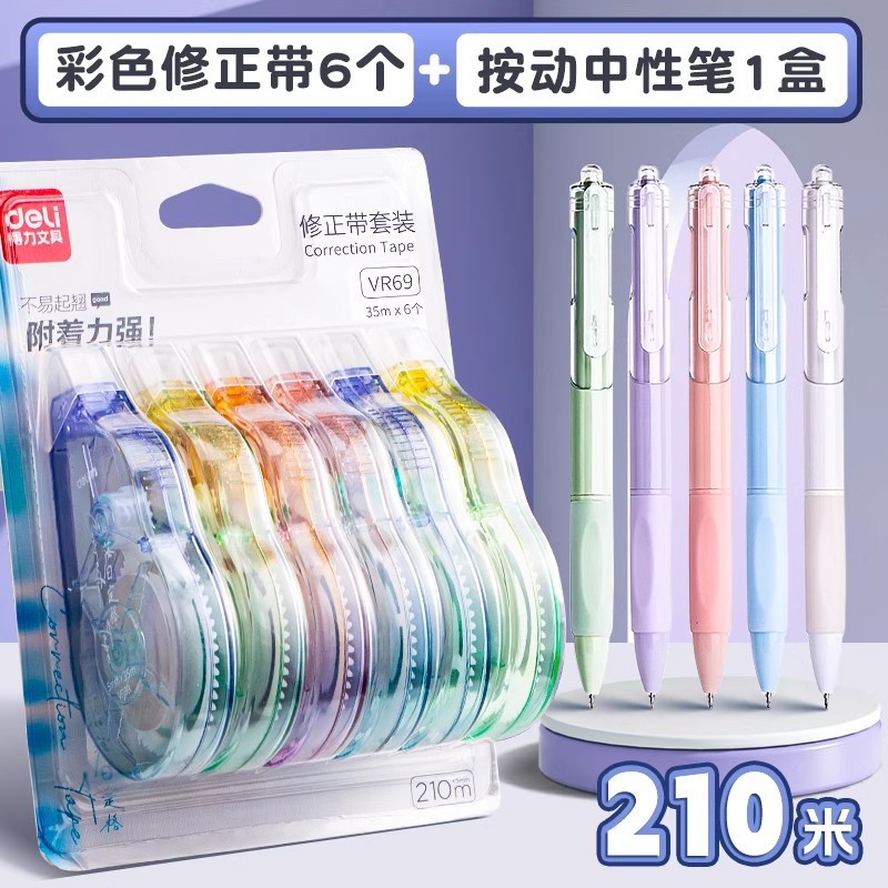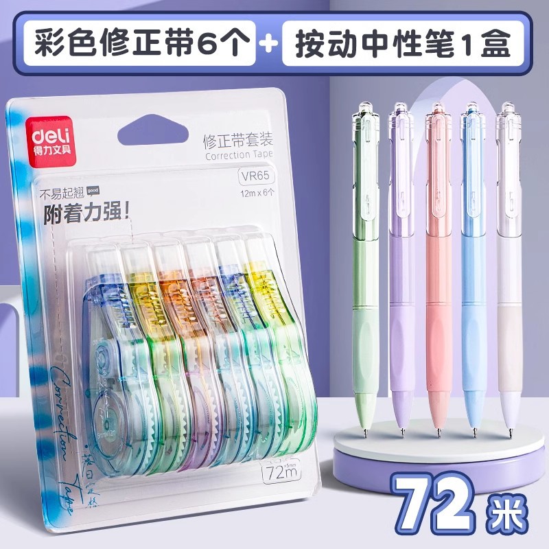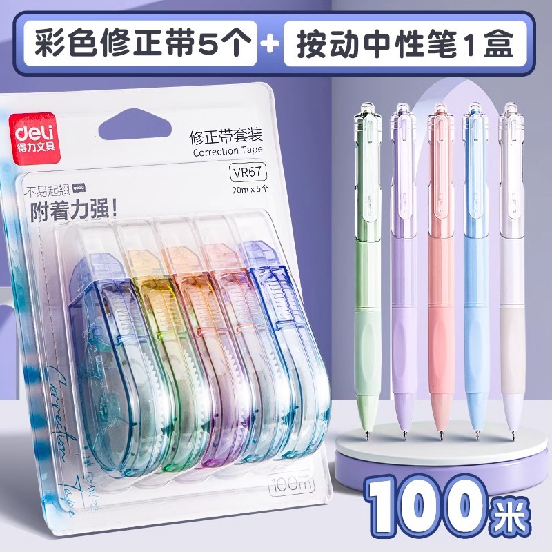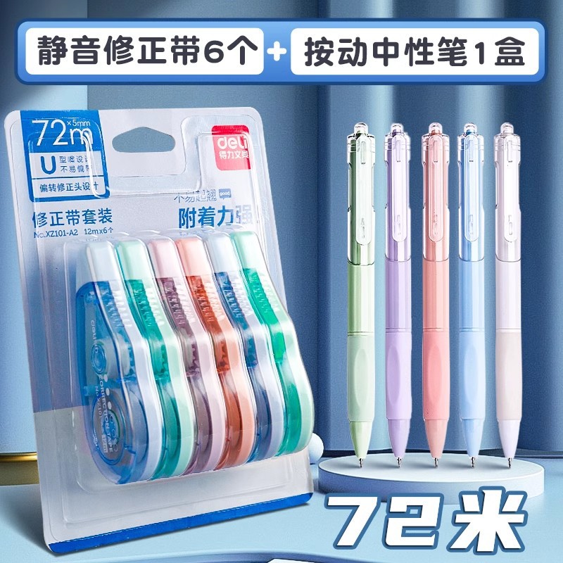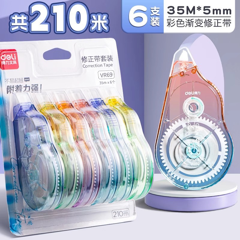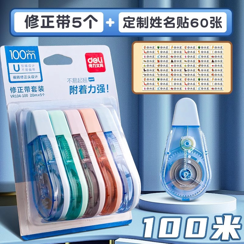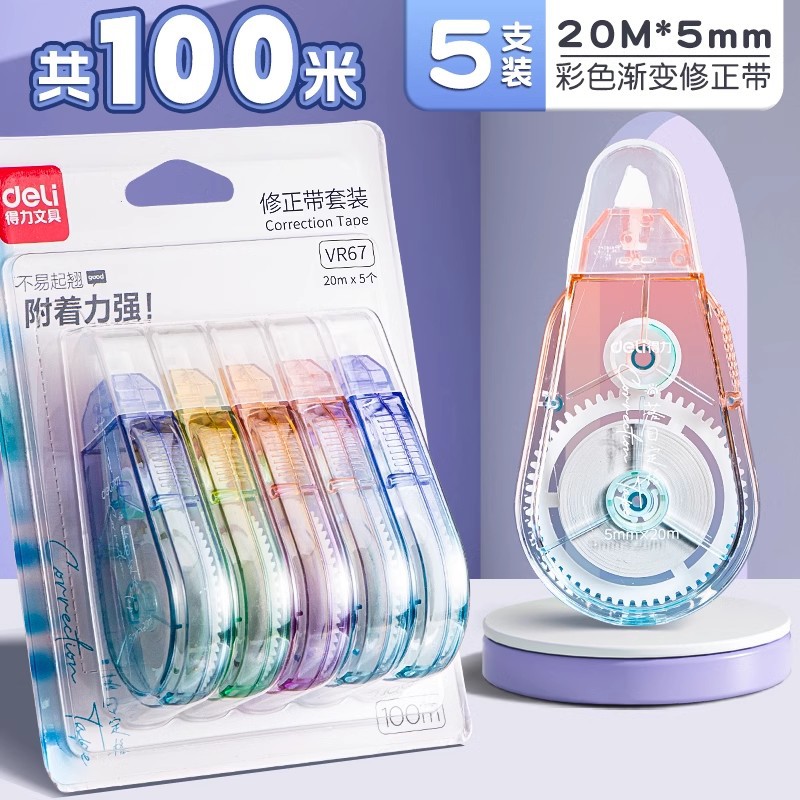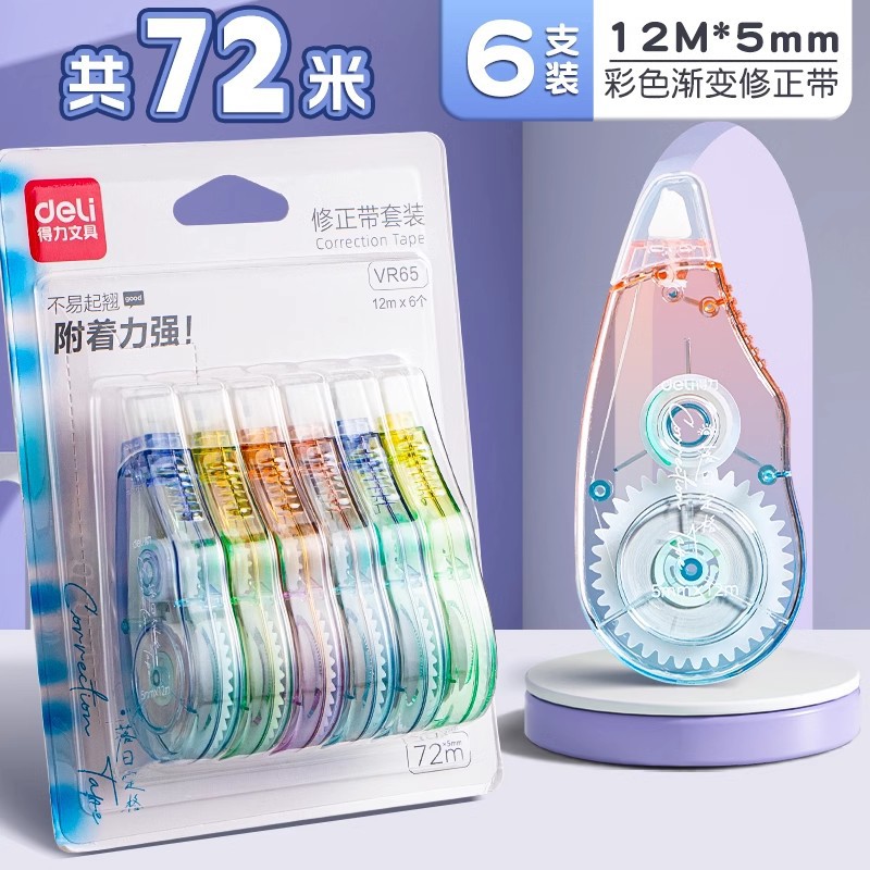 得力静音修正带学生用大容量涂改带批发便携改正带ins日系高颜值