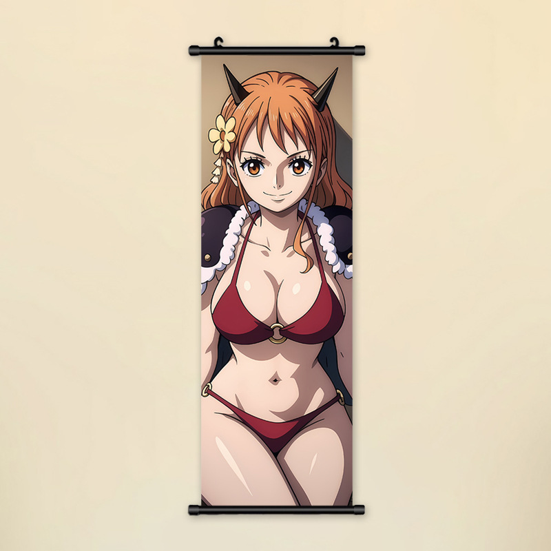 高清喷绘海贼王动漫罗宾娜美挂轴画帆布装饰画海报漫展可挂式挂画