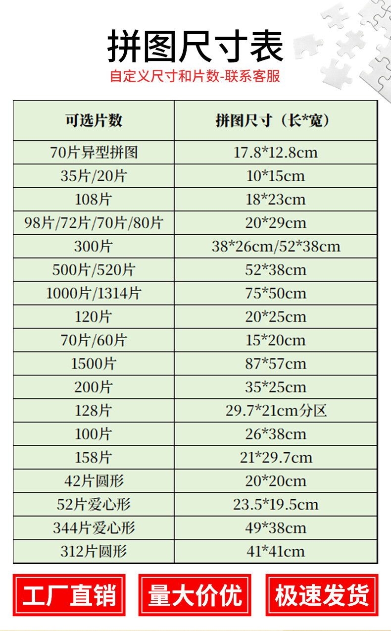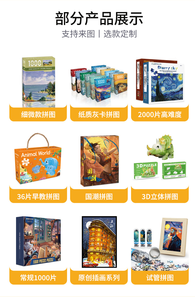 DIY空白拼图1000片1314片520片500片拼图木质 高咬合度UV打印拼图