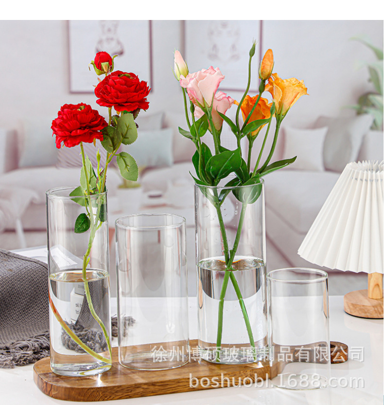 北欧直筒玻璃花瓶 简约透明水培鲜花插花瓶 轻奢家居干花装饰摆件