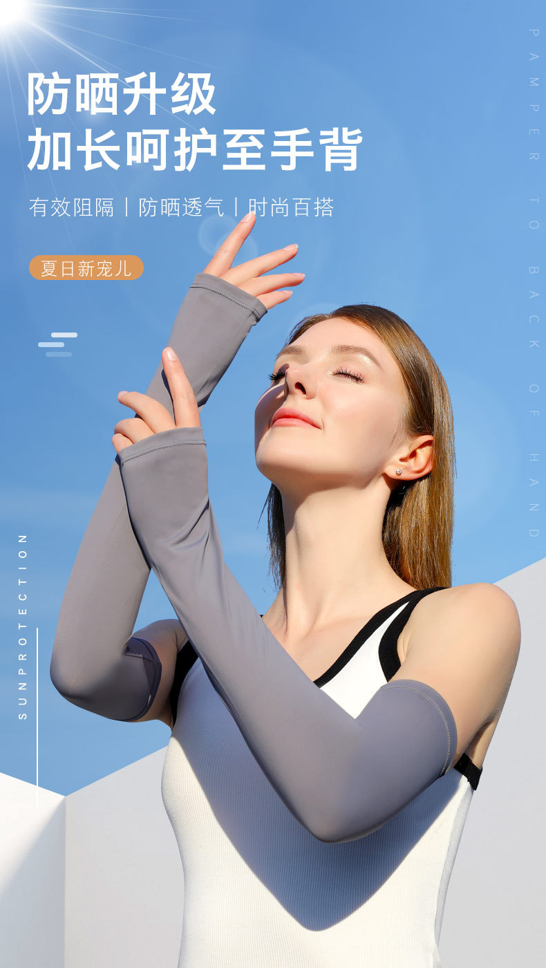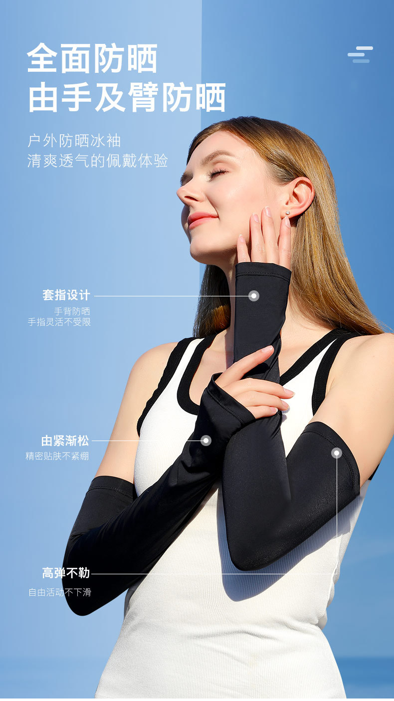 YHI冰丝防晒袖套防紫外线纯色简约女士透气袖套手臂套袖冰袖女