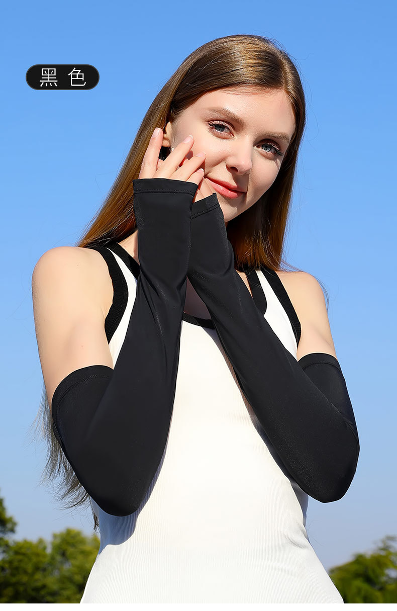 夏季冰丝防晒袖套防紫外线纯色简约女士透气袖套手臂套袖冰袖女