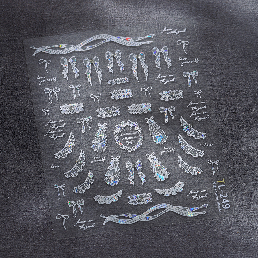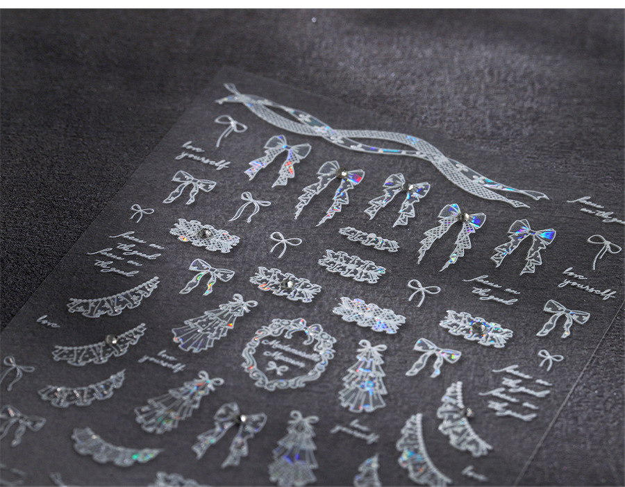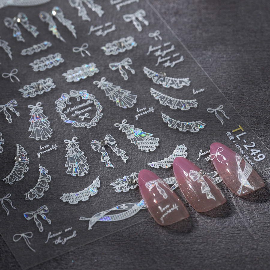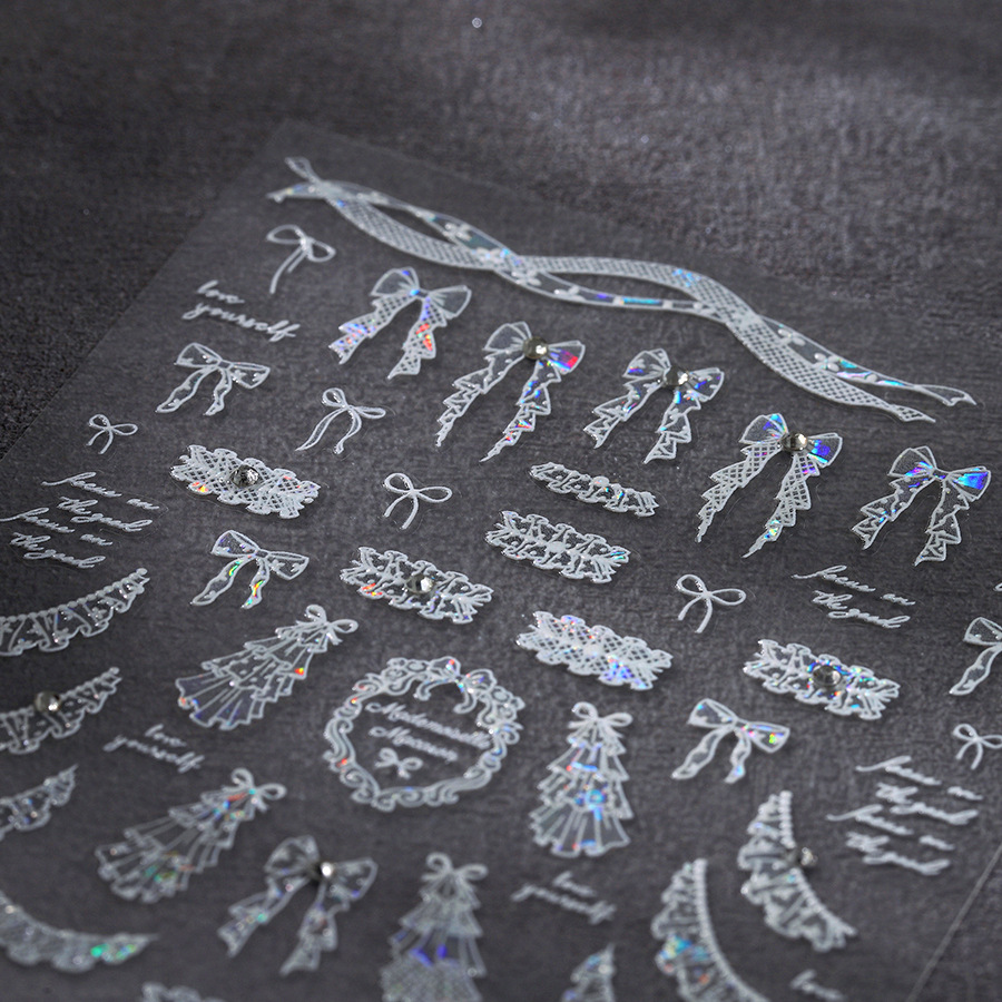 蕾丝蝴蝶结玻璃碎美甲贴纸背胶指甲贴玲珑系列