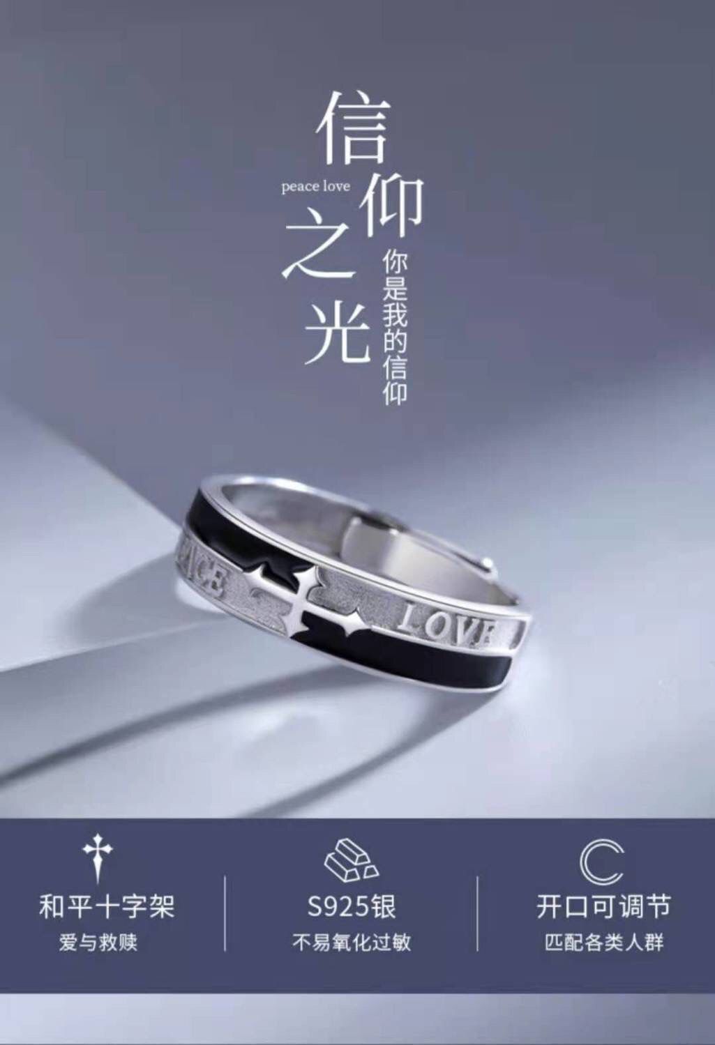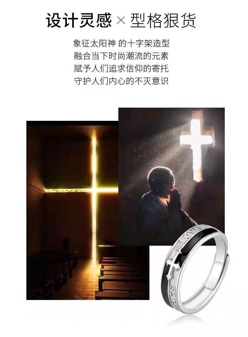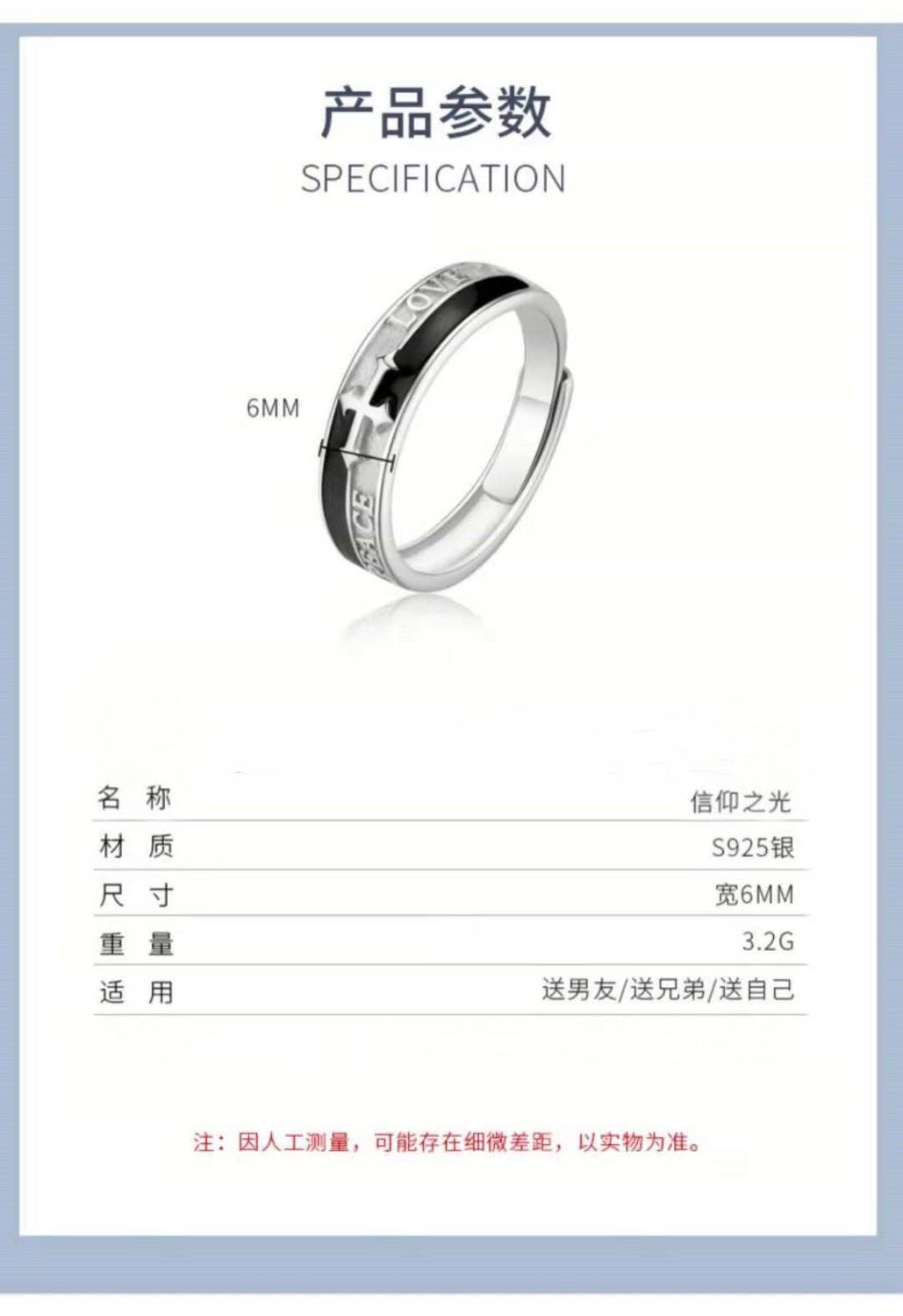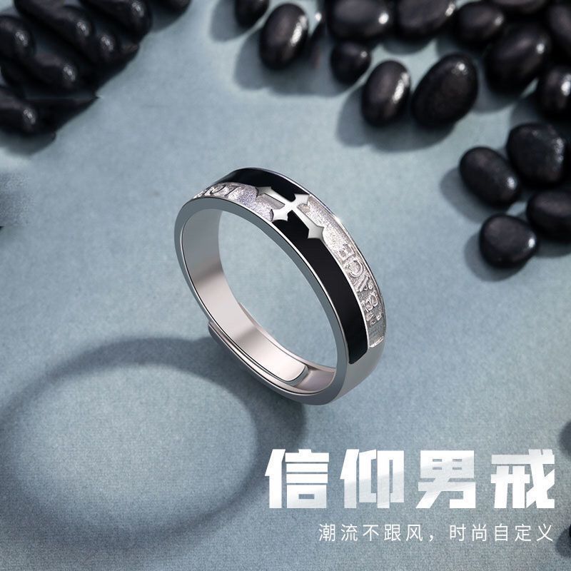信仰之光男士戒指S925银轻奢小众设计ins冷淡风活口指环七夕礼物