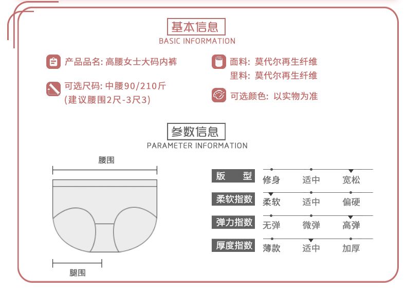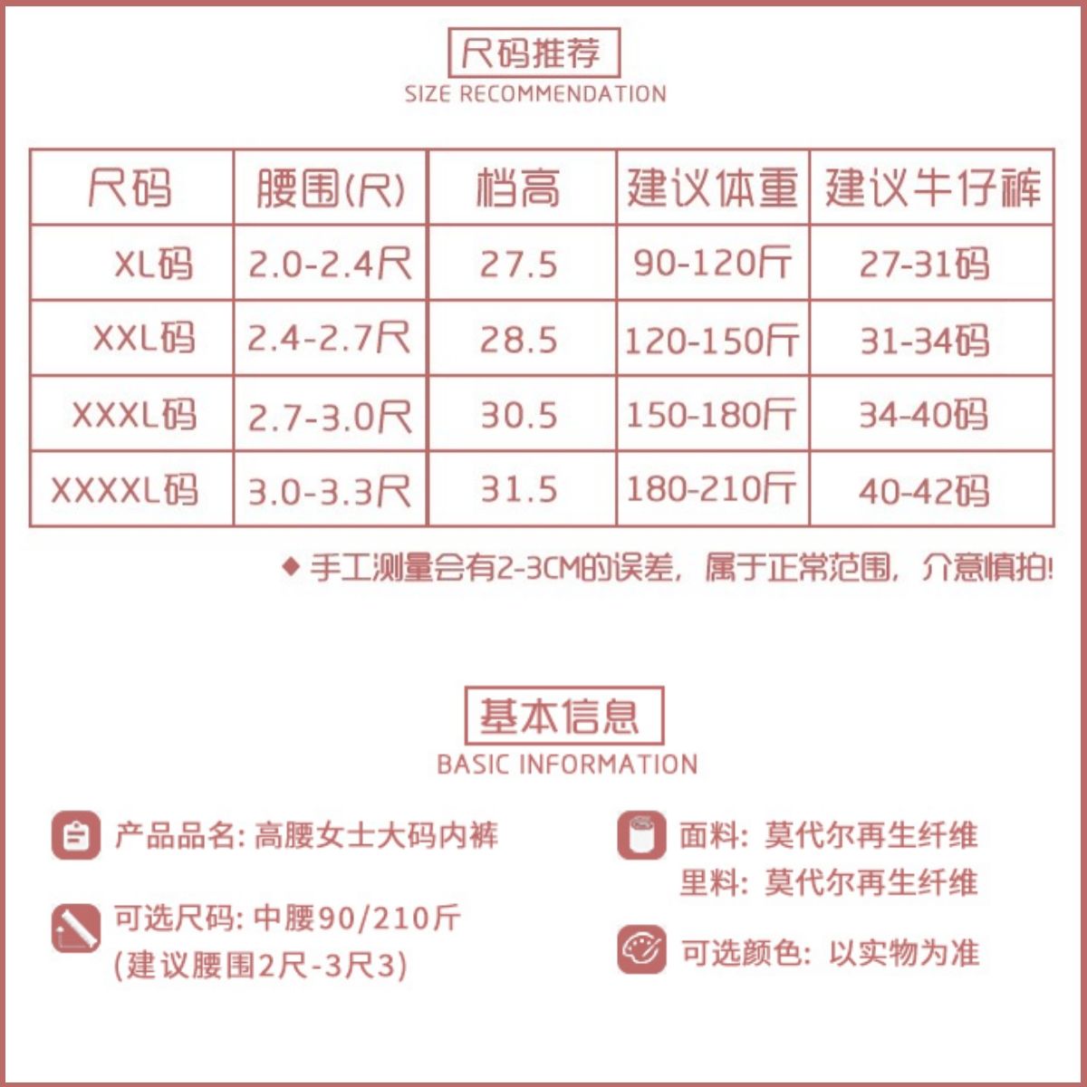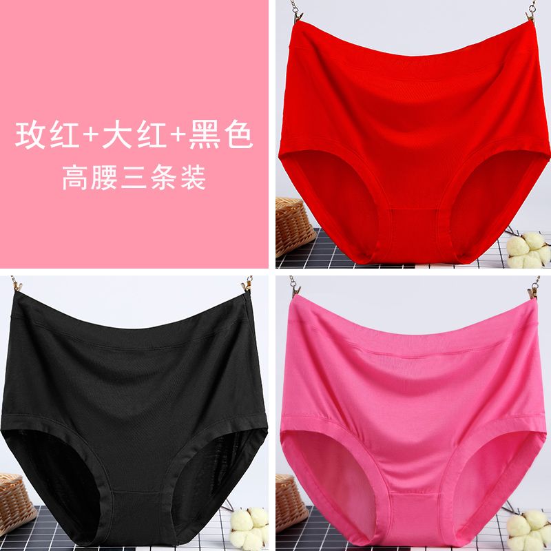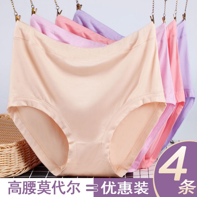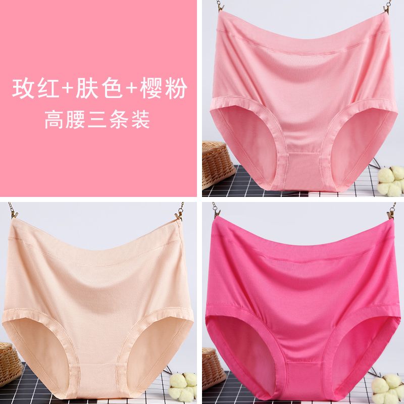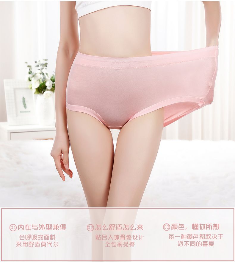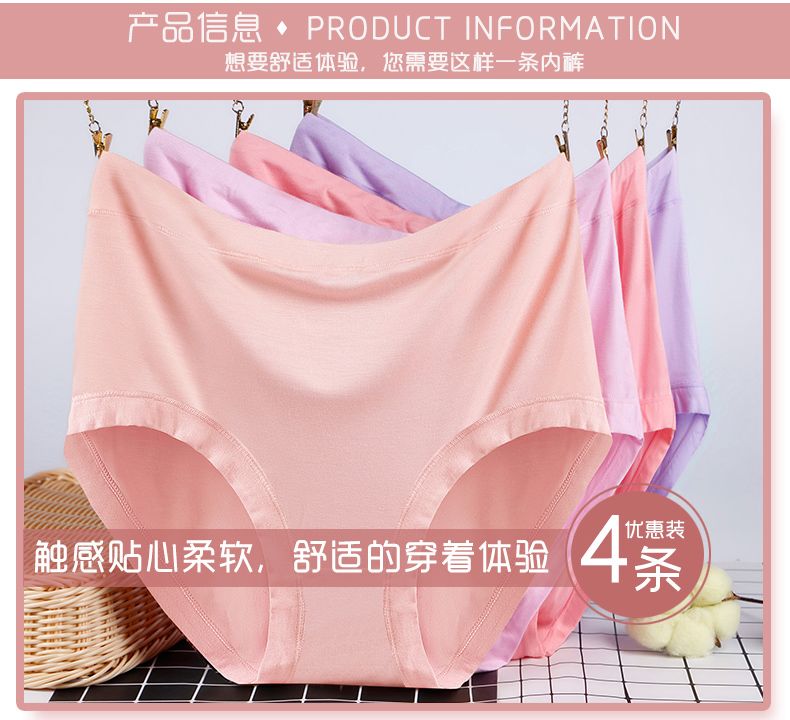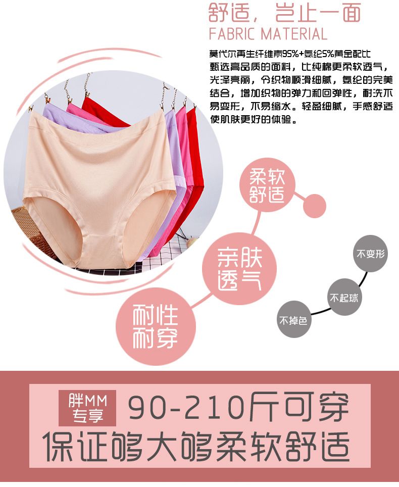 3/4条莫代尔大码女士内裤高腰纯色胖MM210斤透气妈妈中年三角裤头