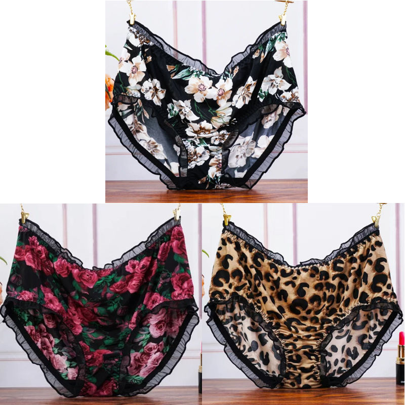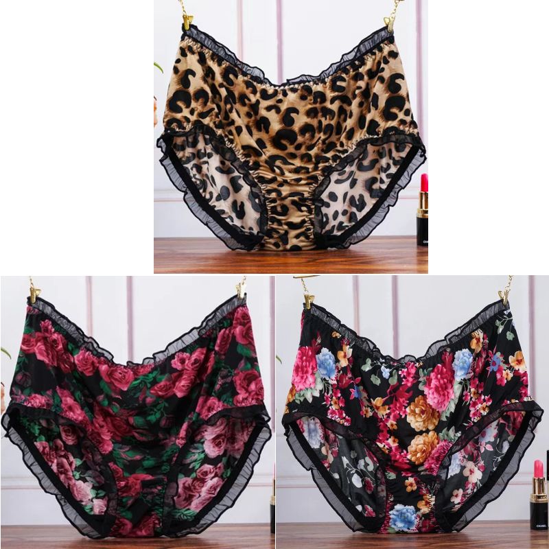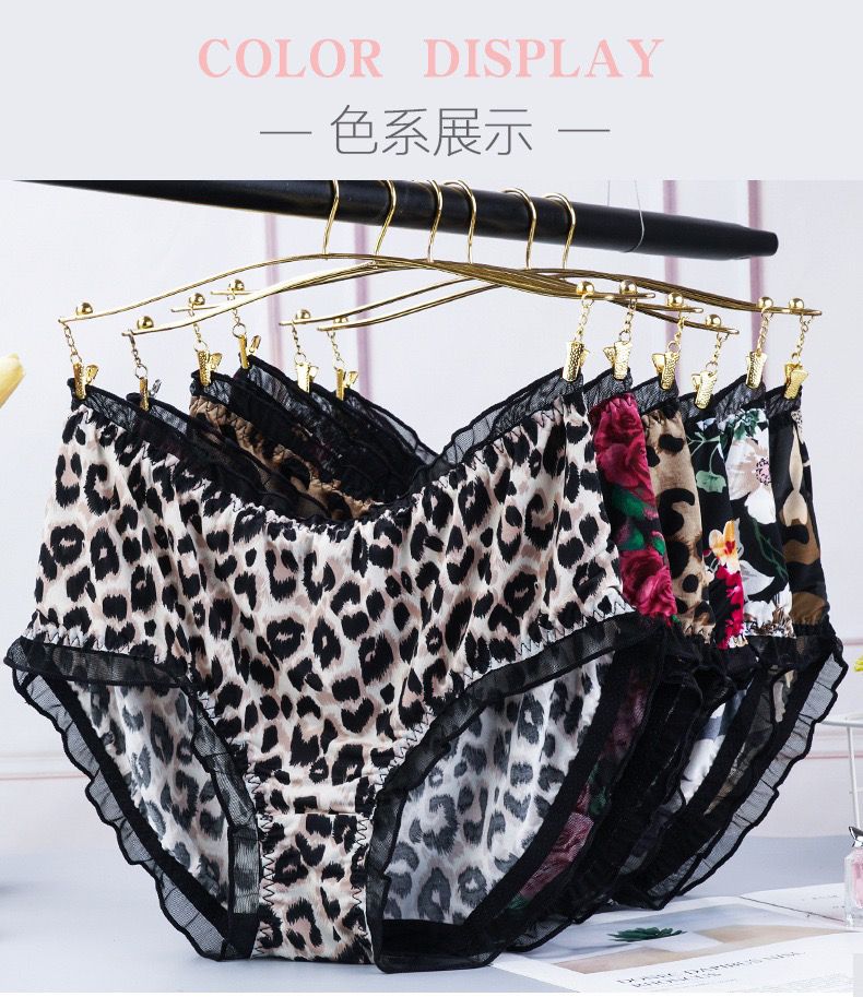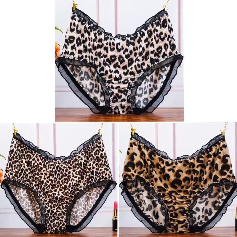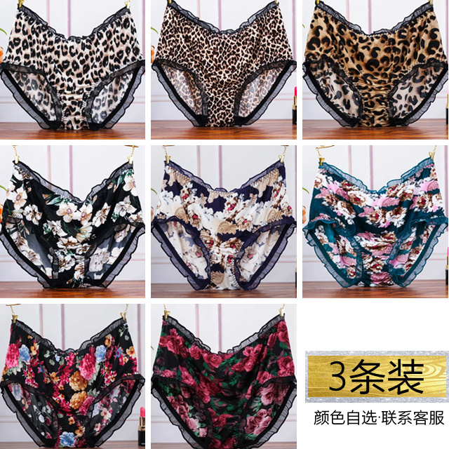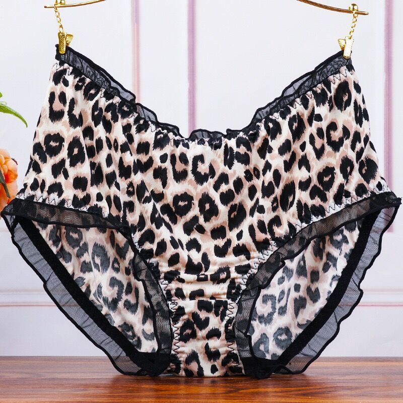内裤女网红中高腰花边蕾丝弹力大码胖mm内裤中腰豹纹豹纹爆款