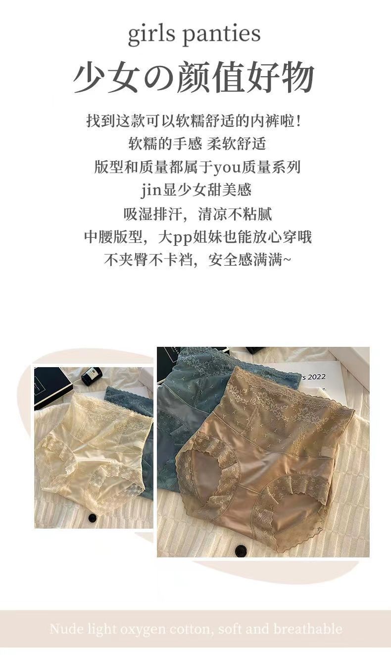 小蛮腰高腰女士蕾丝收腹提臀三角裤亲肤贴身透气舒适内裤头