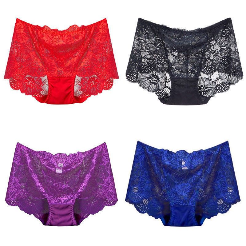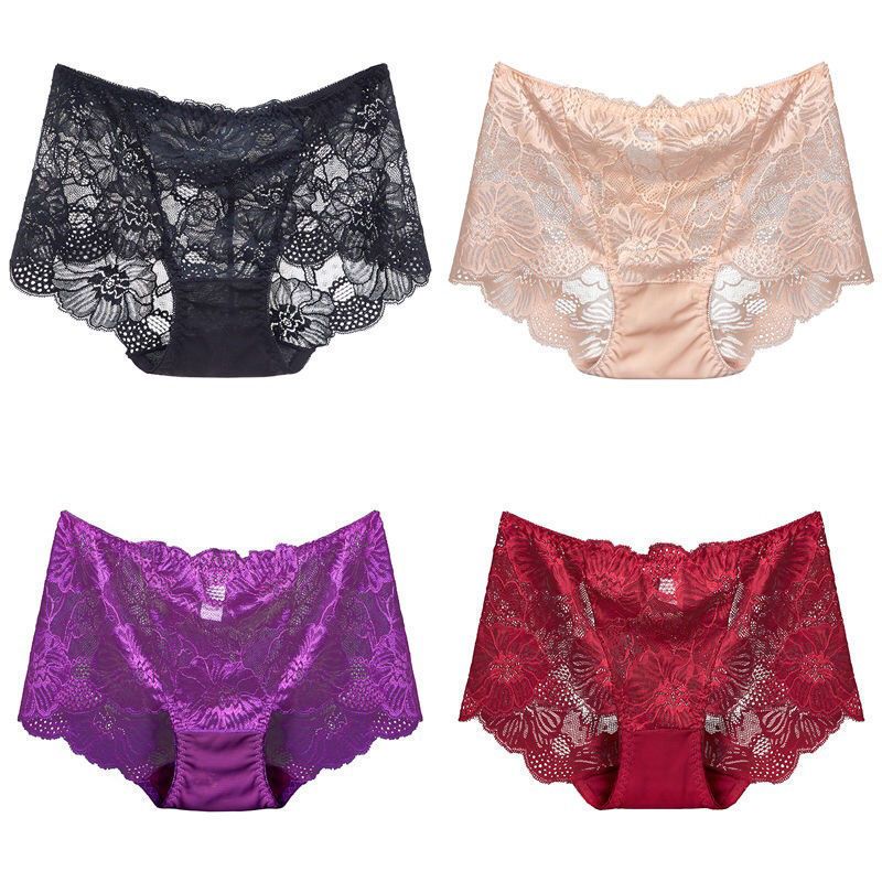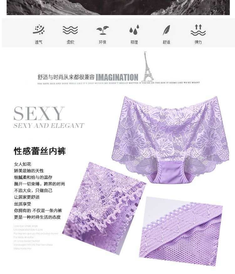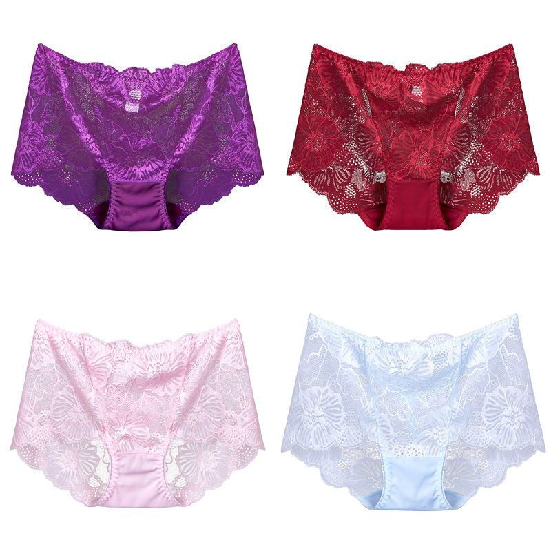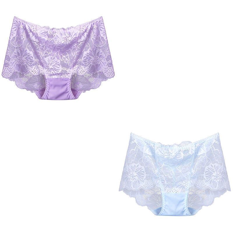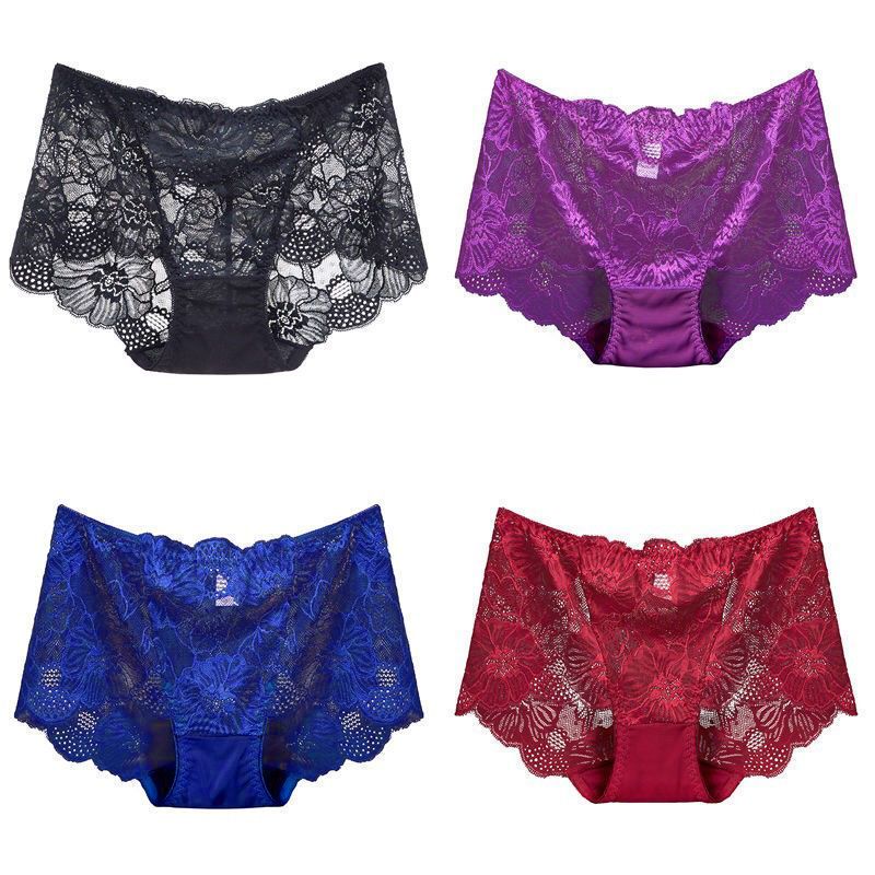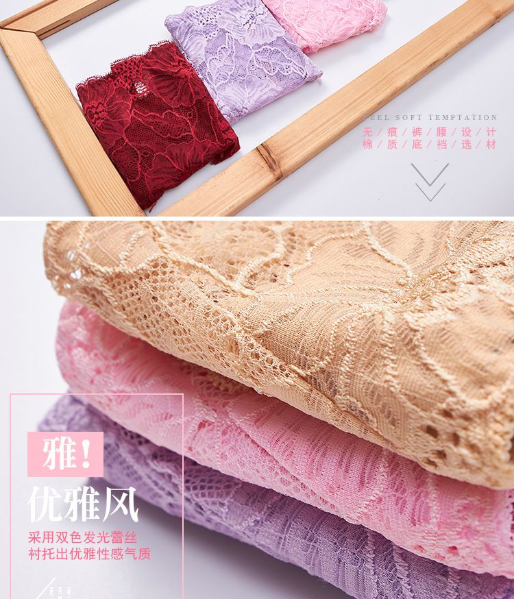 【2/4条装】 蕾丝内裤女性感舒适超弹中腰收腹提臀大码女士三角裤