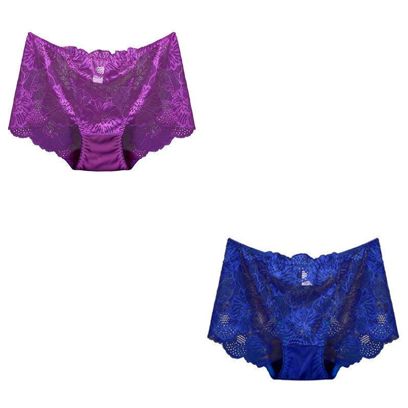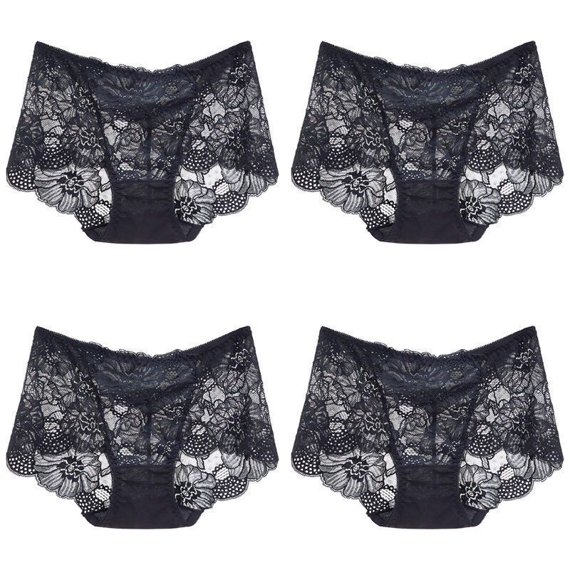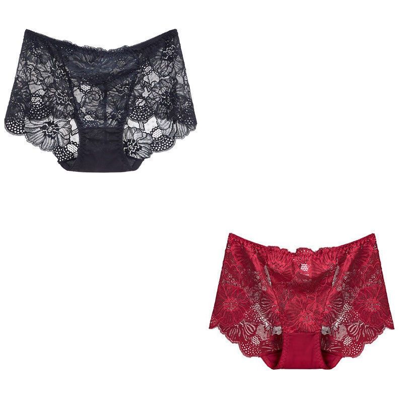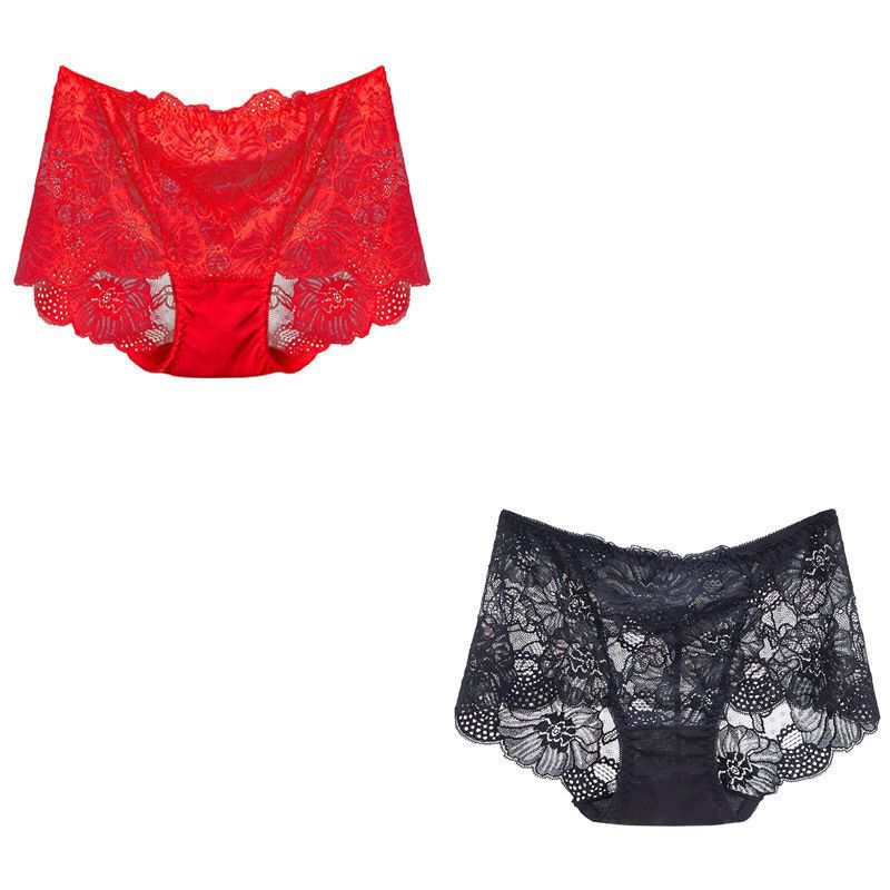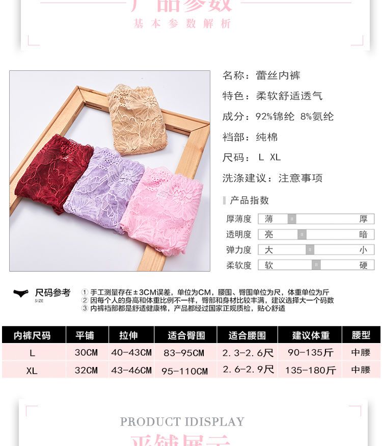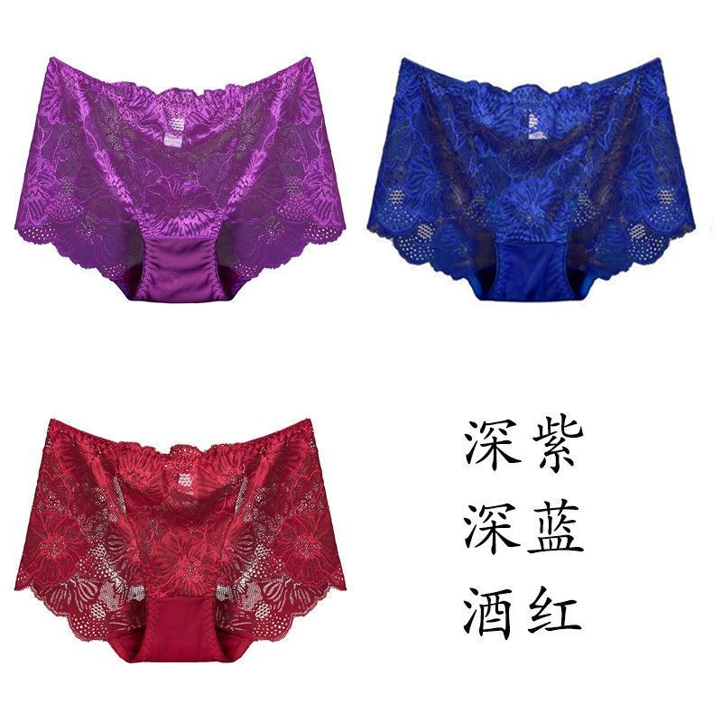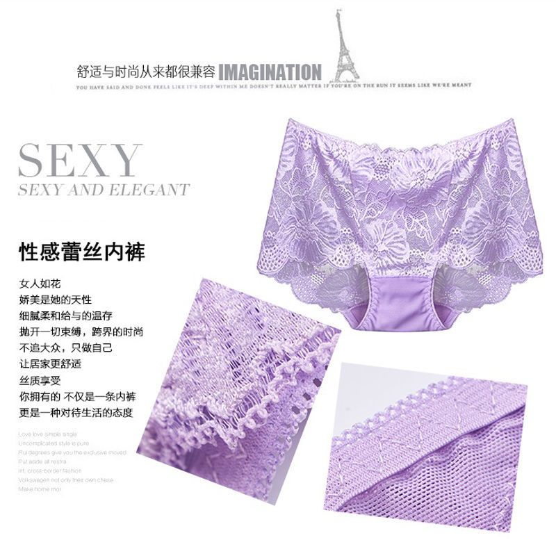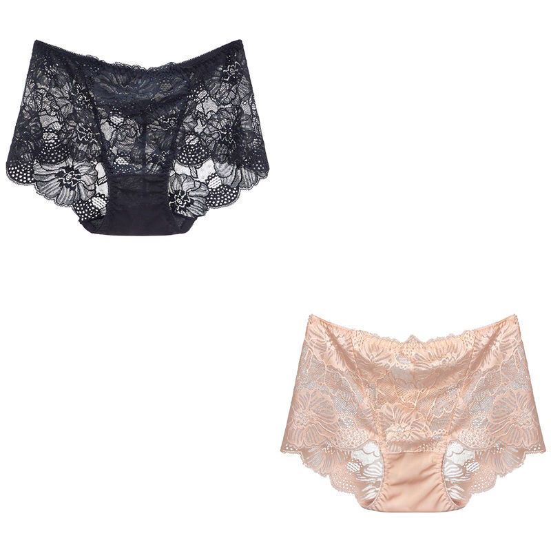 【2/4条装】 蕾丝内裤女性感舒适超弹中腰收腹提臀大码女士三角裤