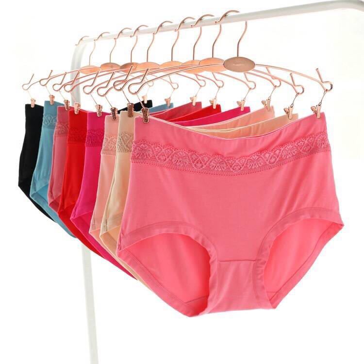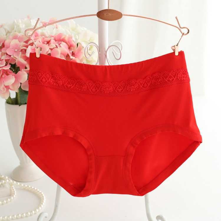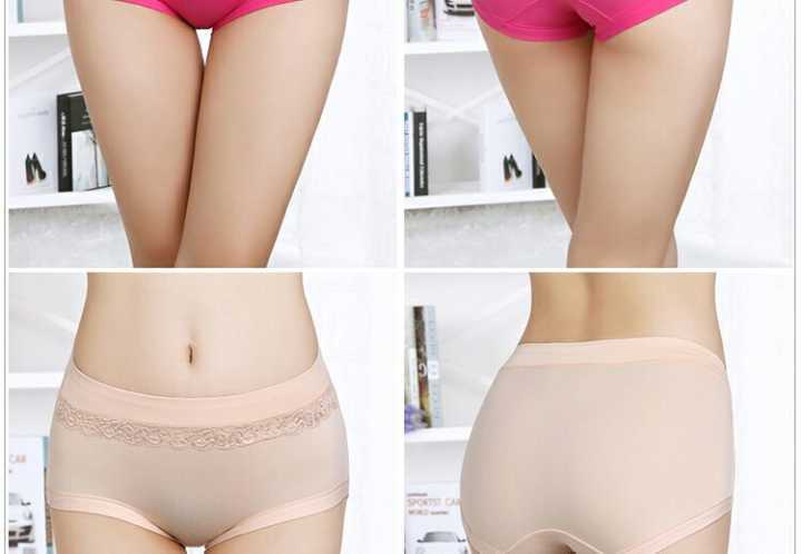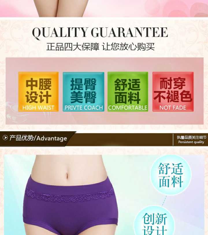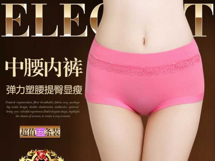 5条装 中腰舒适蕾丝弹力收腹提臀三角裤性感舒适美体大码女内裤