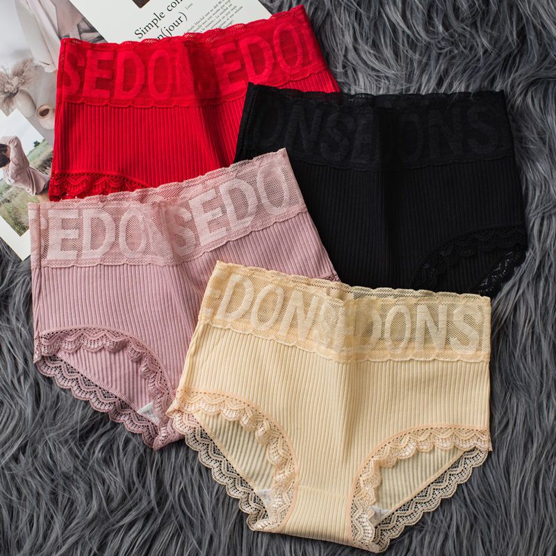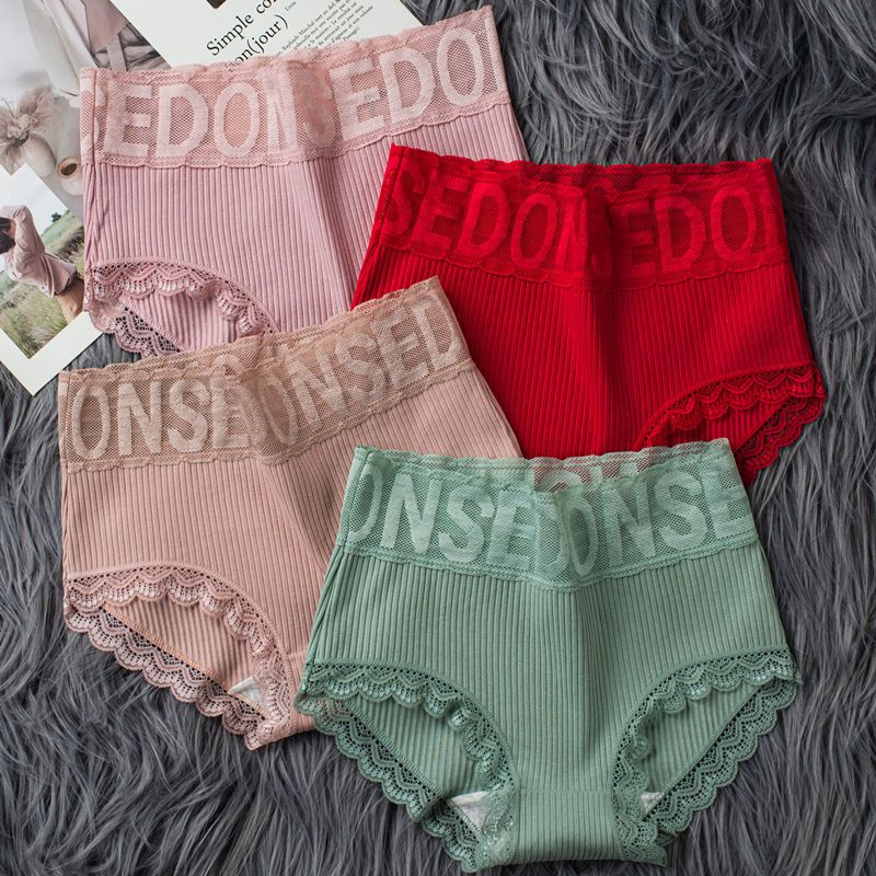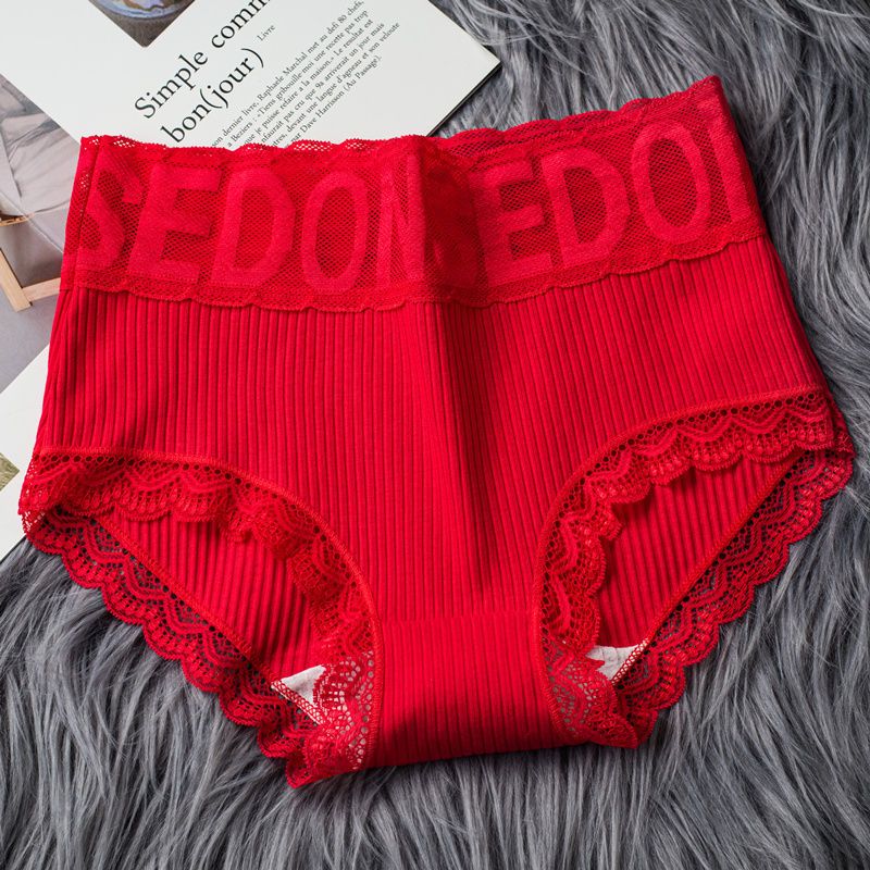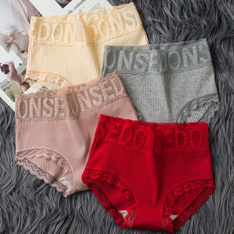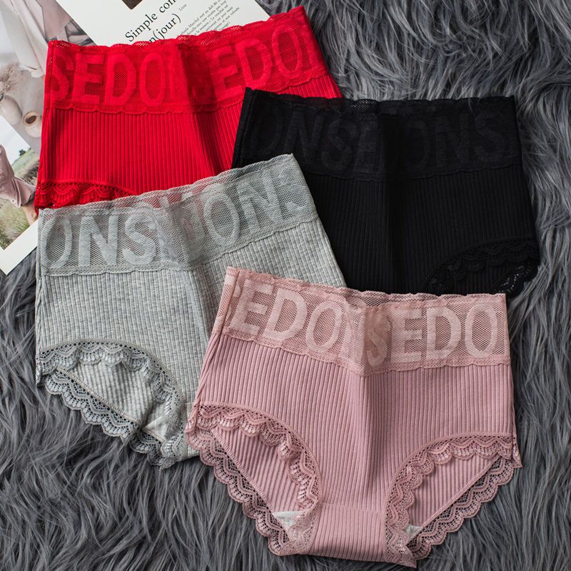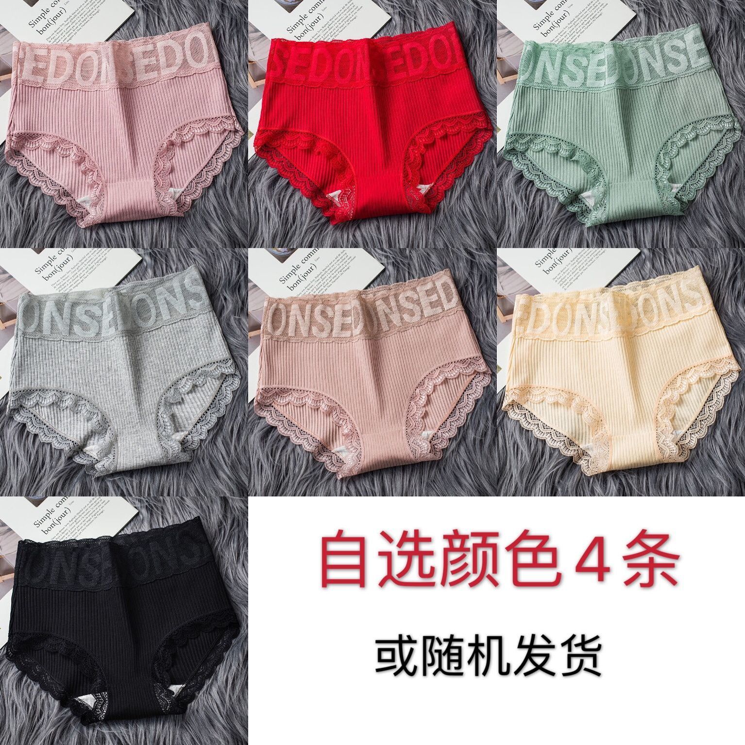 高腰内裤女纯棉裆100%学生韩版舒适蕾丝边提臀透气收腹无痕三角裤