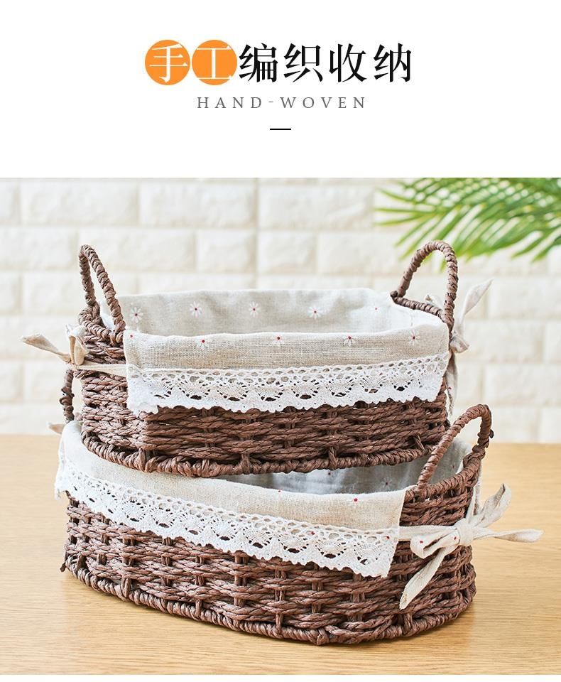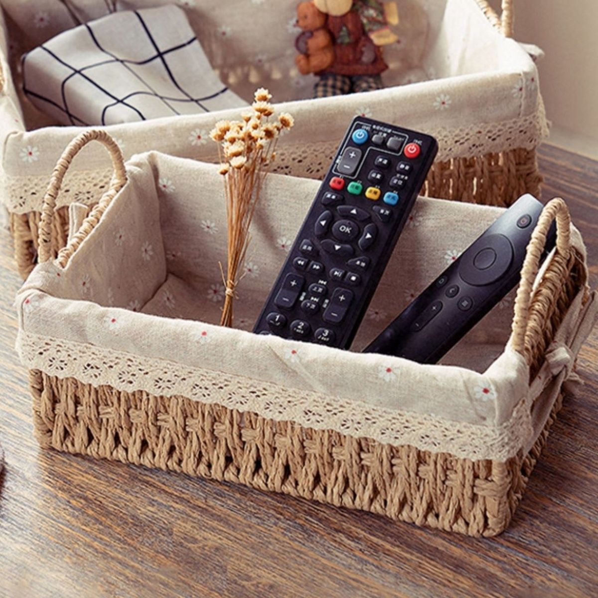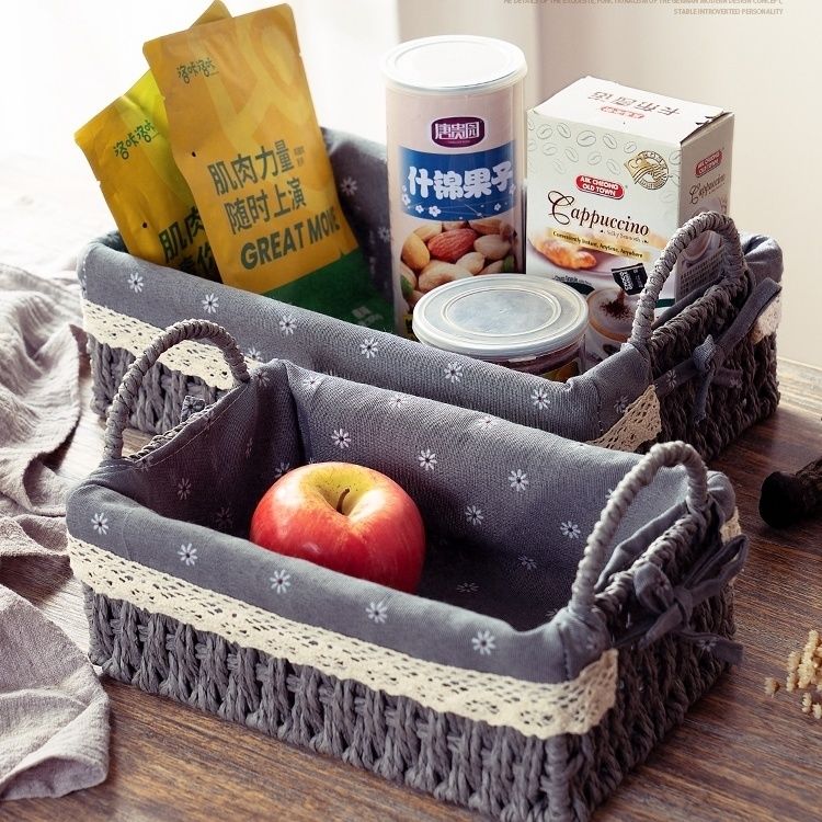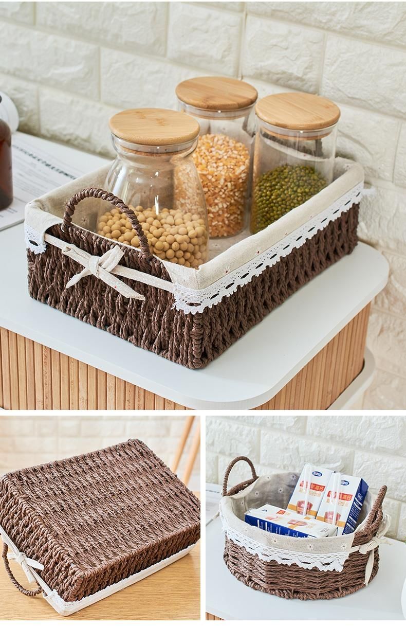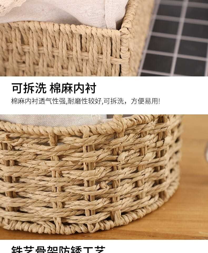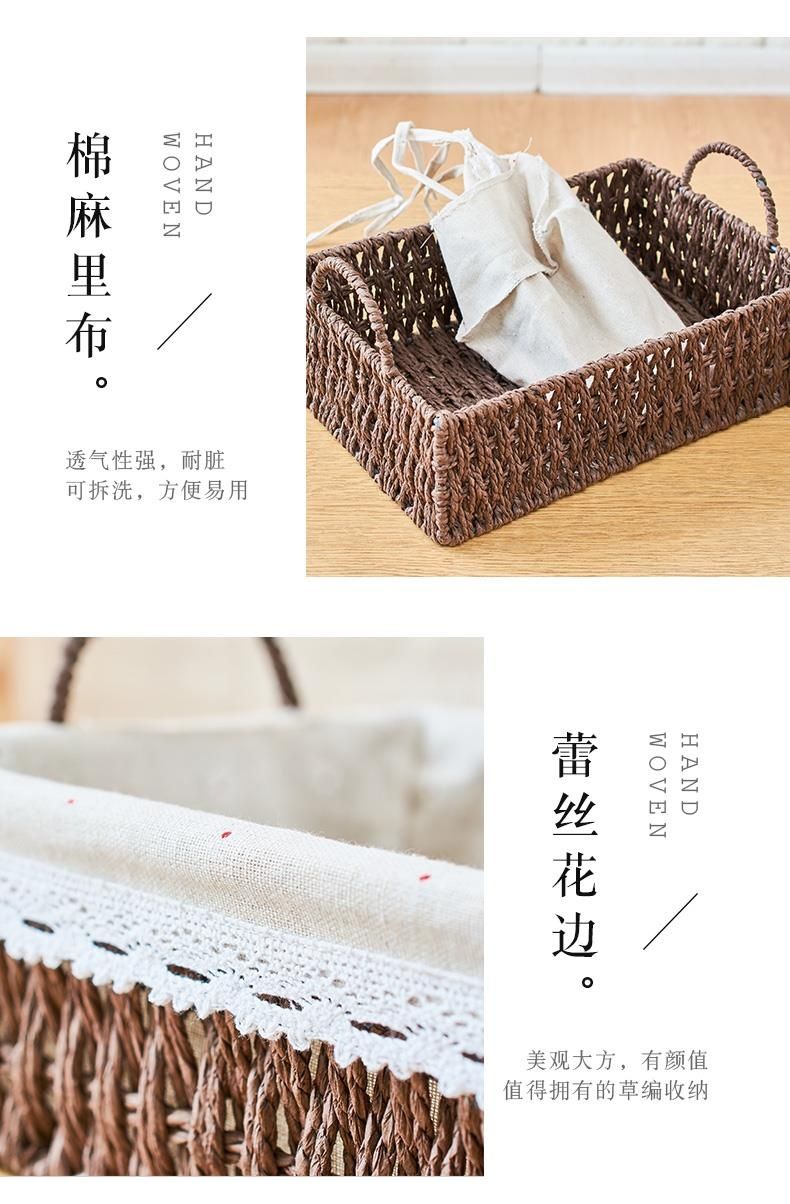 奇藤编收纳筐桌面杂物筐日式收纳篮零食钥匙框布艺收纳盒坚果糖盘