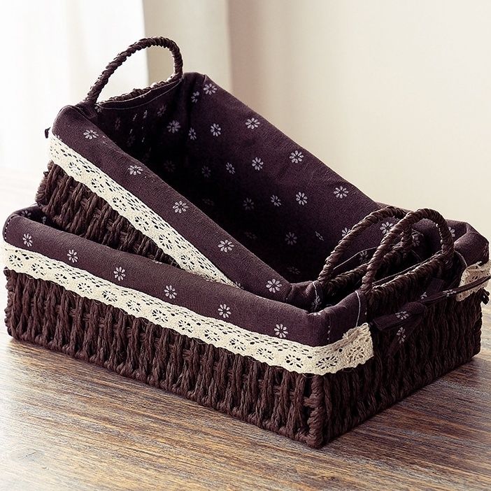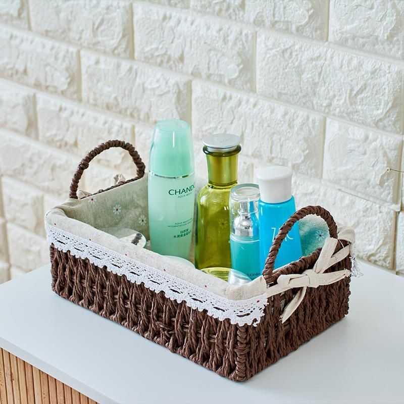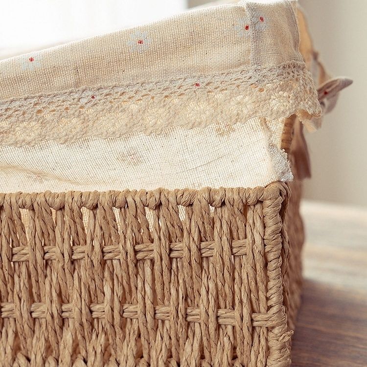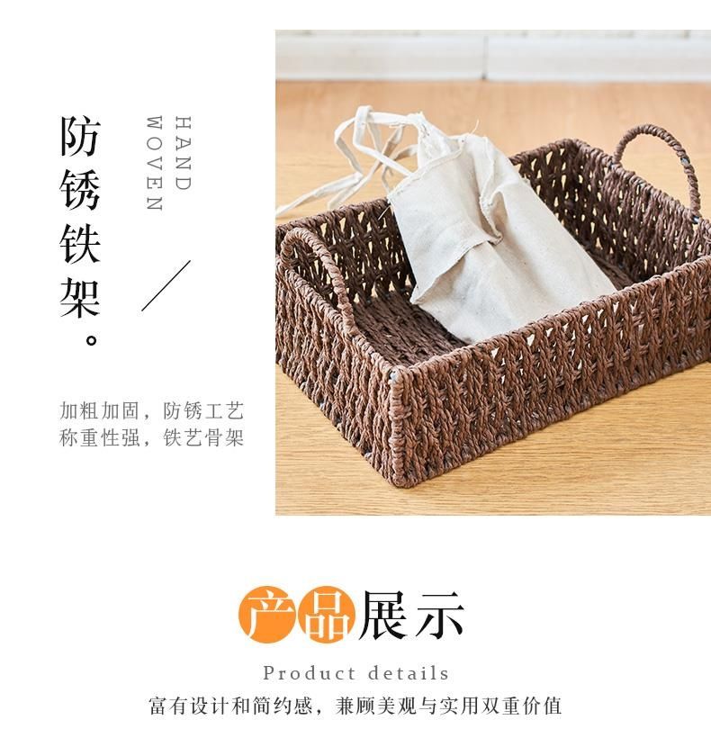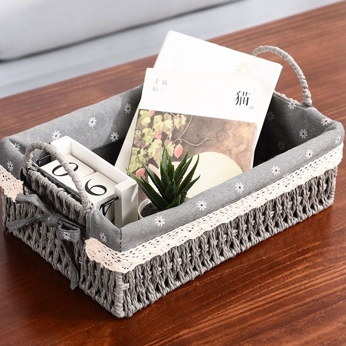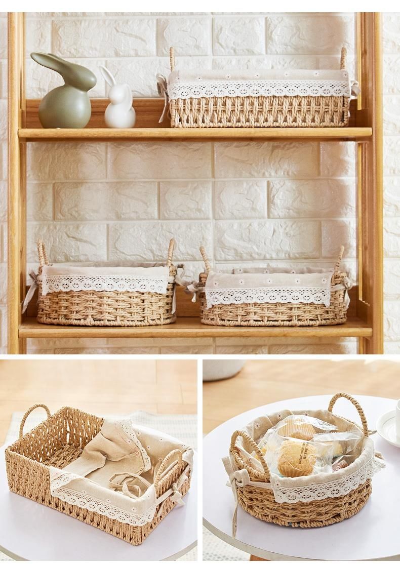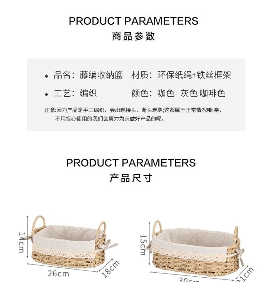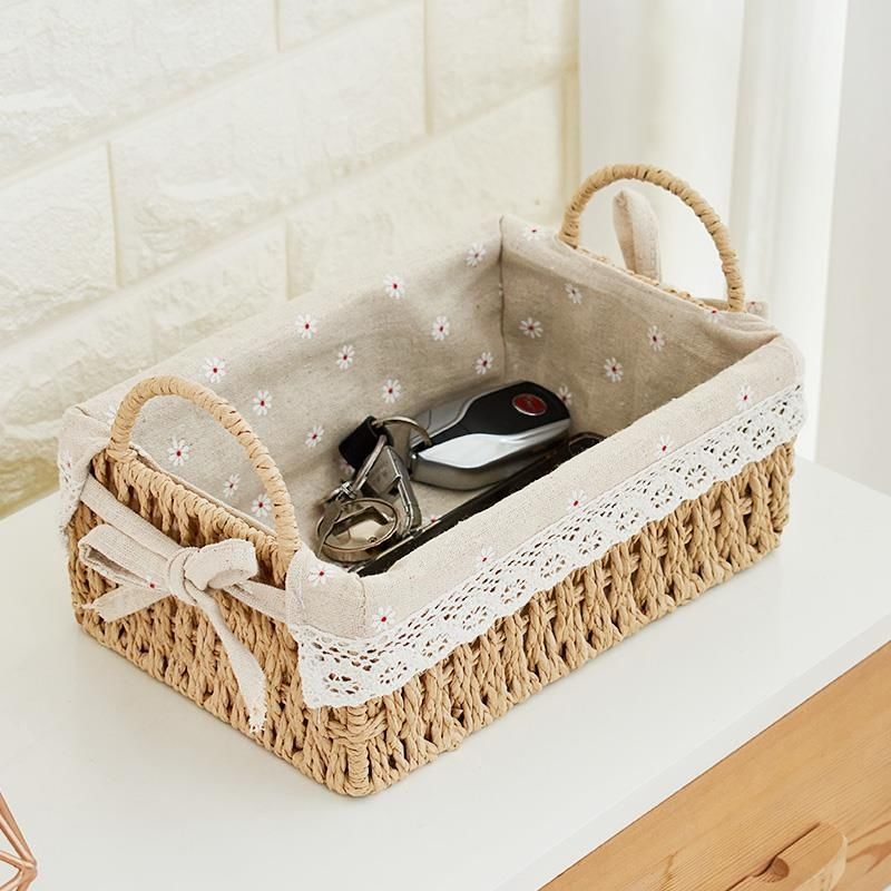 奇藤编收纳筐桌面杂物筐日式收纳篮零食钥匙框布艺收纳盒坚果糖盘