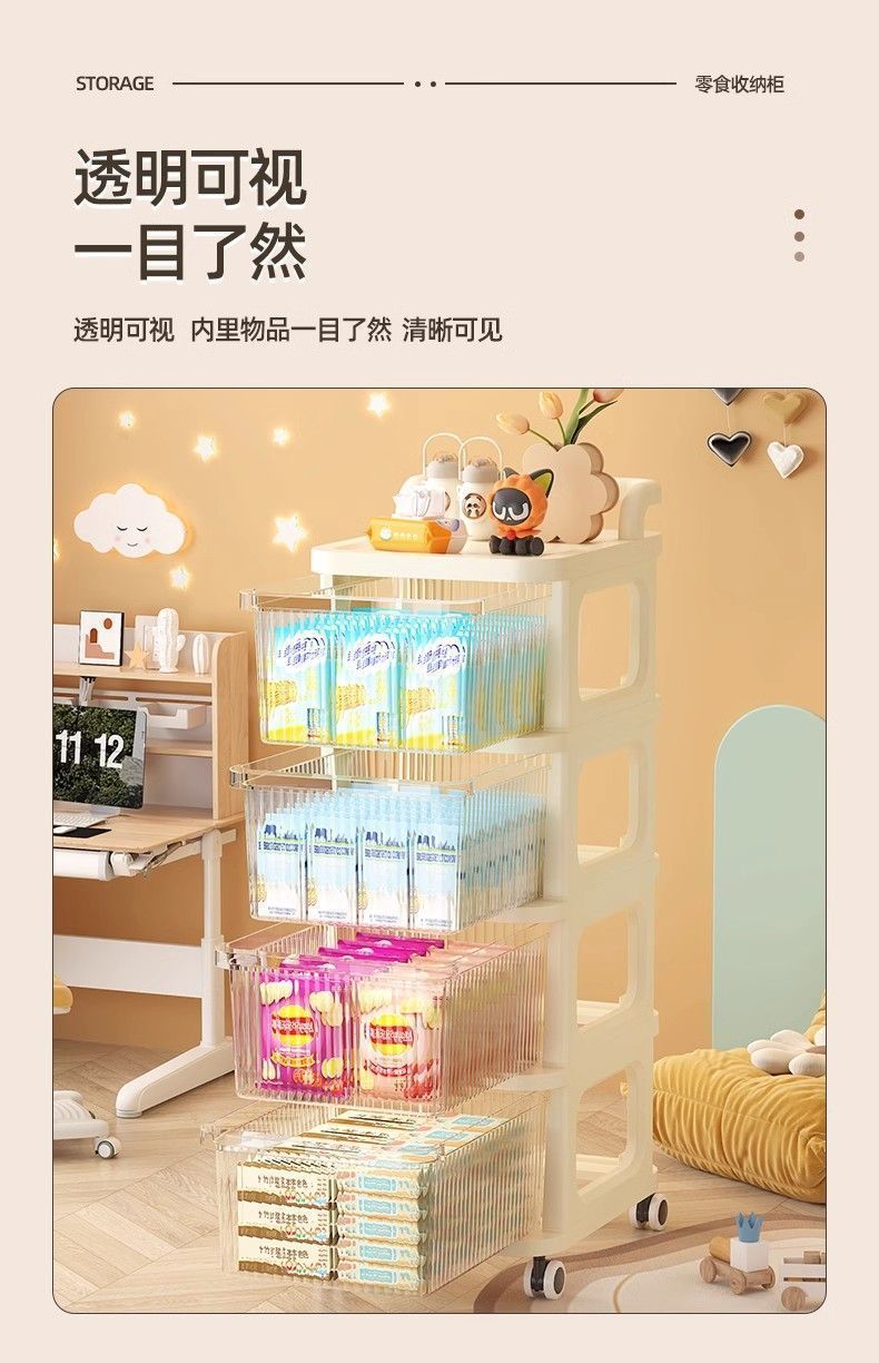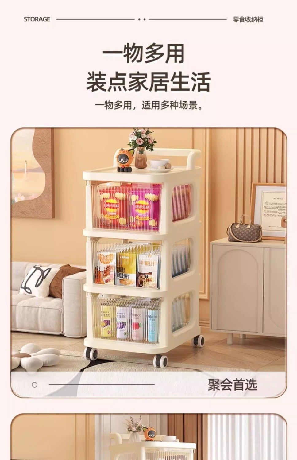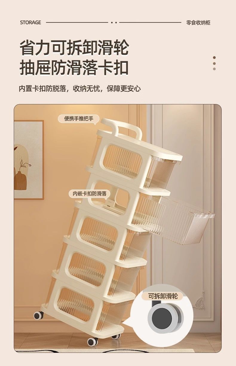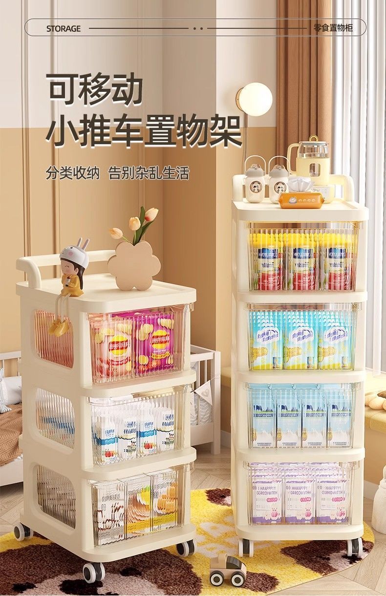 小推车抽屉式零食奶油置物架落地客厅移动多层玩具储物架家用收纳