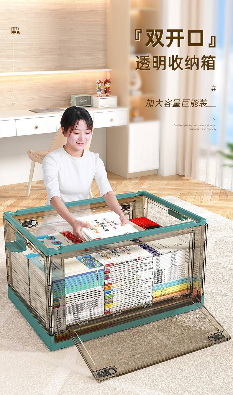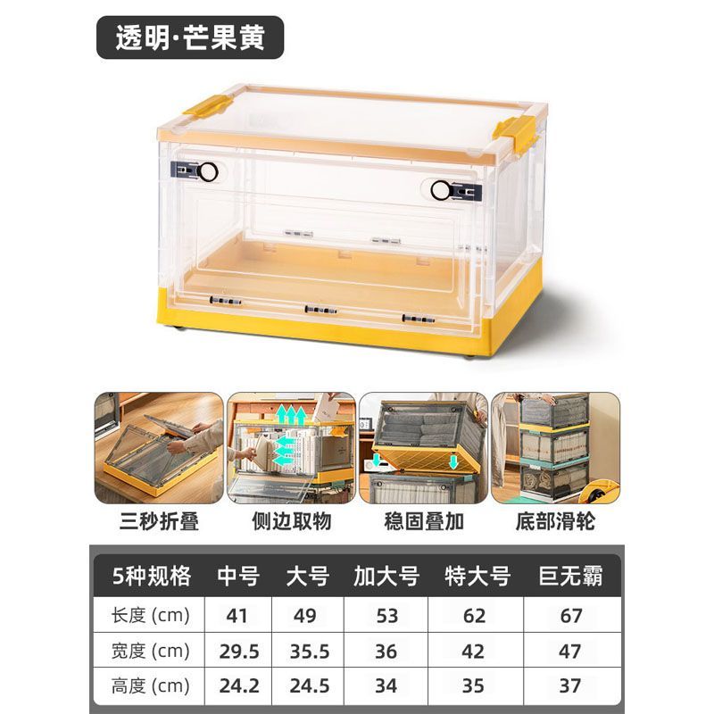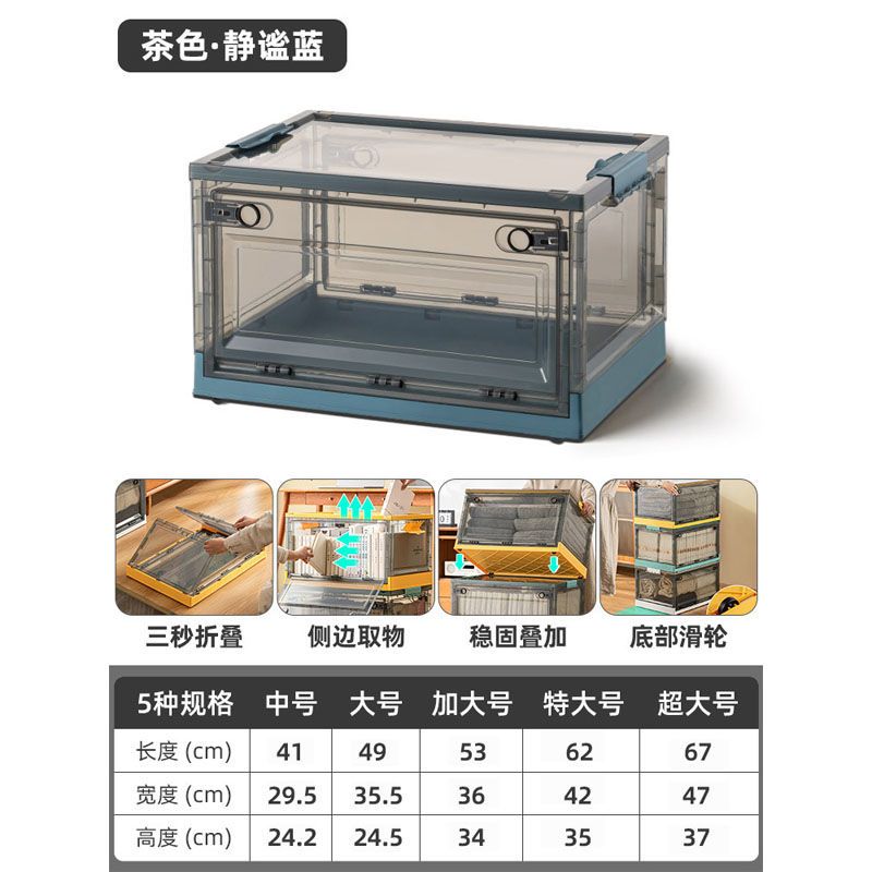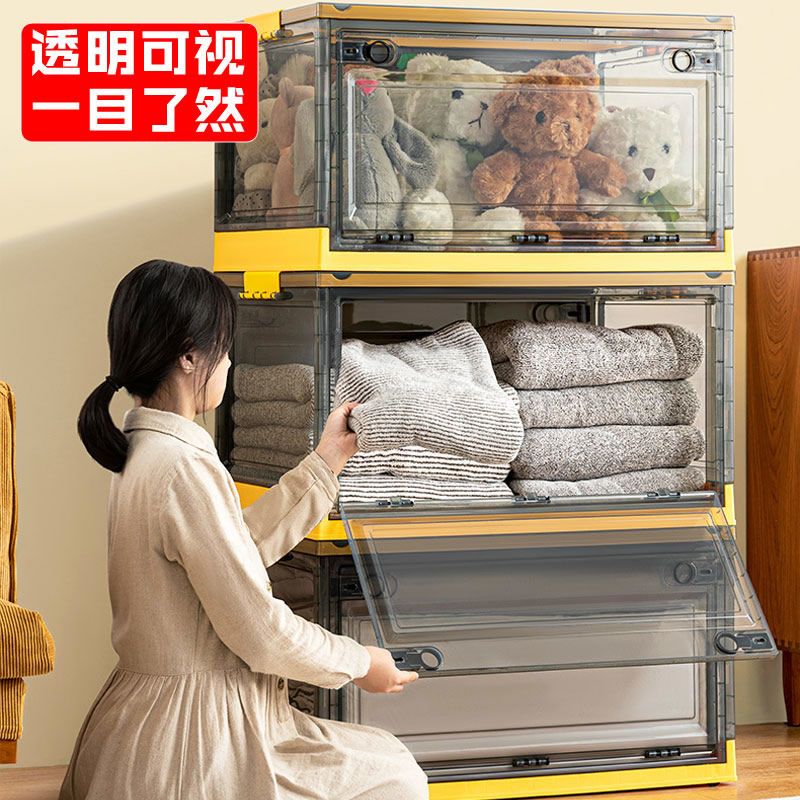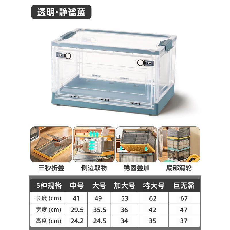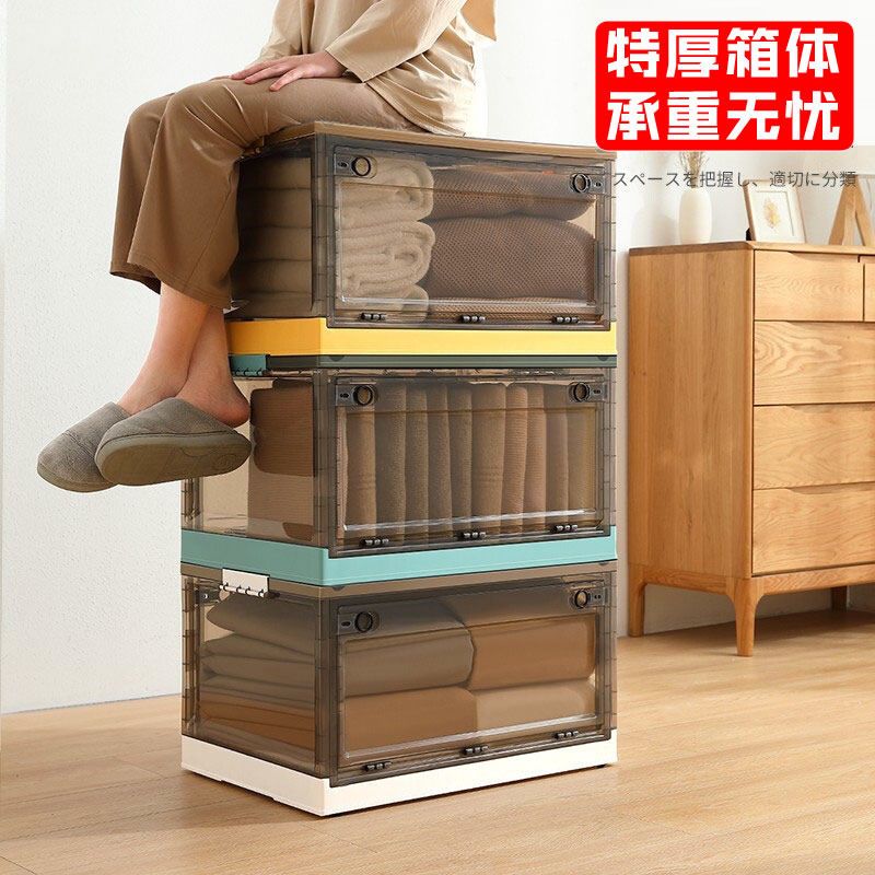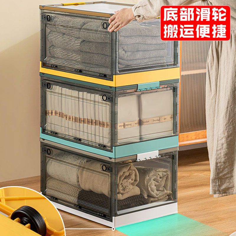 巨大】折叠收纳箱家居带轮透明加大衣服被套玩具书籍三开门收纳箱