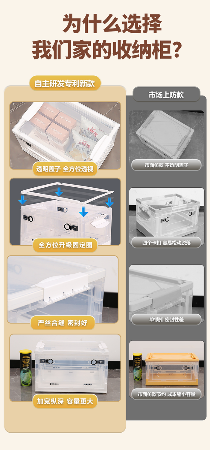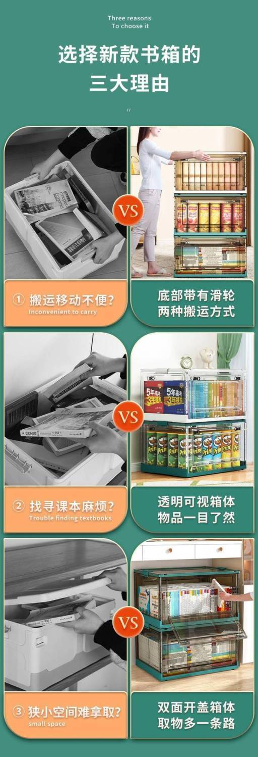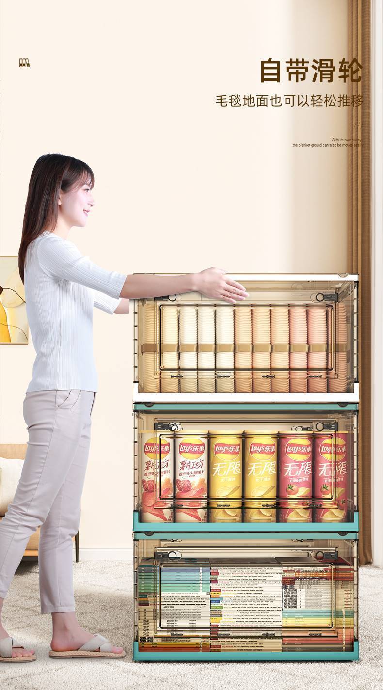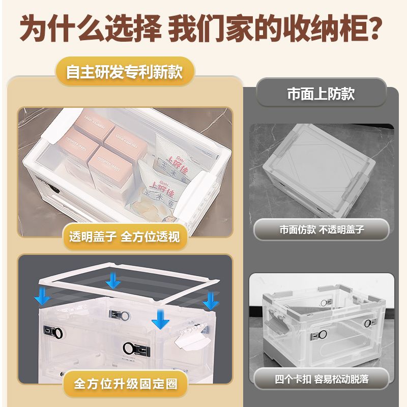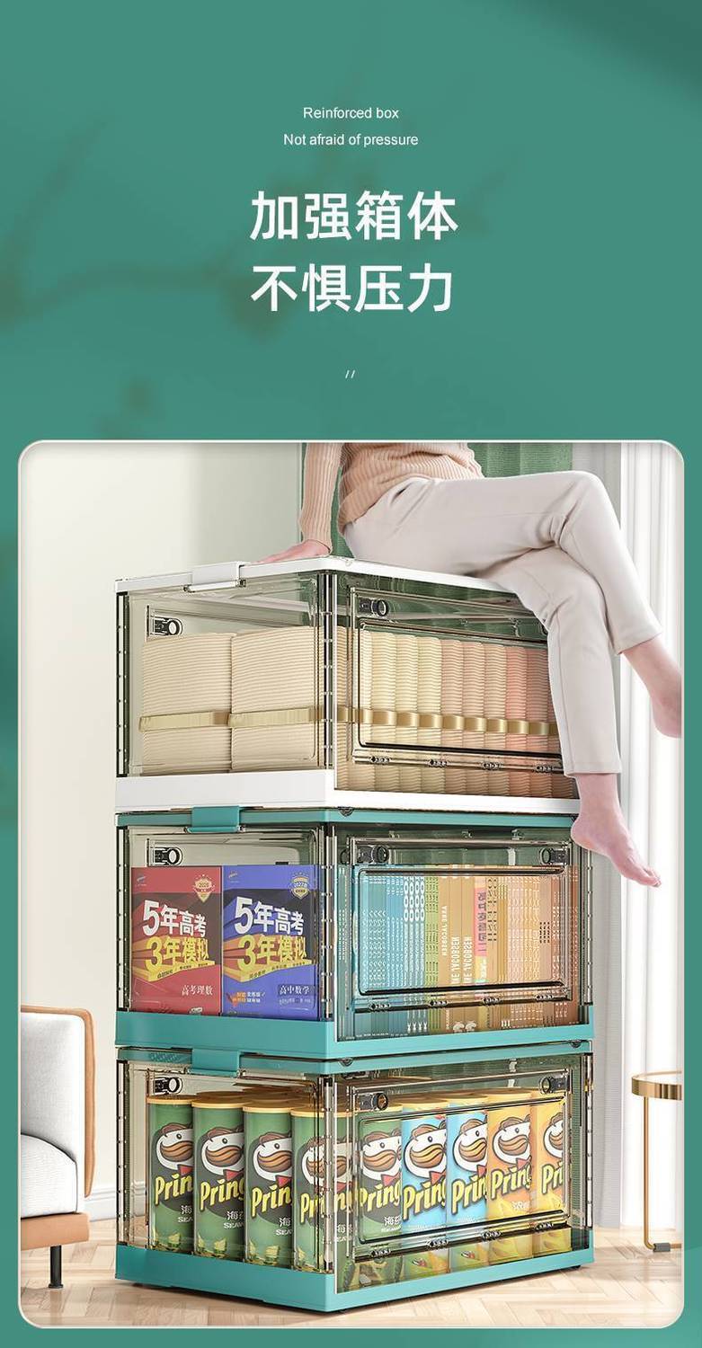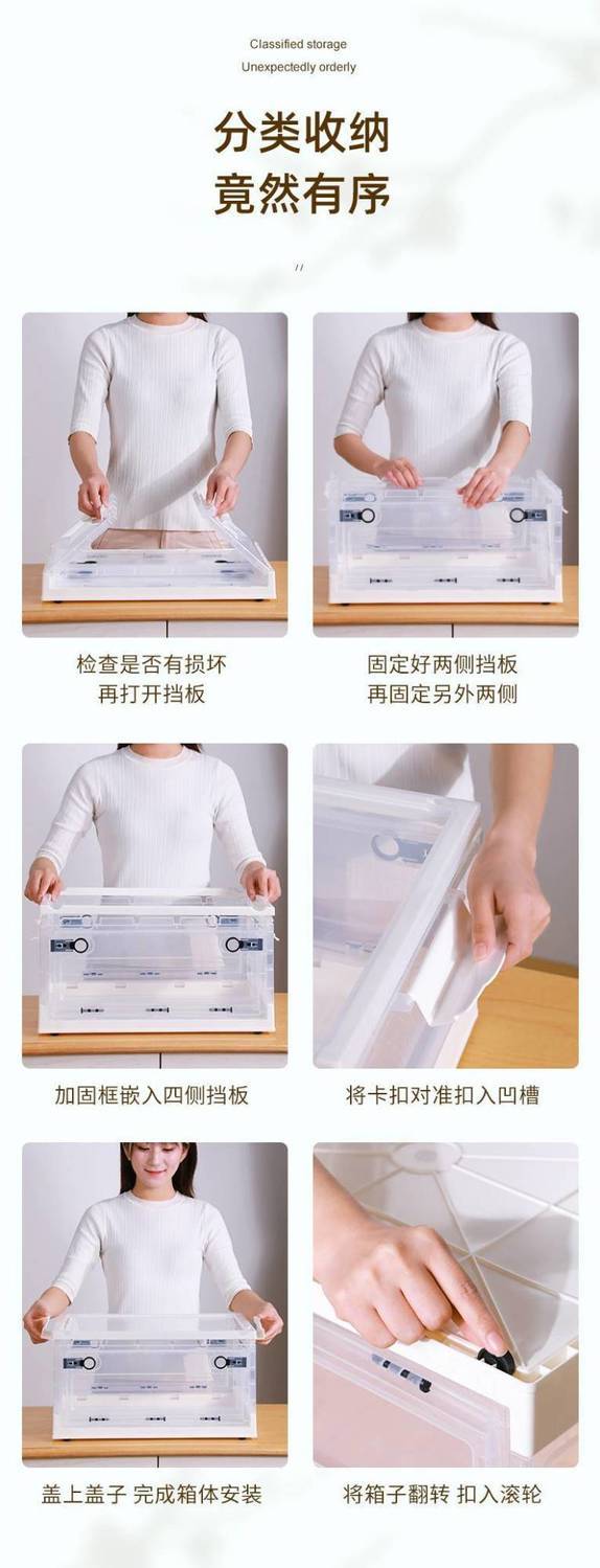 巨大】折叠收纳箱家居带轮透明加大衣服被套玩具书籍三开门收纳箱