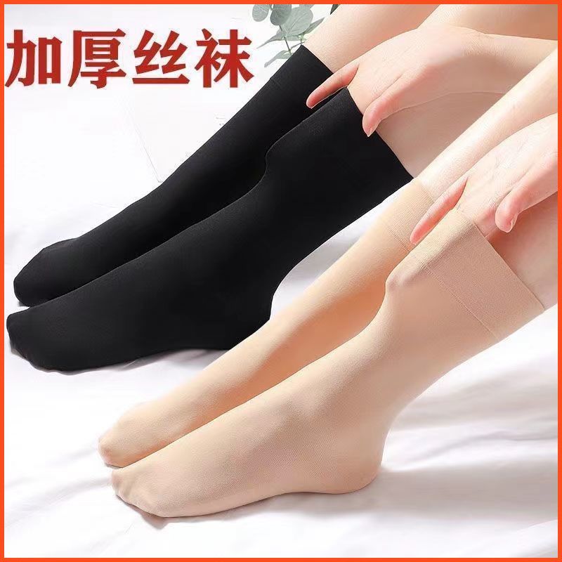 加厚丝袜女袜子天鹅绒短袜春夏款中筒男女通用耐磨防勾丝松口中厚