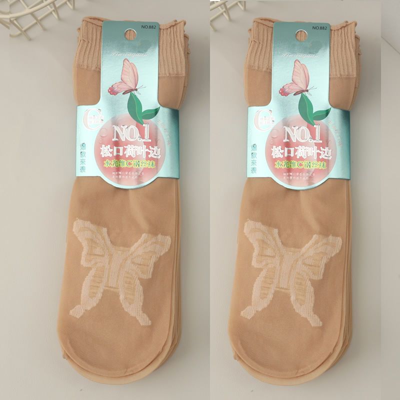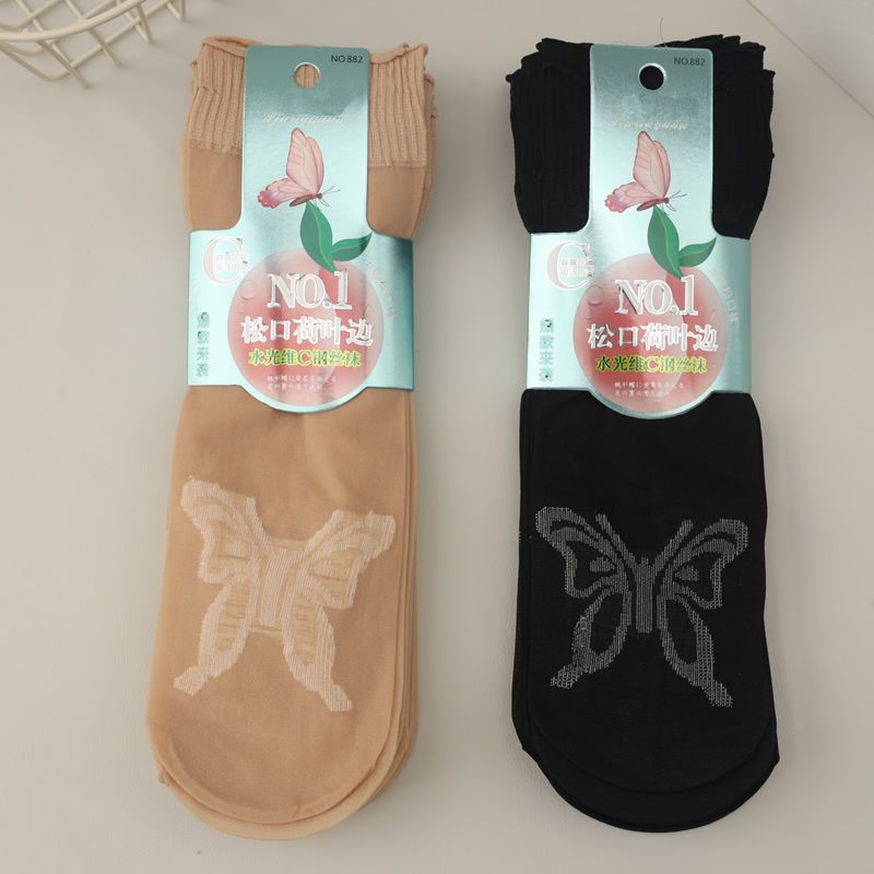 女袜子钢丝袜春秋款夏天防勾丝棉底防滑松口袜荷叶边袜子短袜吸汗