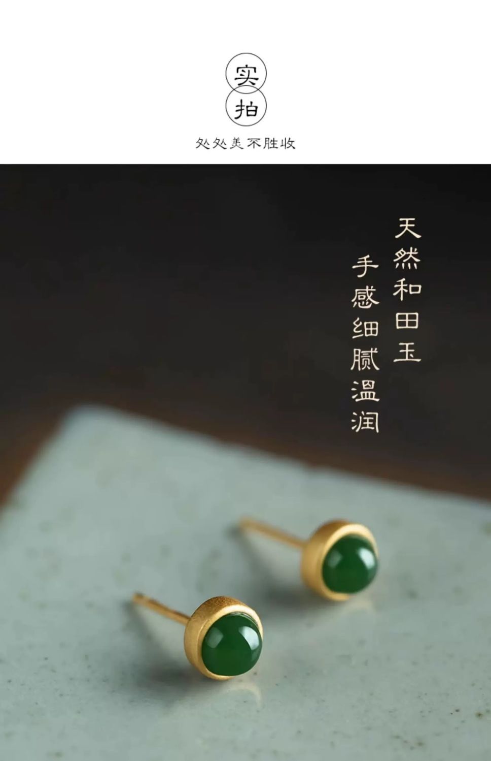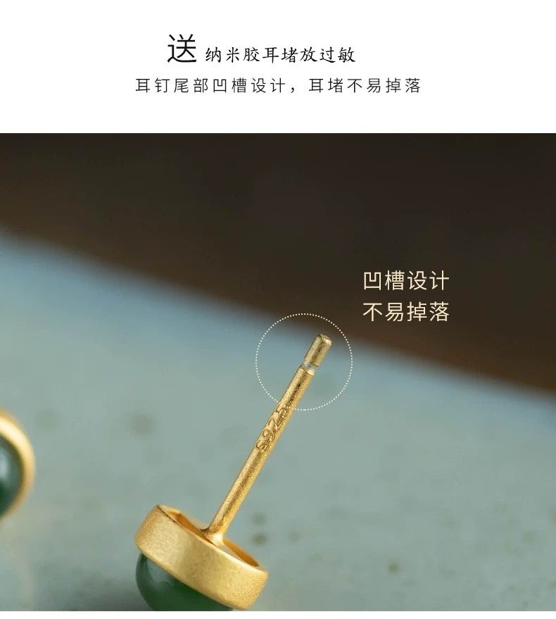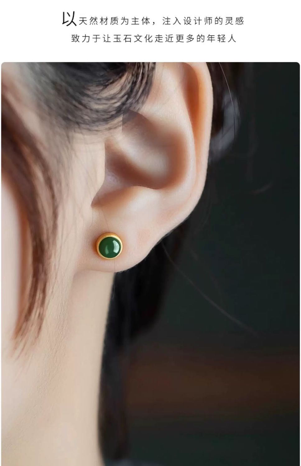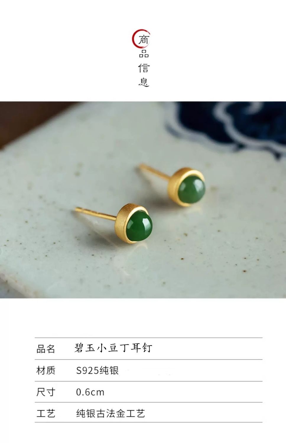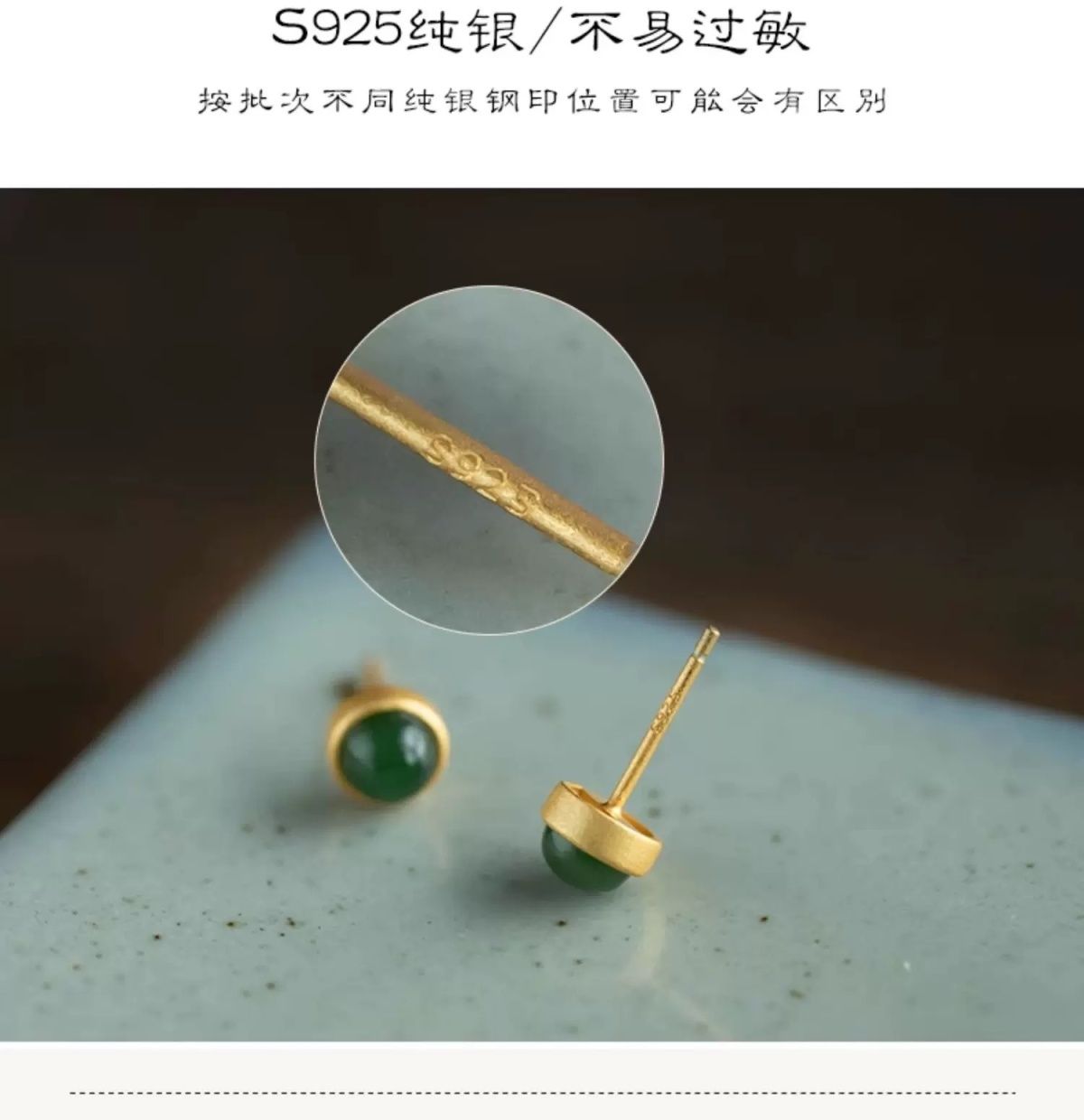 新潮款碧玉豆丁s925银耳钉女款高级感精致金色镶嵌玉石防过敏耳环